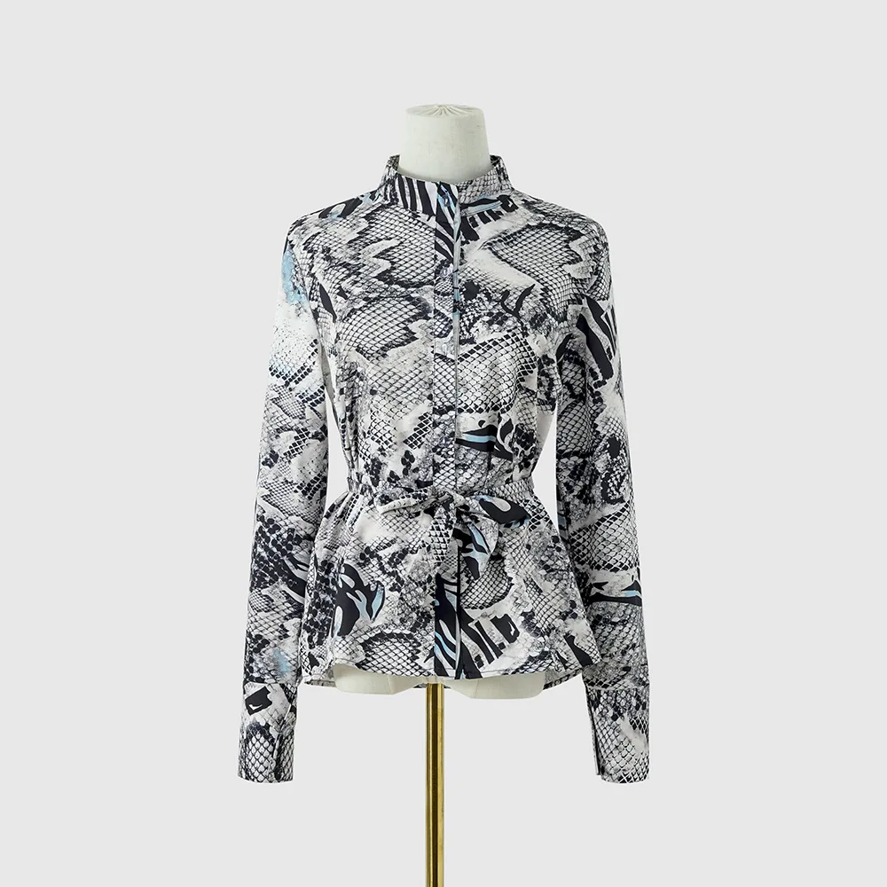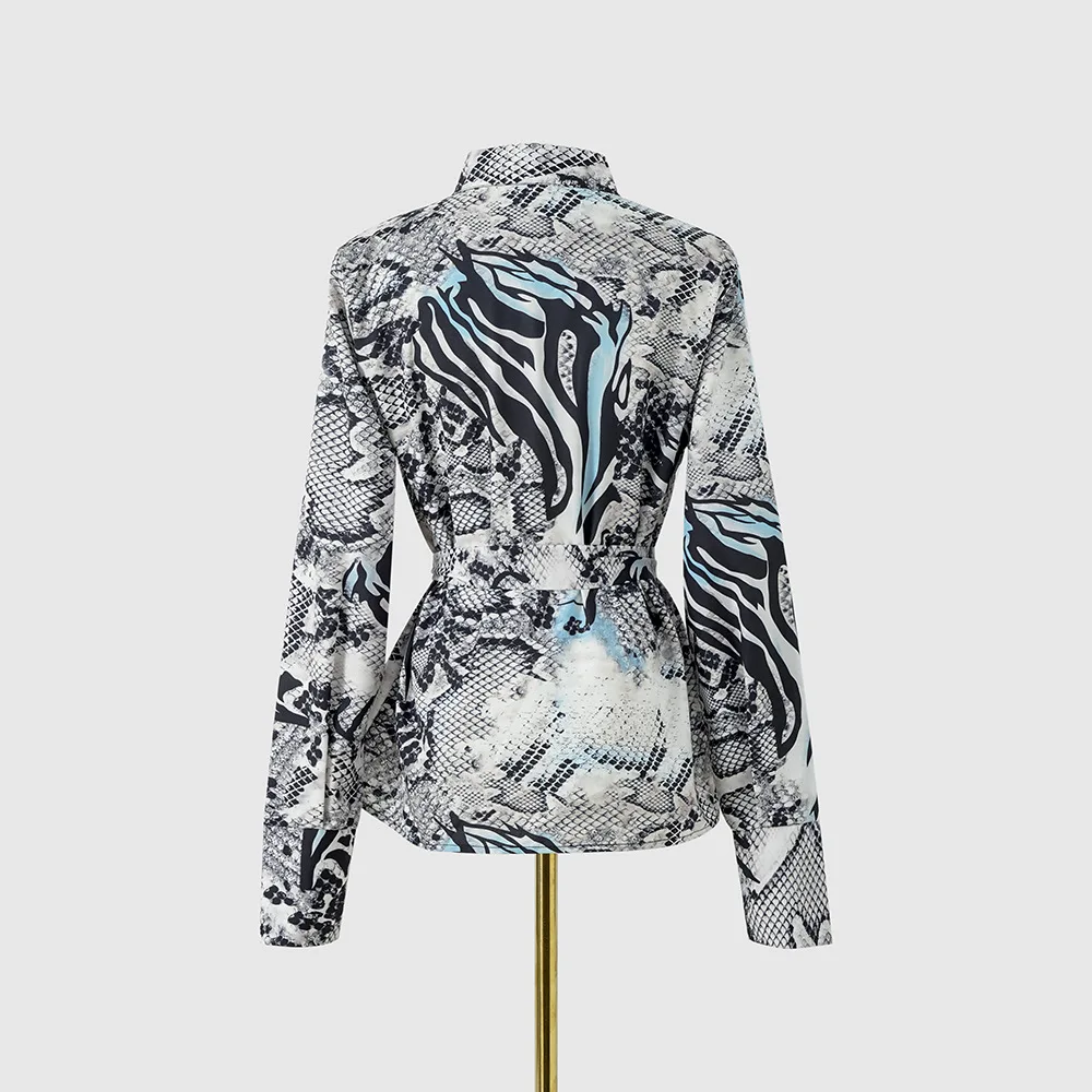 Fashionable Casual Blouse Female New Tops Snakeskin Print Women Shirt Long Sleeve Turn-down Collar Slim Style