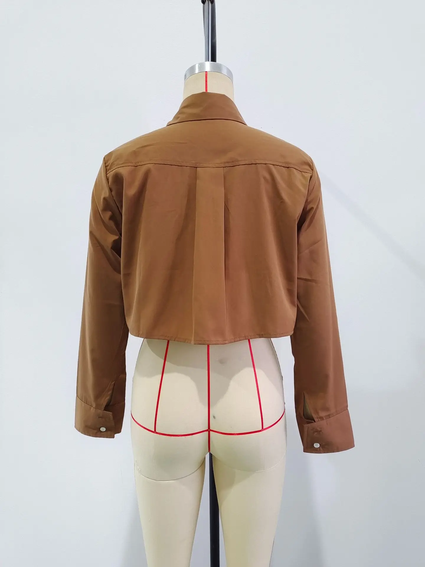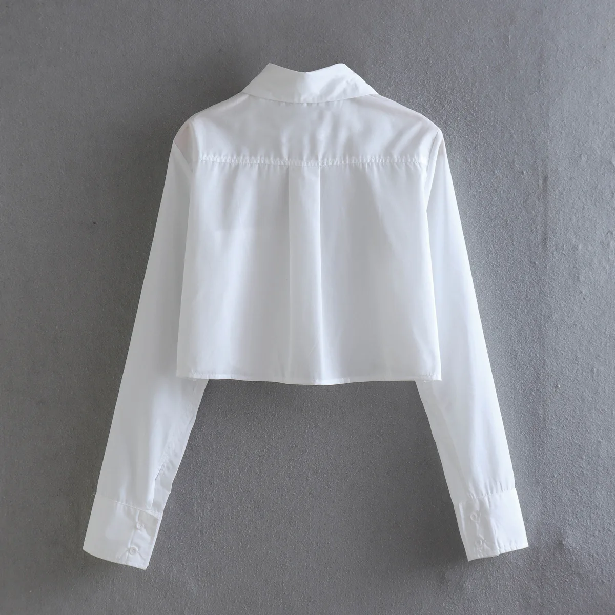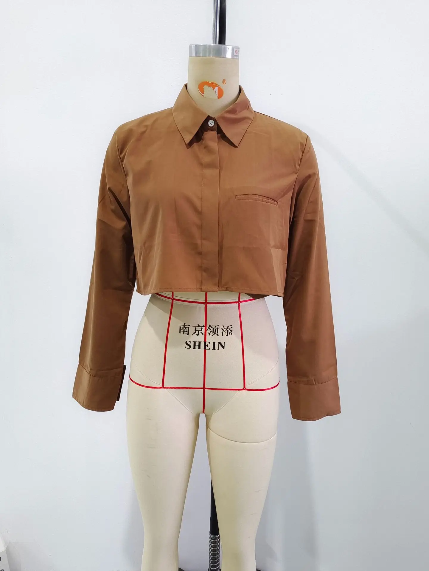 Fashionable fall trending plain ladies casual blouses top long sleeve sexy women crop top shirt