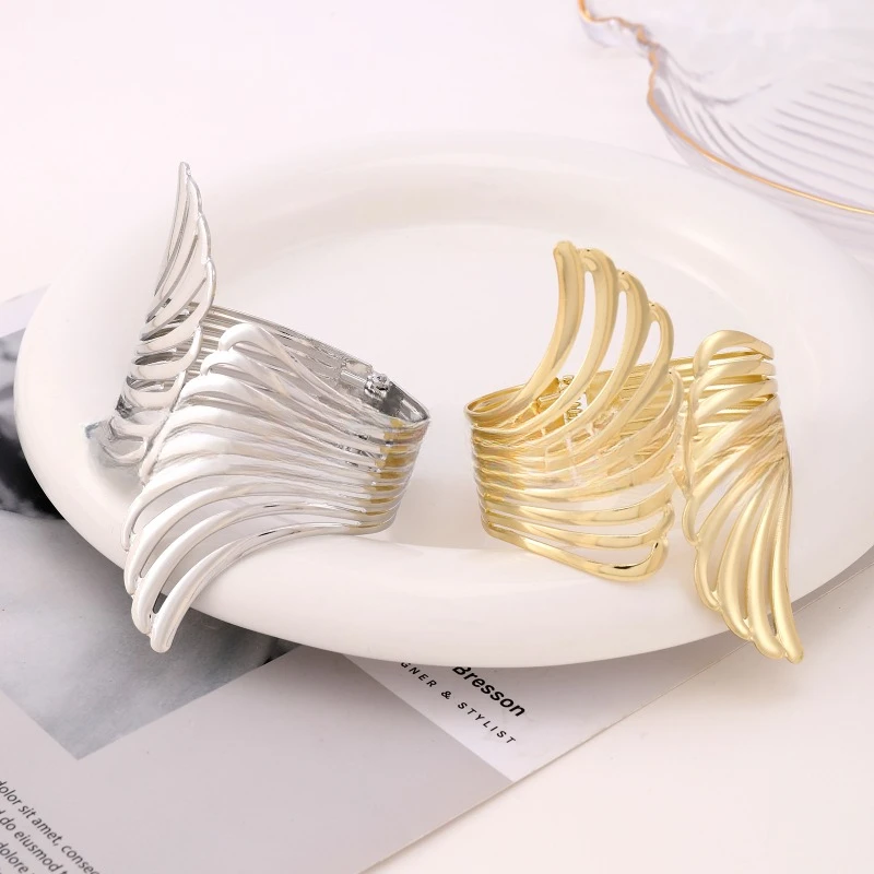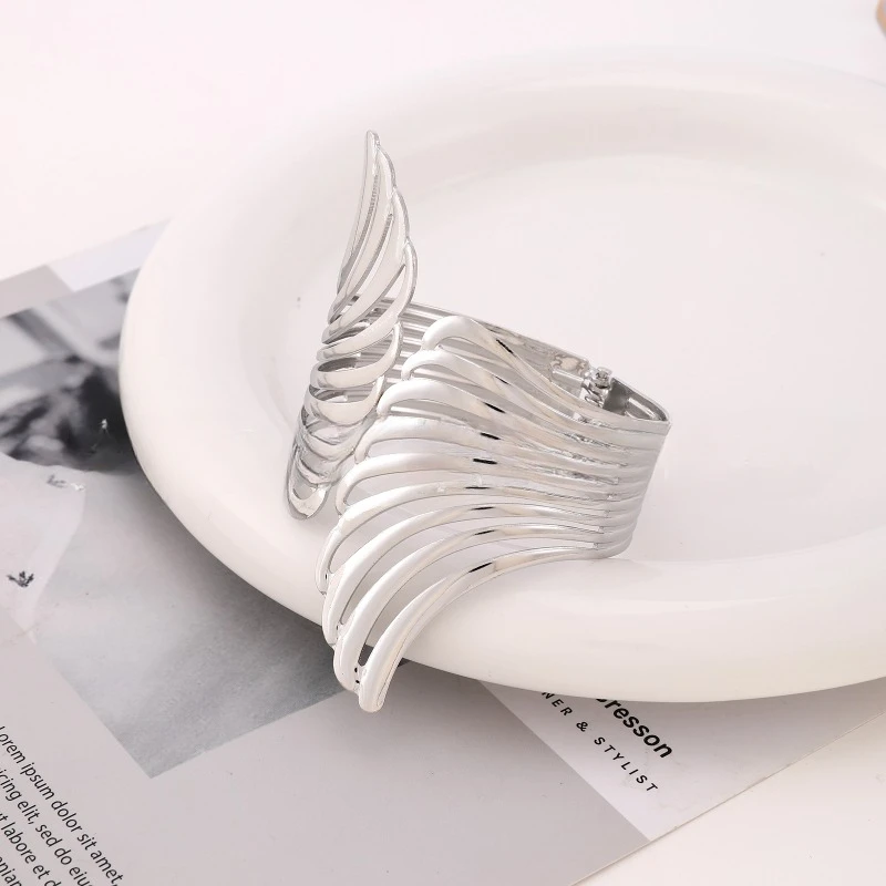 Fashionable Full And Popular Angel Wing Bracelet Wide Upper Arm Bracelet Personalized Smooth Face Open Bracelet
