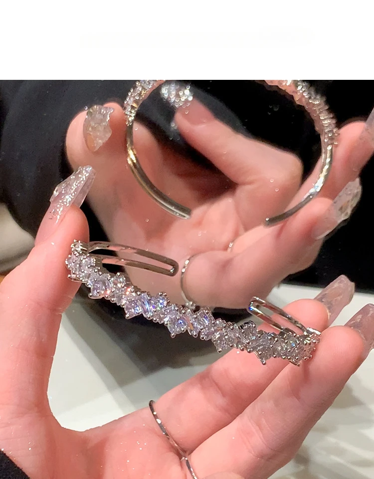 Fashionable Full Diamond Bracelet Women New 2024 Irregular Bracelet High Grade Exquisite Open Bangle Bracelet