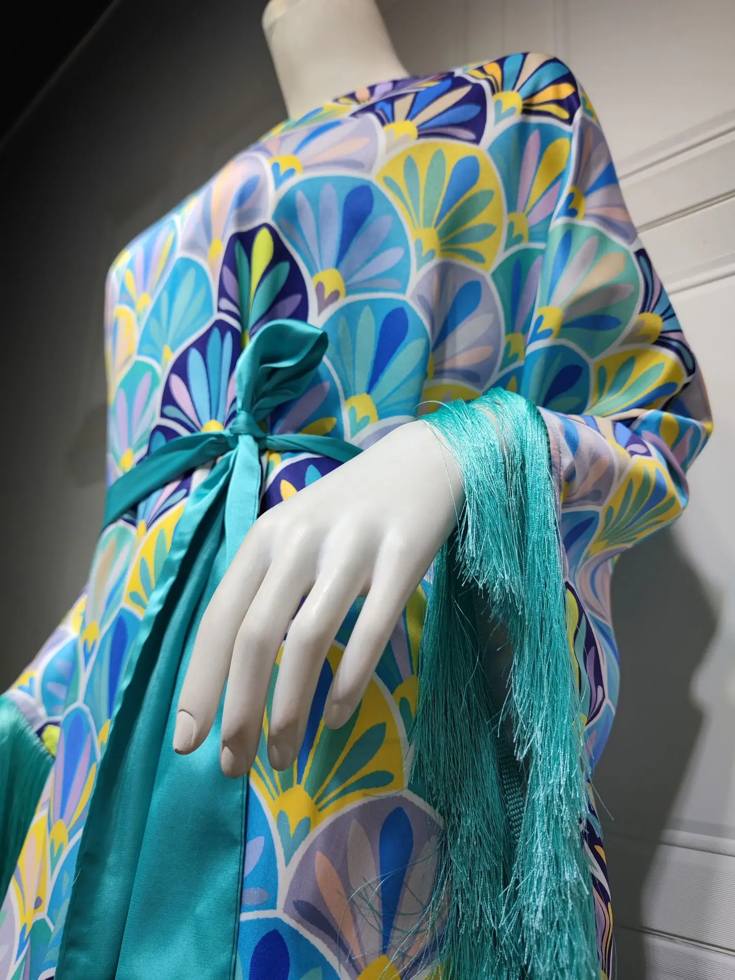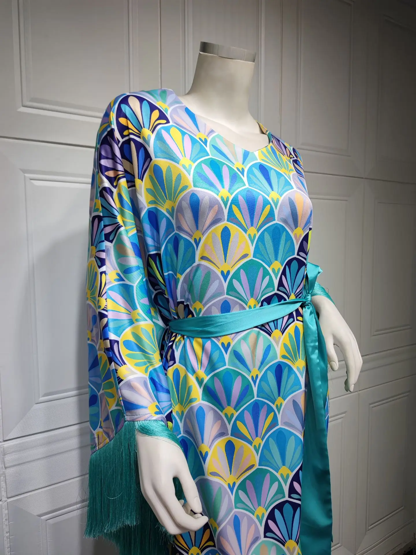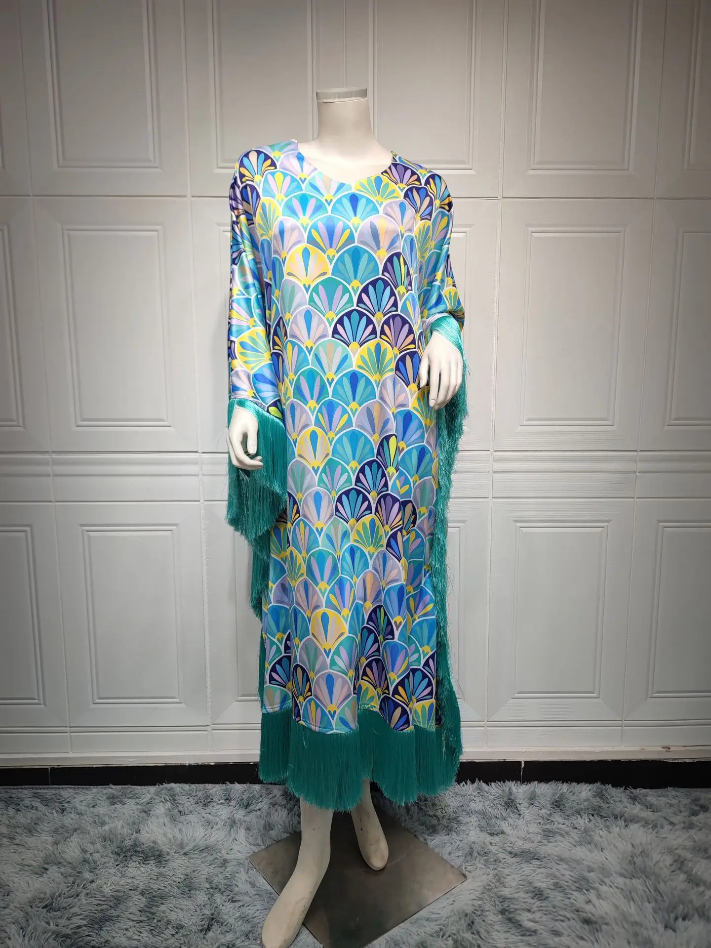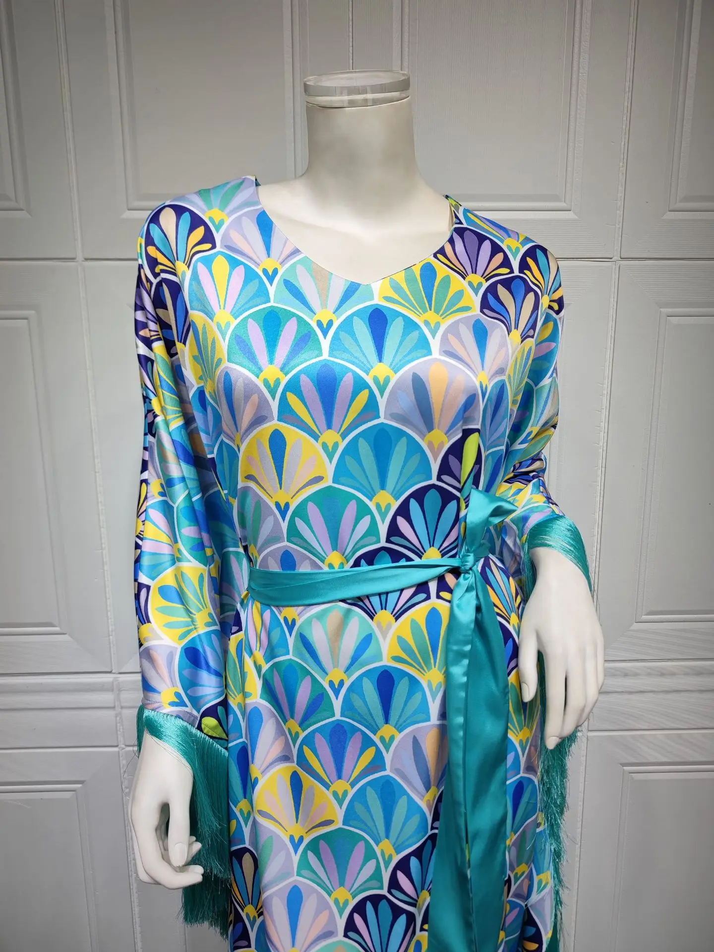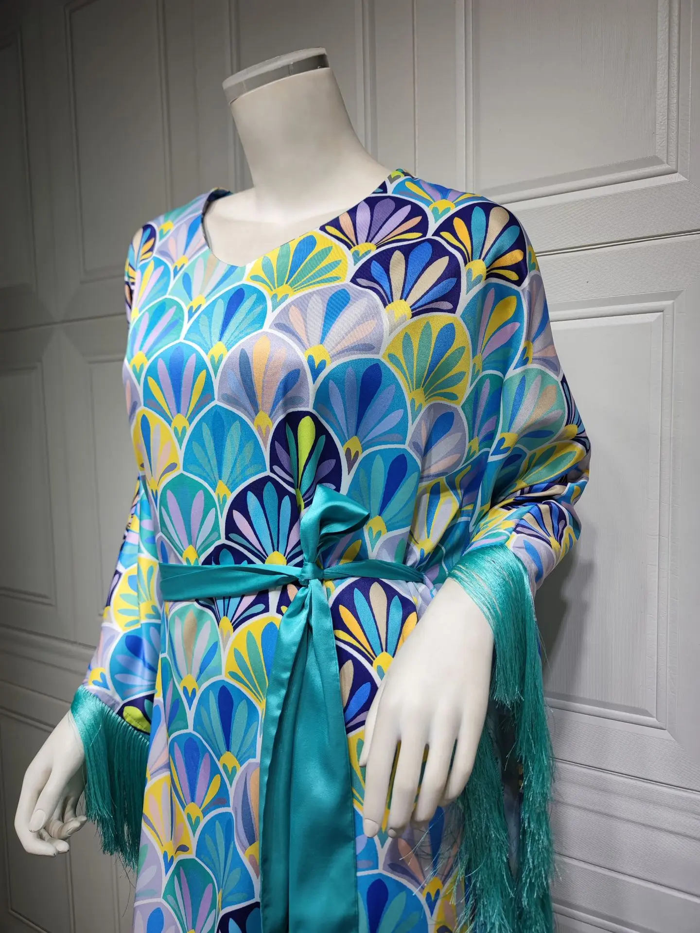 Fashionable tassel patchwork satin soft eid beautiful Muslim banquet bat sleeve abaya dubai turkey muslim fashion hijab dress