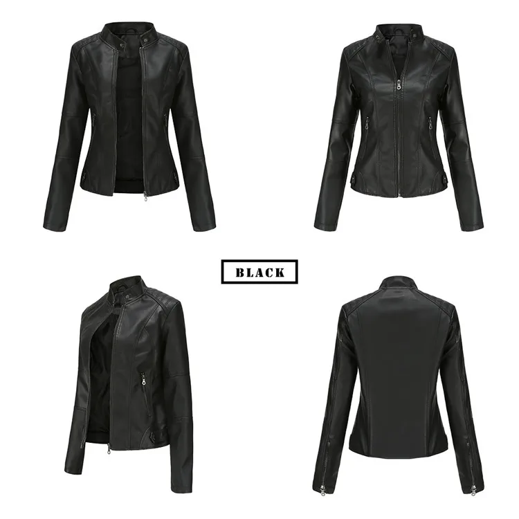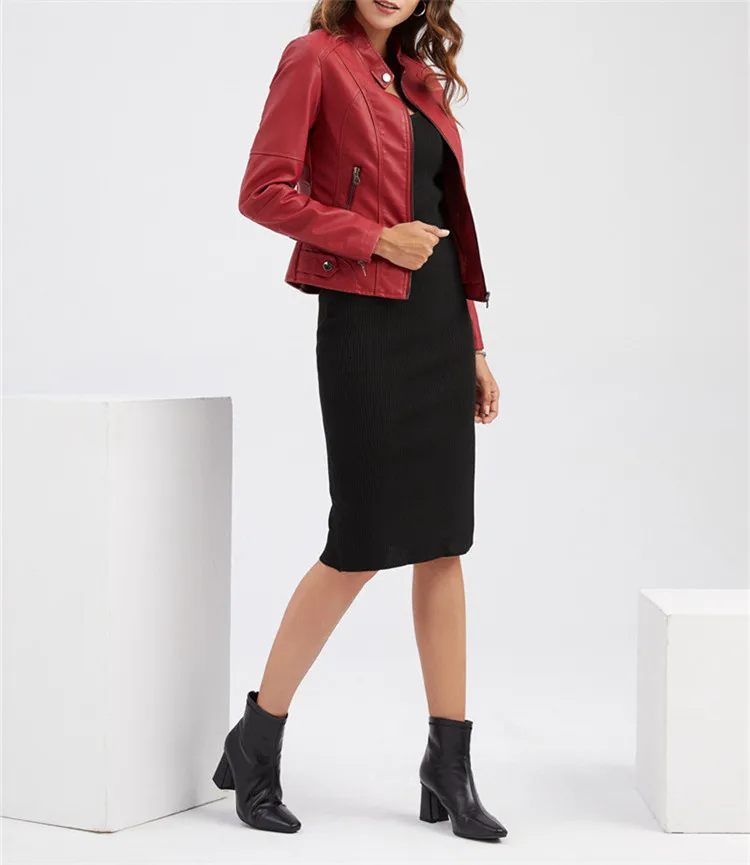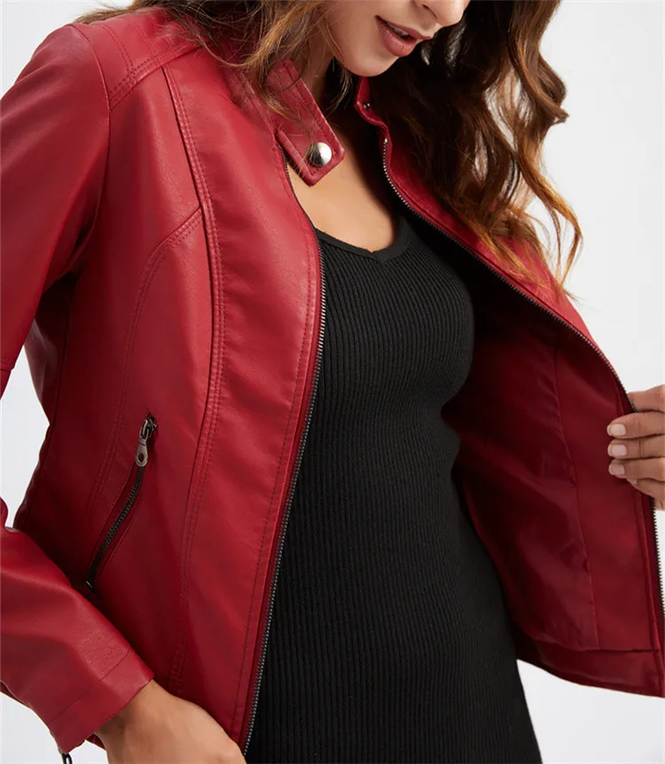 Faux Leather Jacket Women 2023 Autumn Spring Women's Moto Biker Zipper Jacket Red Black Coat