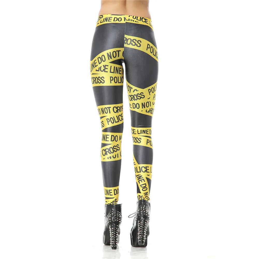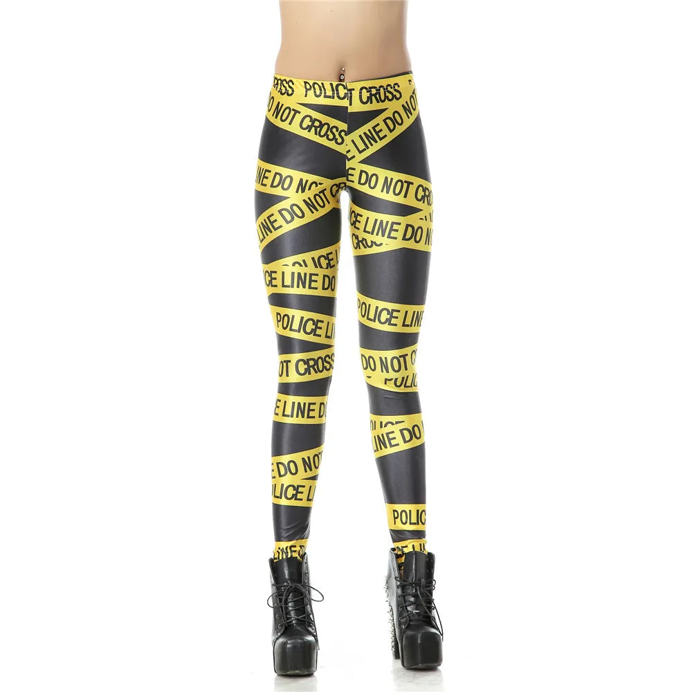 FCCEXIO 2019 New Brand 3D Printed Police Line Polyester Elastic Fitness Workout Women Leggings High Quaily Pants