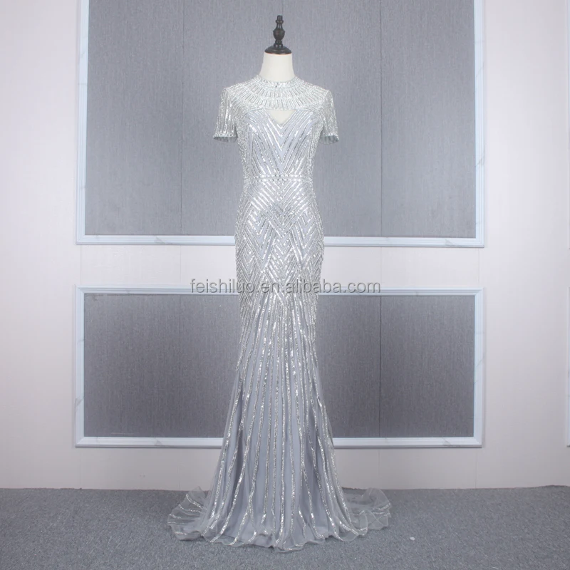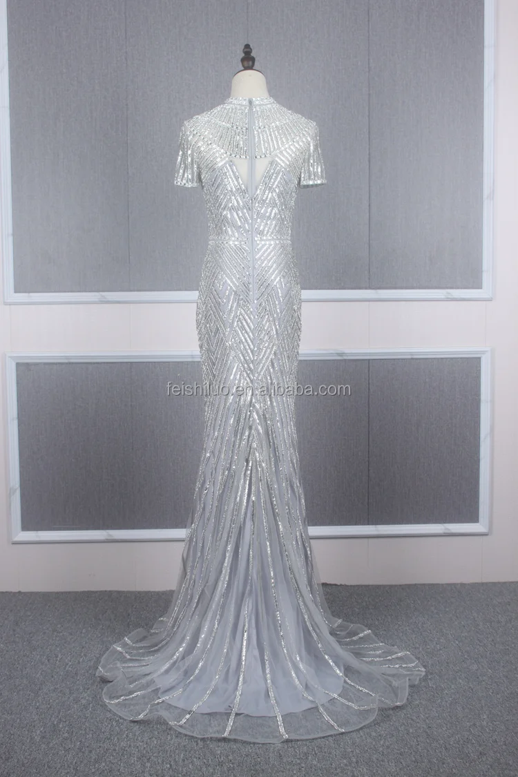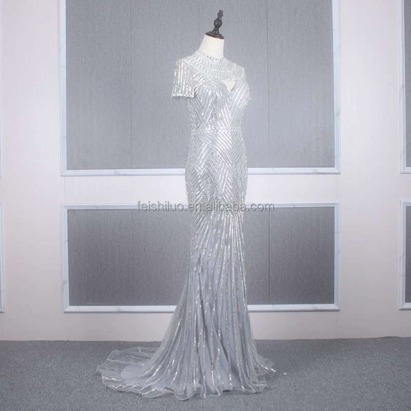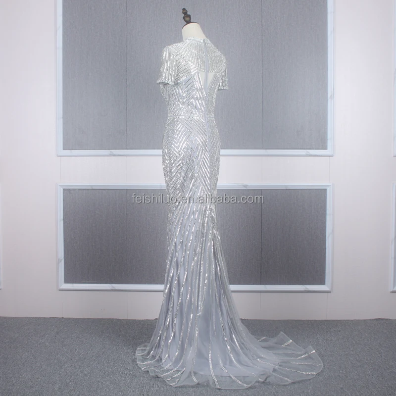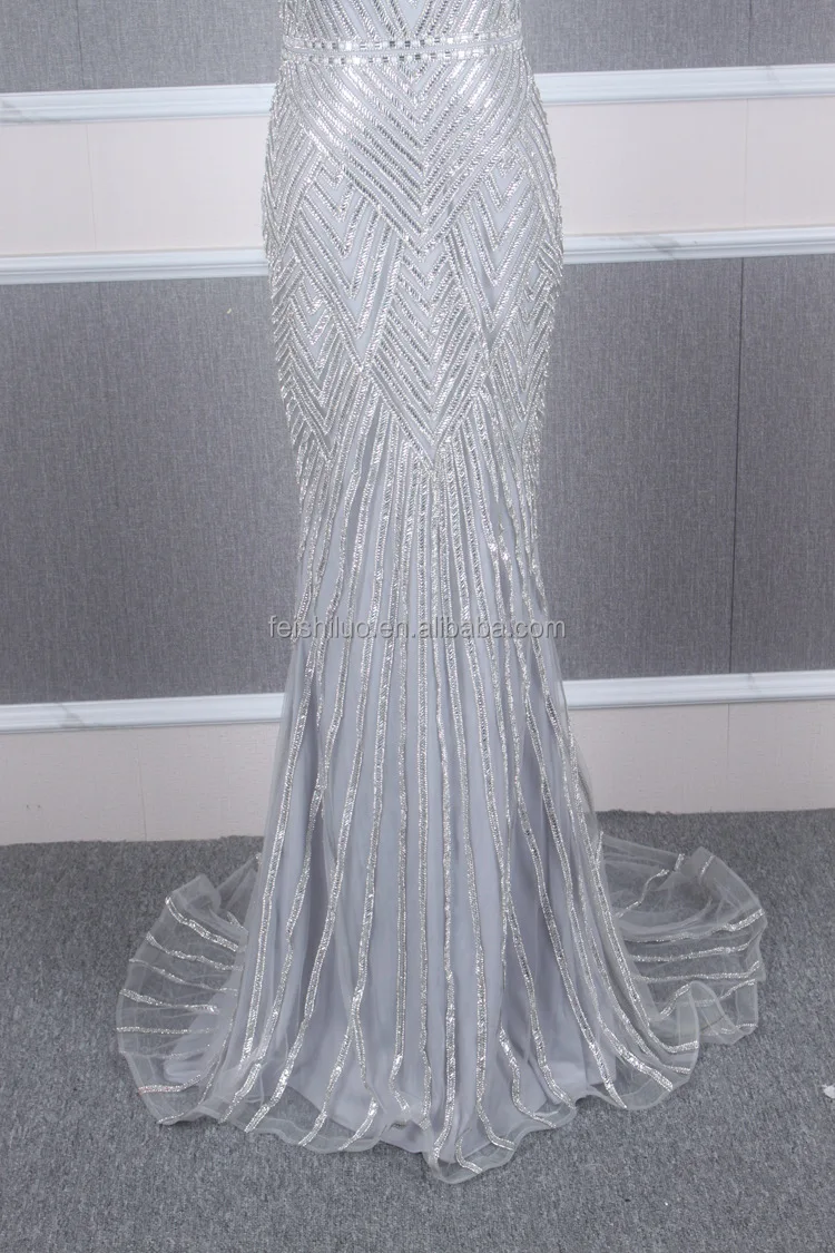 Feishiluo Crystal Sexy Mermaid Bead Evening Prom Dress Sliver Evening Dress For Girl Fashion Party Dress