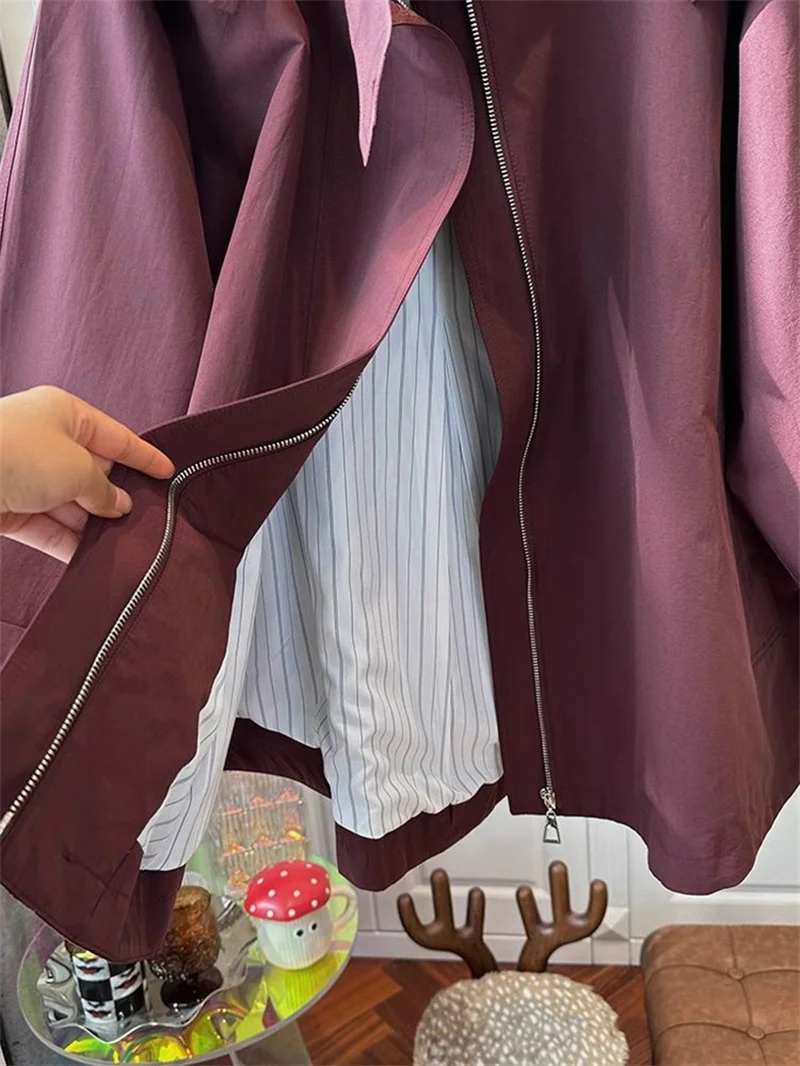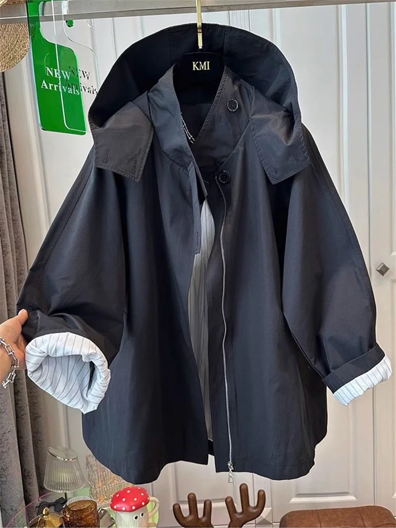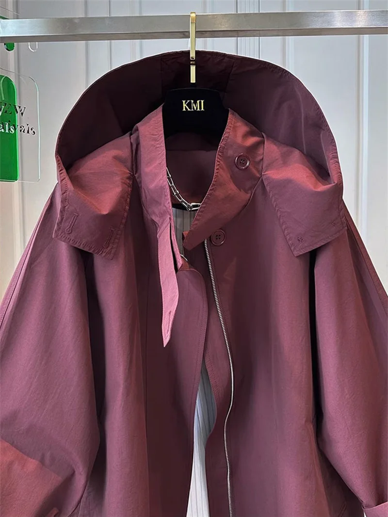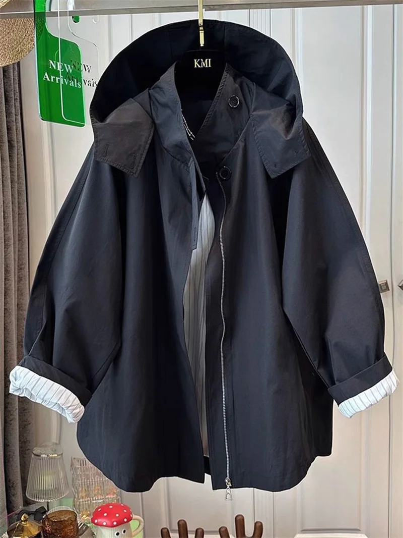 Fem Cotton Trench Coat For Women Casual And Versatile Loose And Slimming Autumn Simple Hooded Long Jacket For Women Windbreaker
