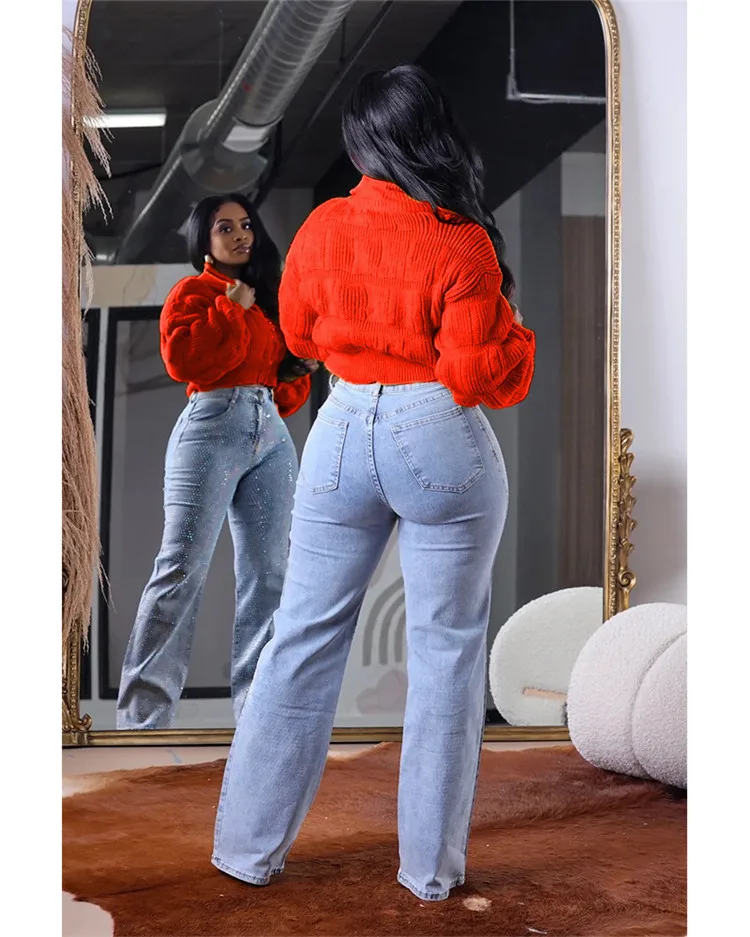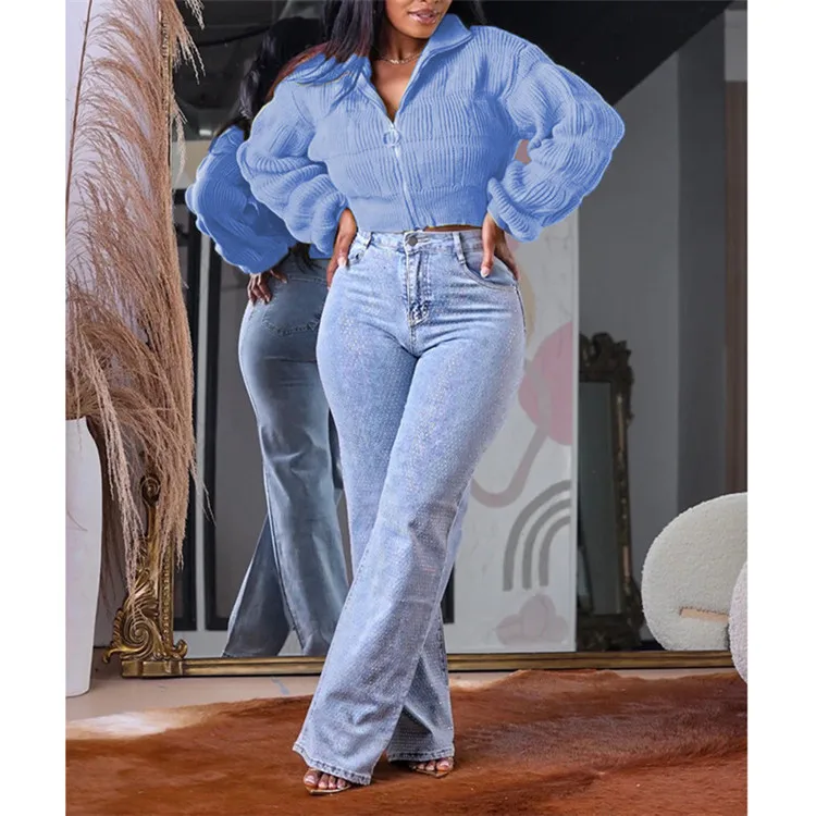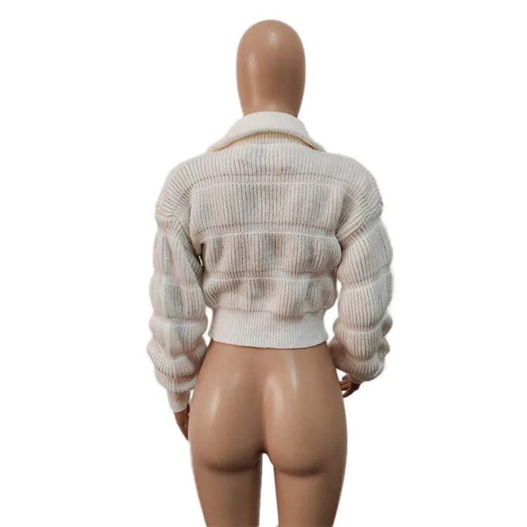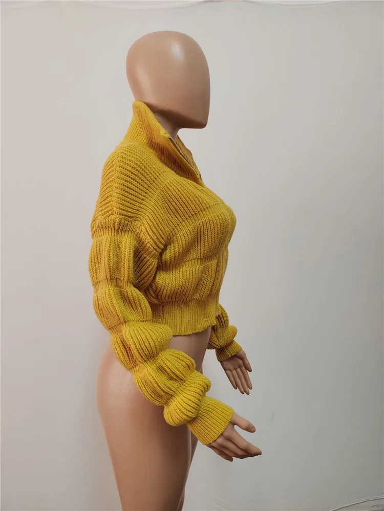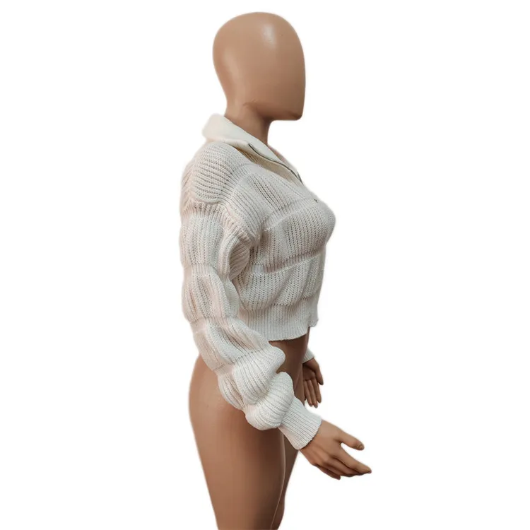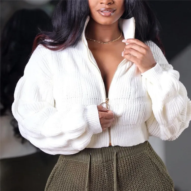 Female Lotus Lantern Long Sleeves Cardigans Zip Up Sweaters Knit Coats Woman