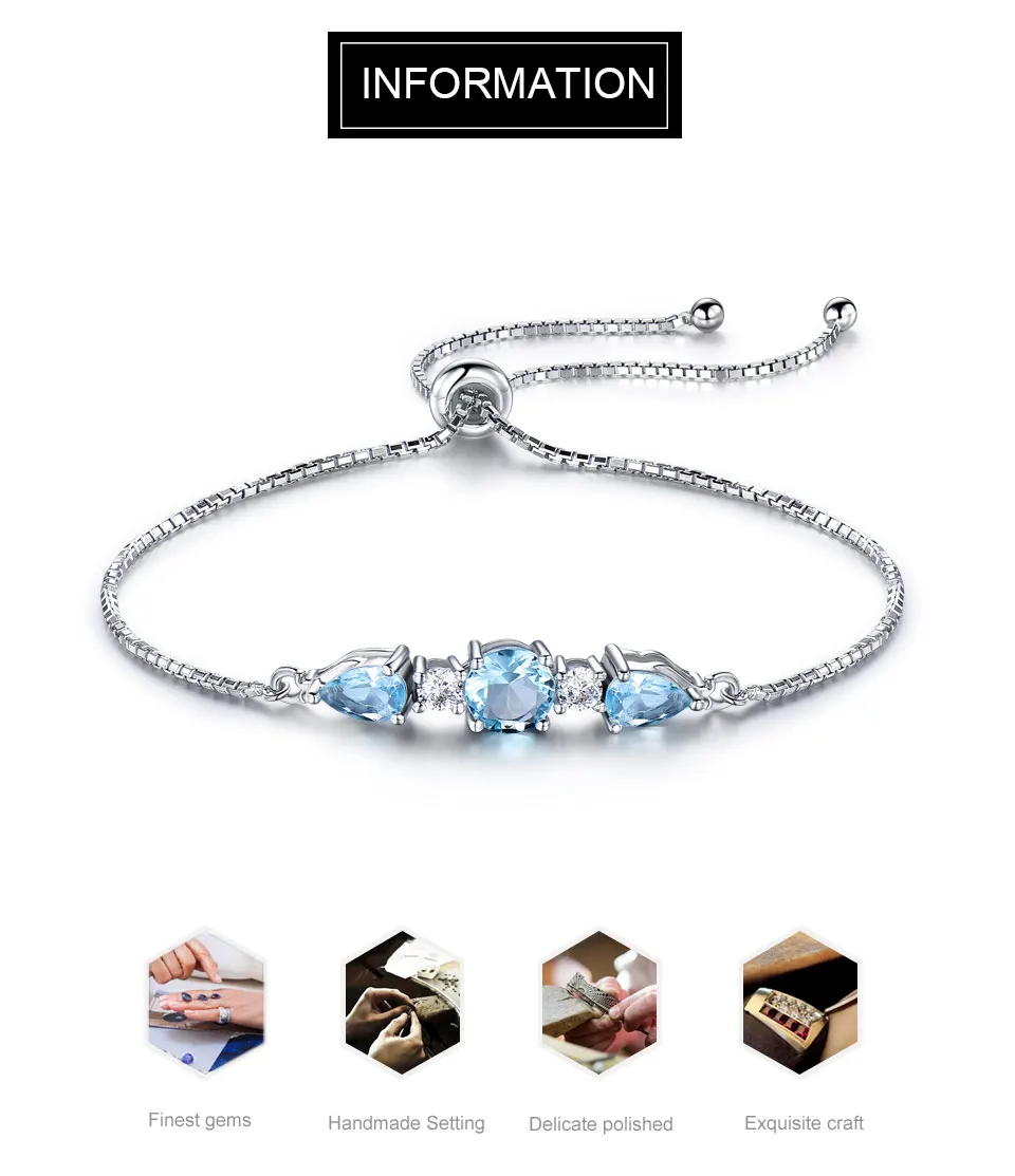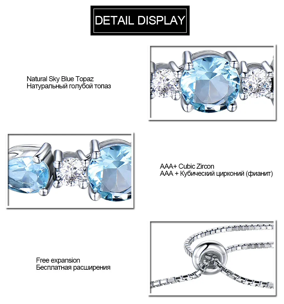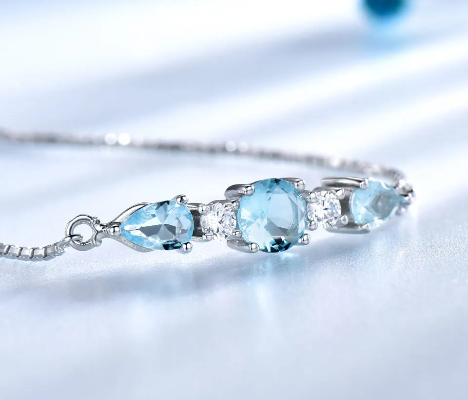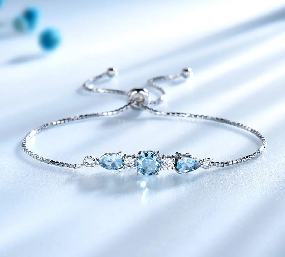 Female Silver Bracelets 925 Sterling Silver Bangles Sky Blue Topaz Adjustable Tennis Bracelet Jewelry for Women