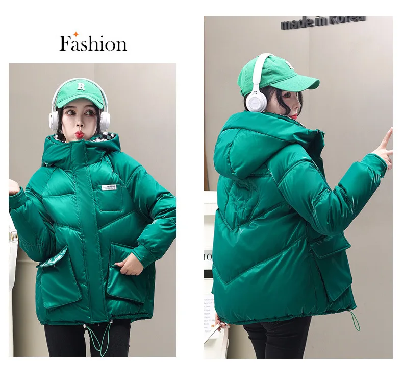 Female Winter Parka 2022 New Short Korean Version Loose Coat Ladies Fashion Add Thick Keep Warm Hooded Down Cotton Outcoat Tops