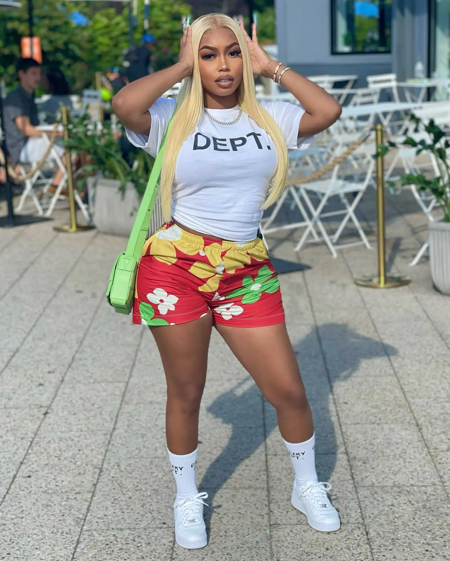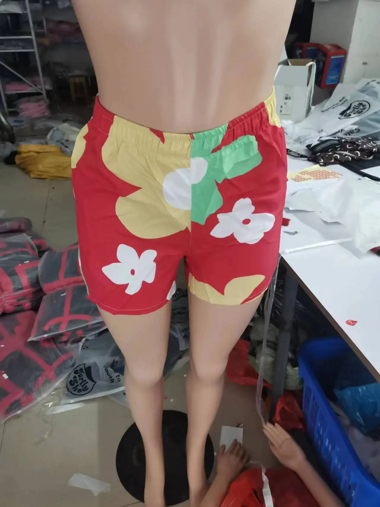 Fengway 2023 Hot selling Summer Plus Size Floral Print Elastic Waist Shorts For Women