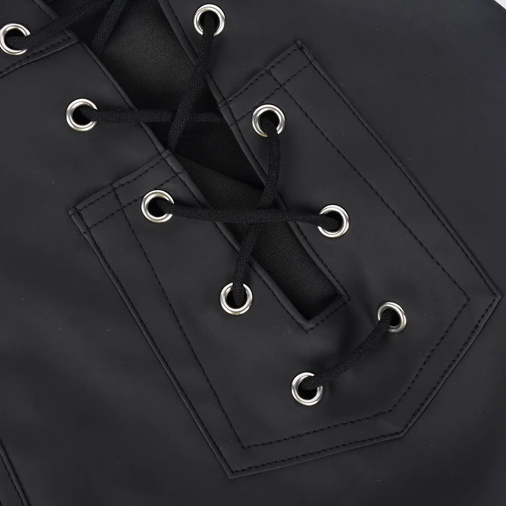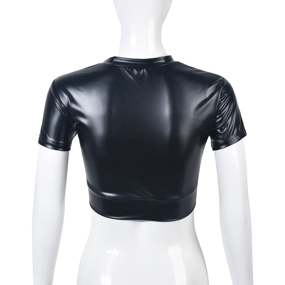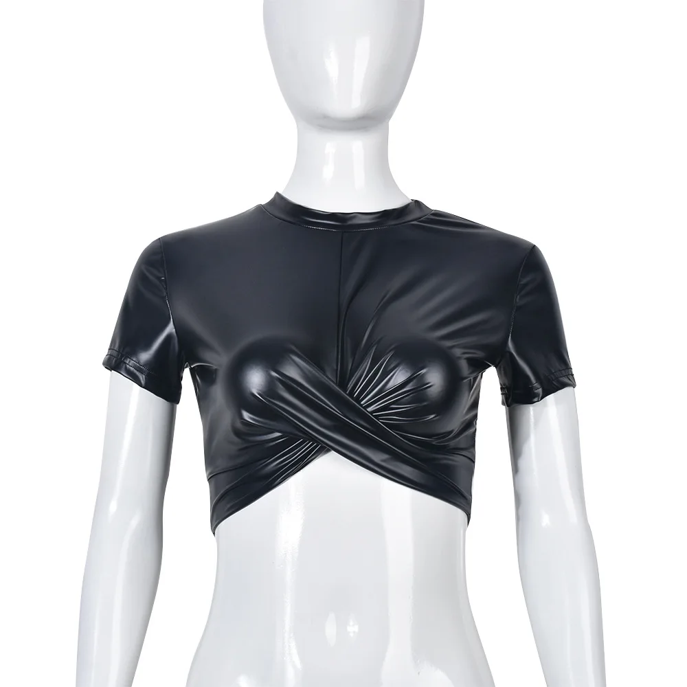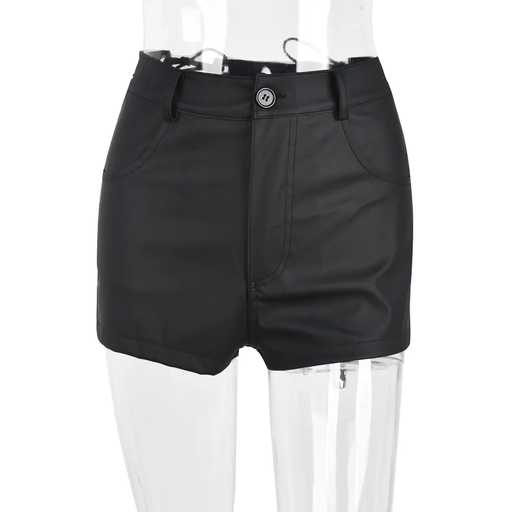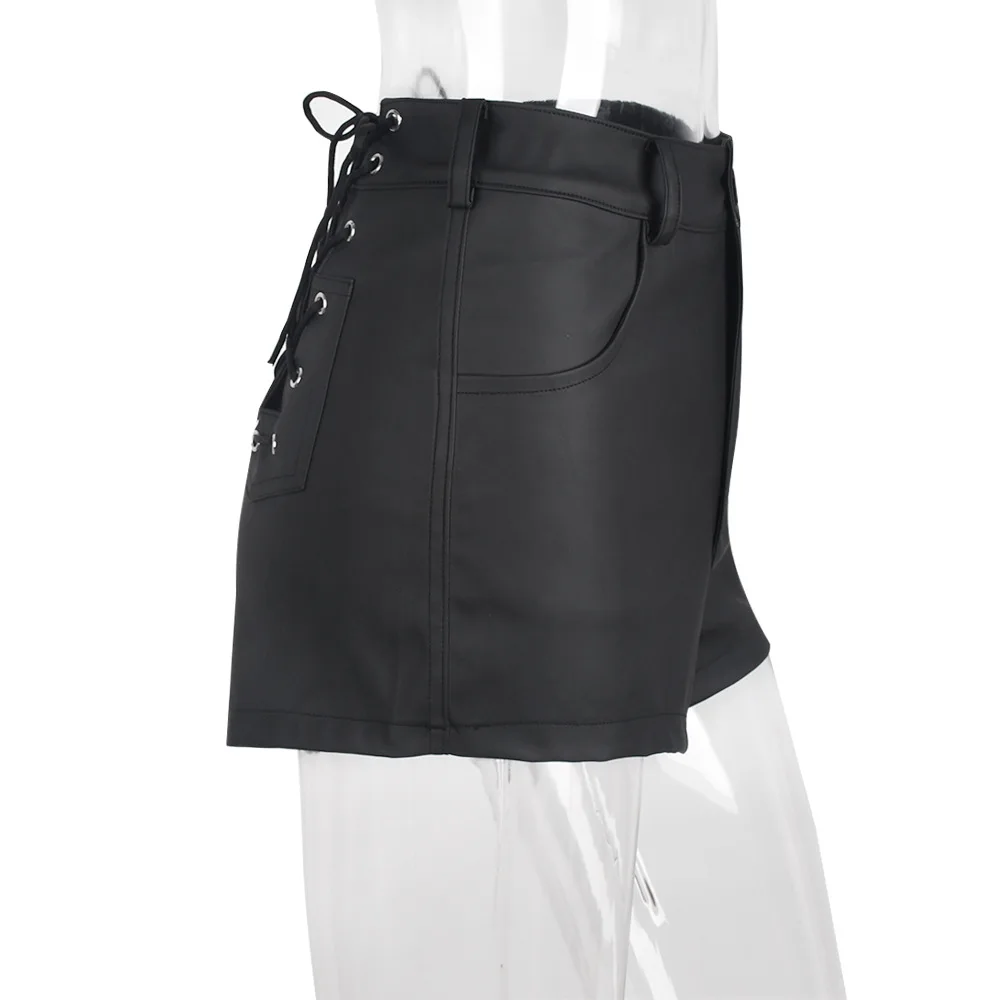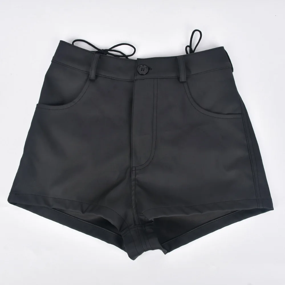 Fengway 2023 Summer Fashion Women High Waist hollow out Bandage Shorts Streetwear Faux Pu Leather Shorts+ PU leather crop top