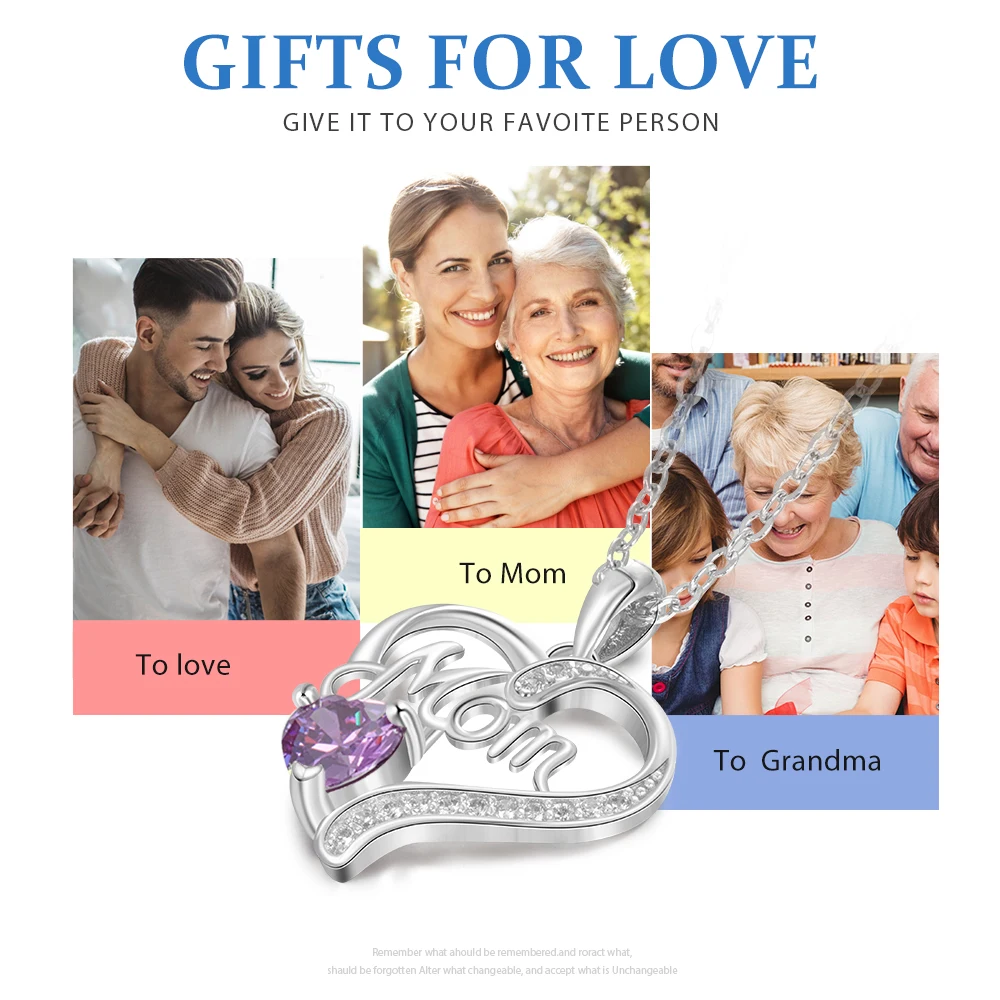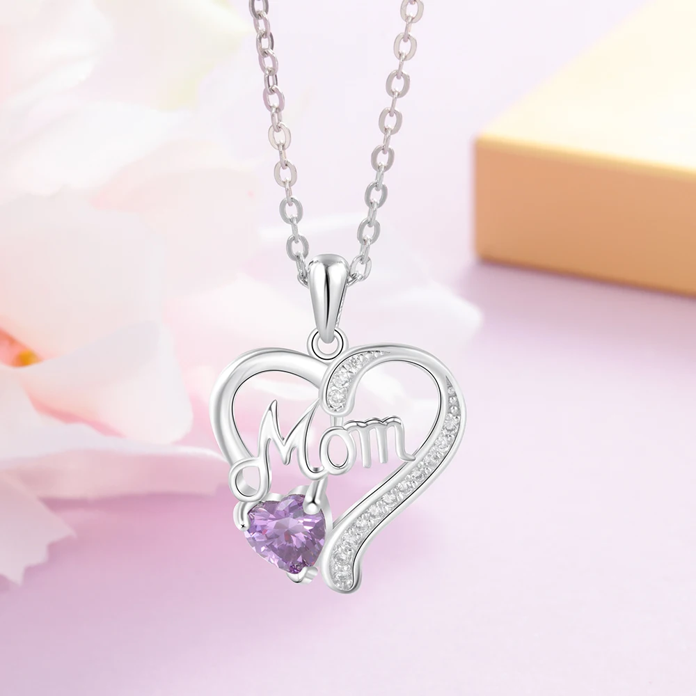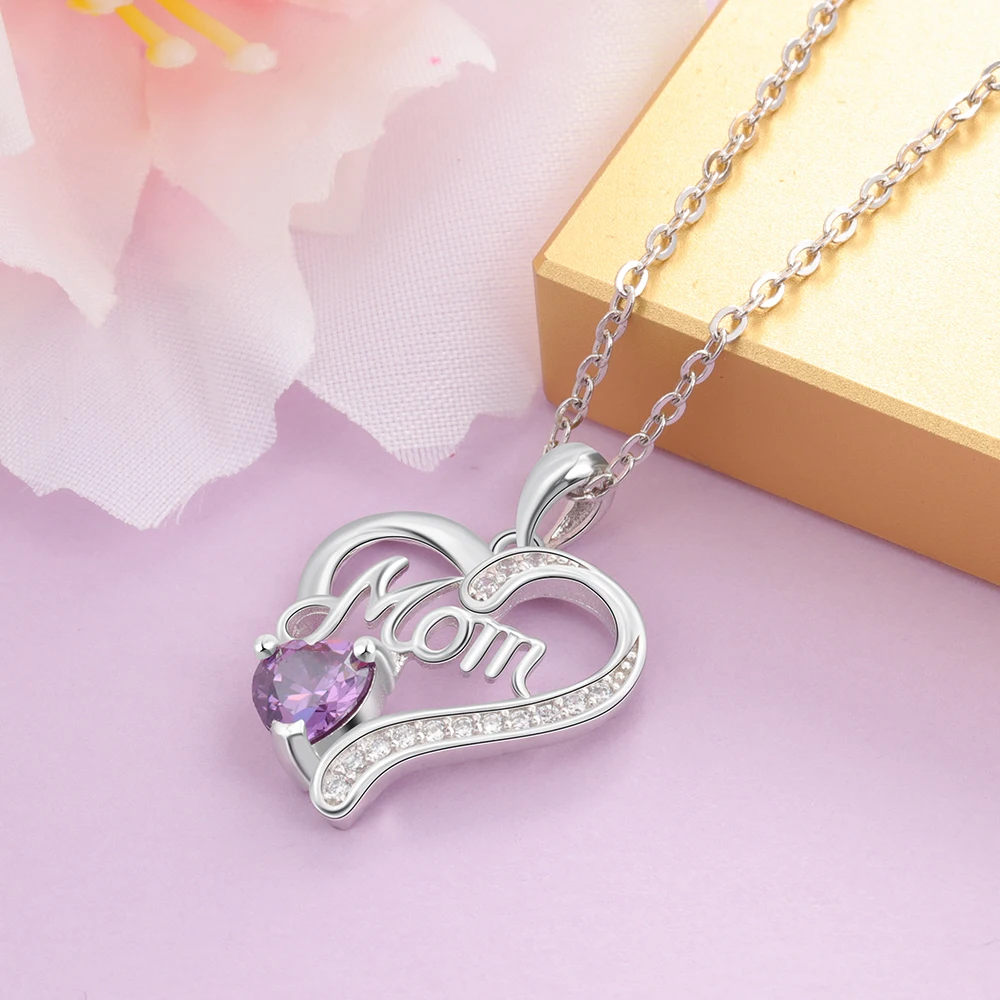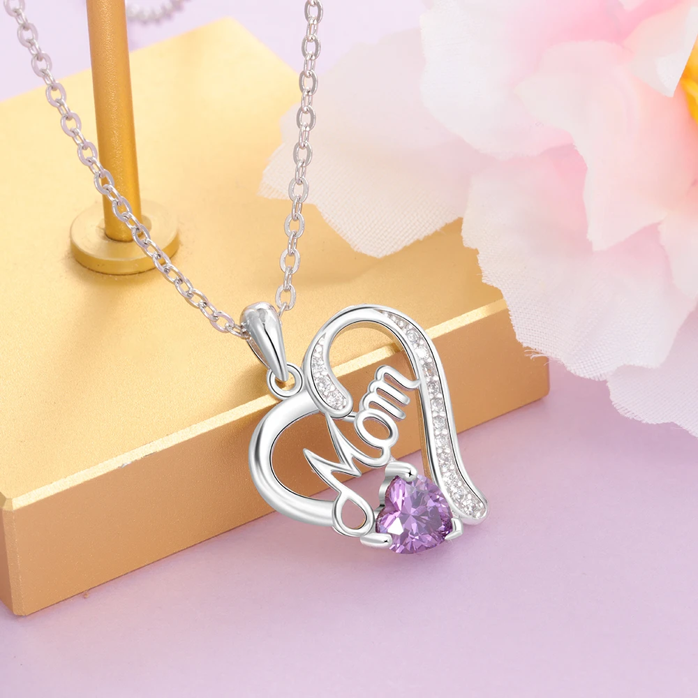 Find Jewelry Custom Birthstone Mom Pendant Necklace Custom Cubic Zirconia Heart Necklace