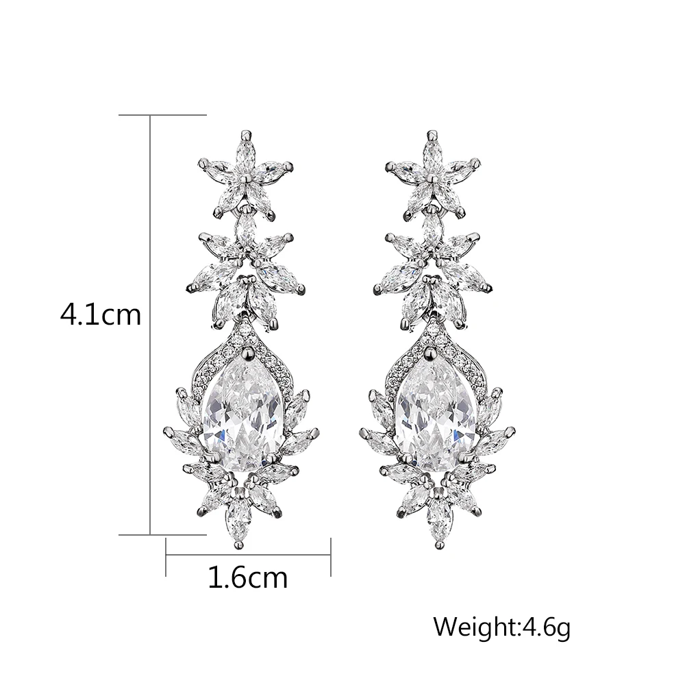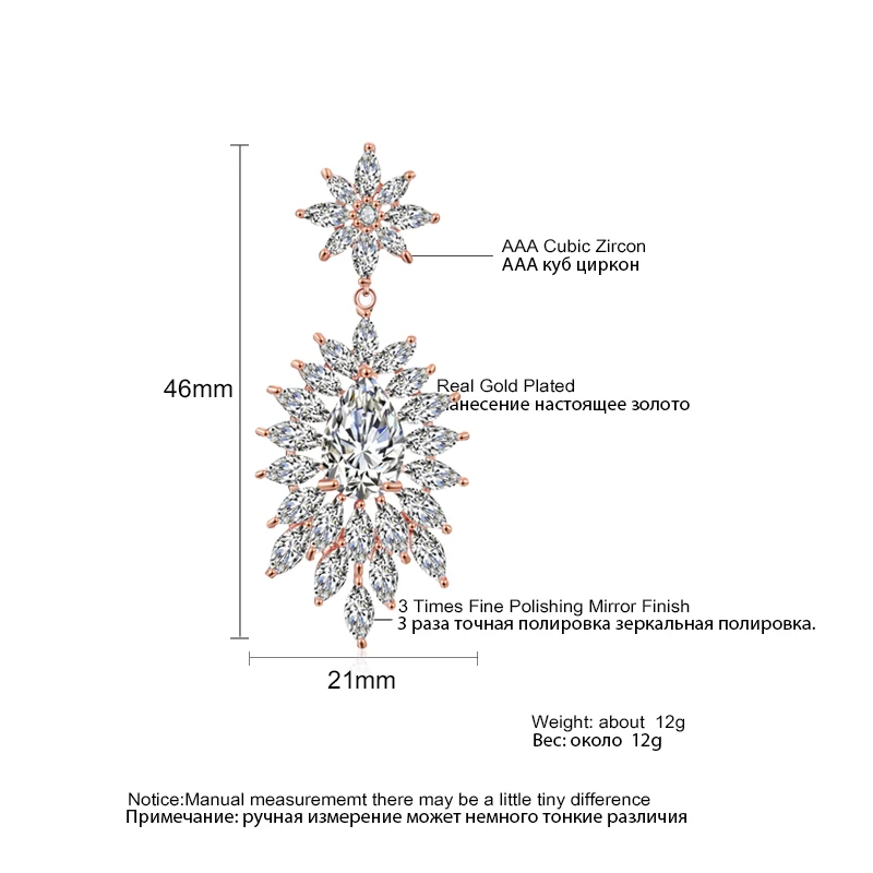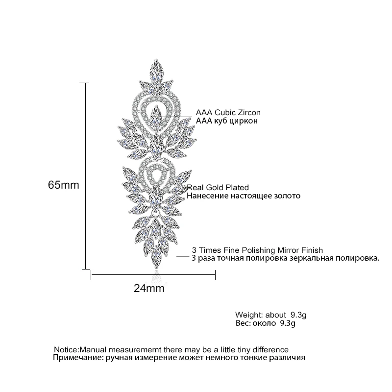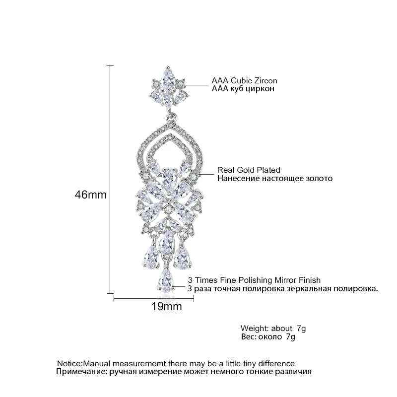 fine design exquisite cubic zirconia bridal statement long drop earrings women gold plated diamond earrings jewelry