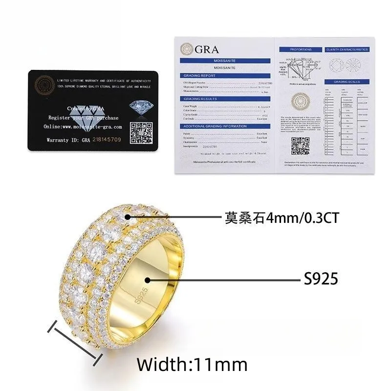 Fine Jewelry VVS1 With Certificate Moissanite Rings For Men Hip Hop Pave Setting S925 Sterling Silver Rings Hip Hop Jewelry