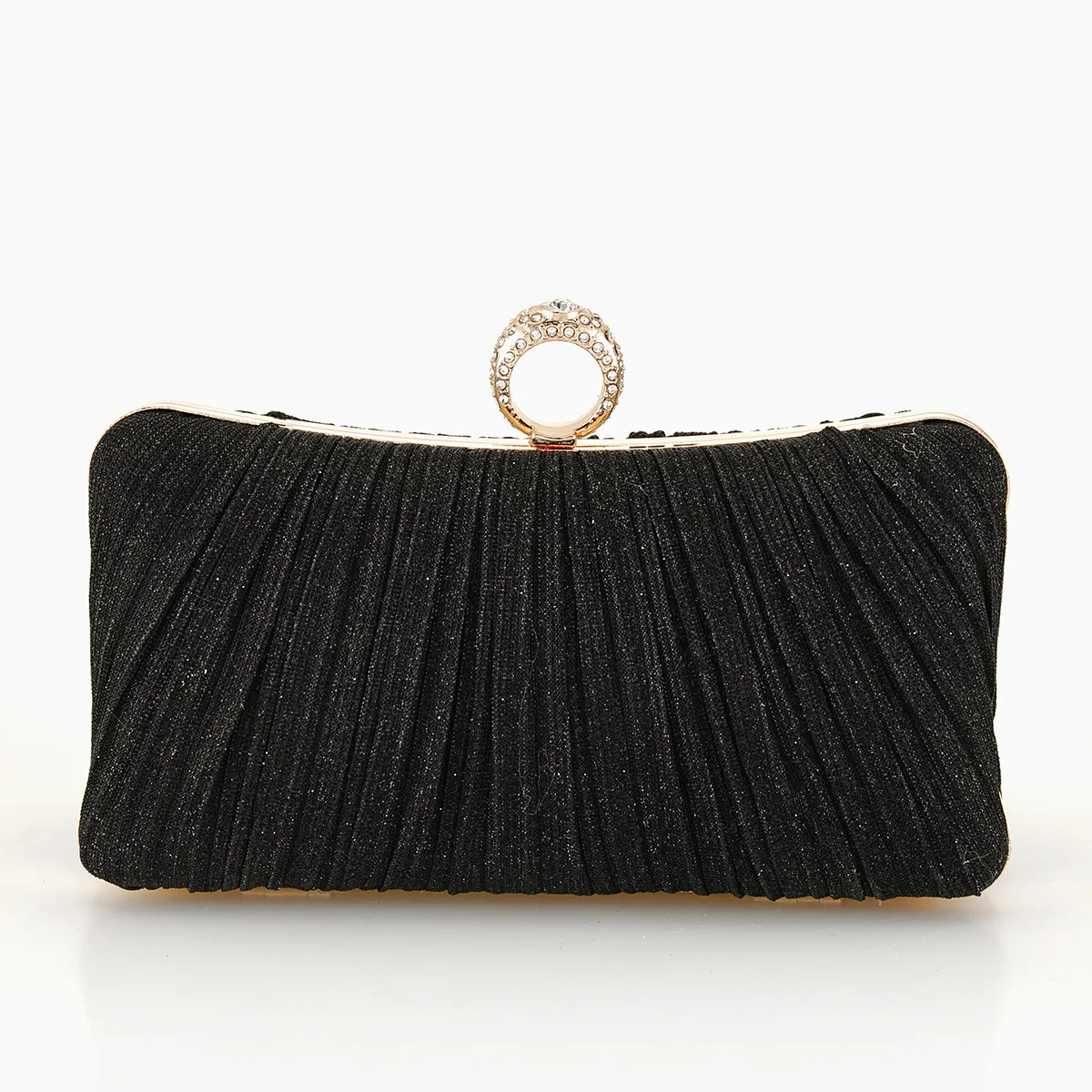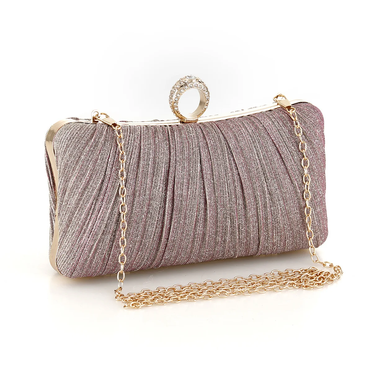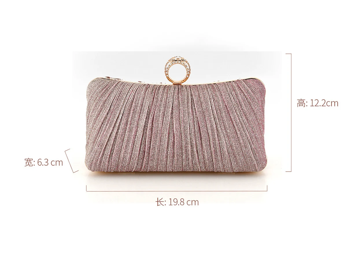 Finger Ring Women Evening Bags Diamonds Metal Luxury Prom Clutch Bags Ruched Casual Party Wedding Chain Handbags