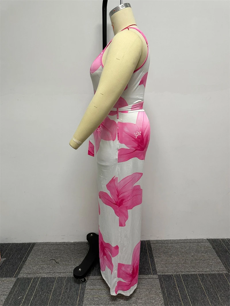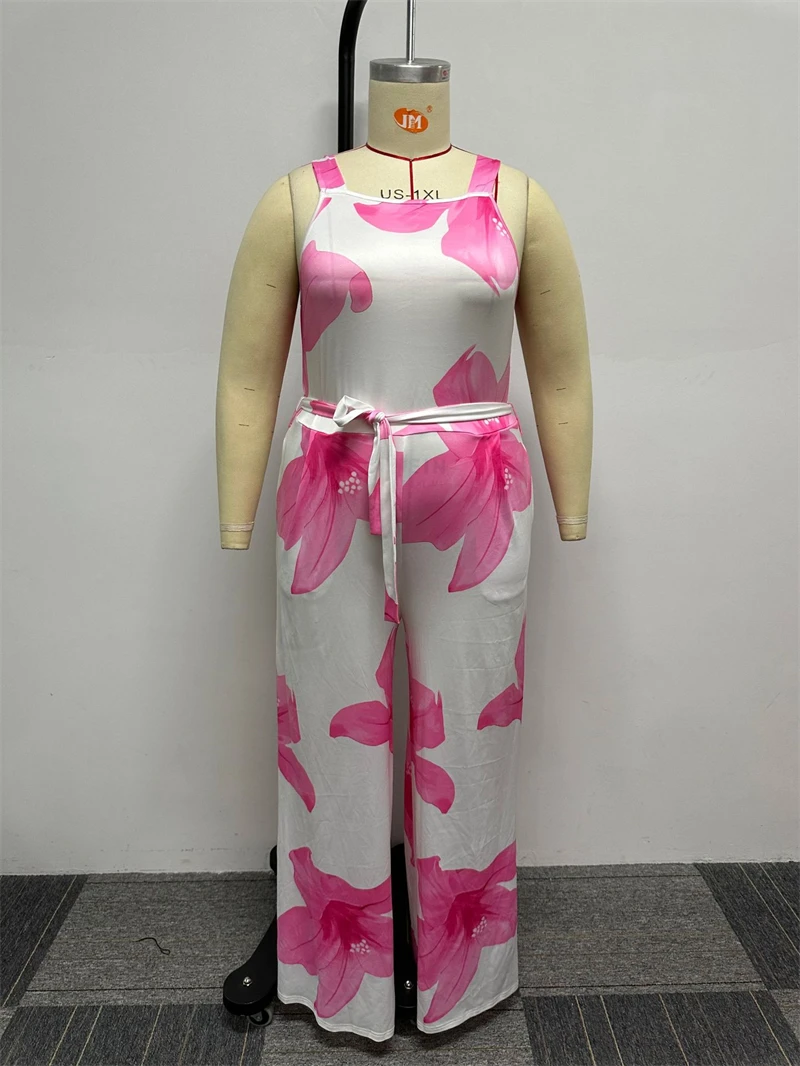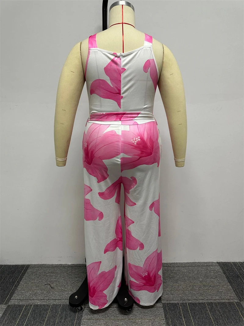 floral print trendy big plus size women clothing 3XL 4XL luxury summer 2023 street loose wide leg flare pants romper jumpsuit