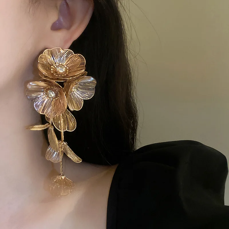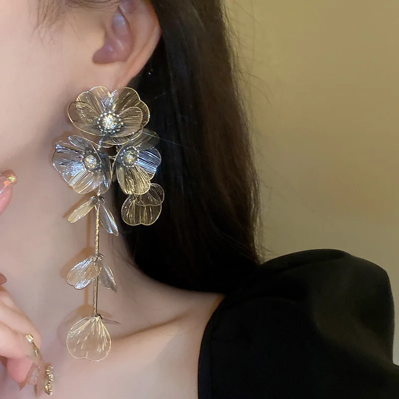 Flower pearl crystal sequin fringe earrings