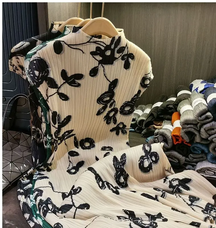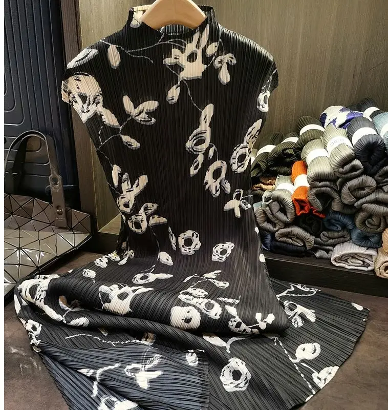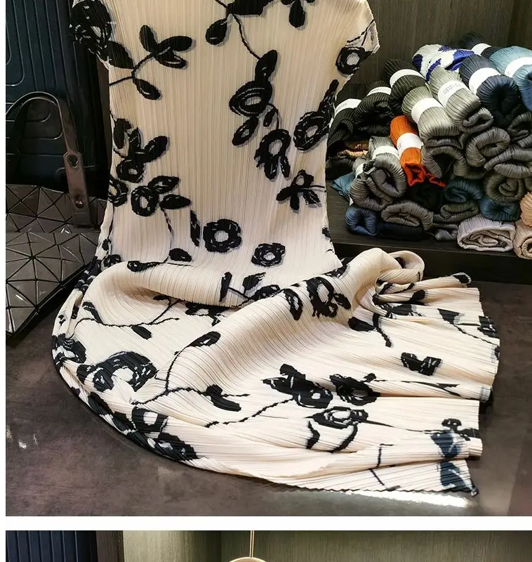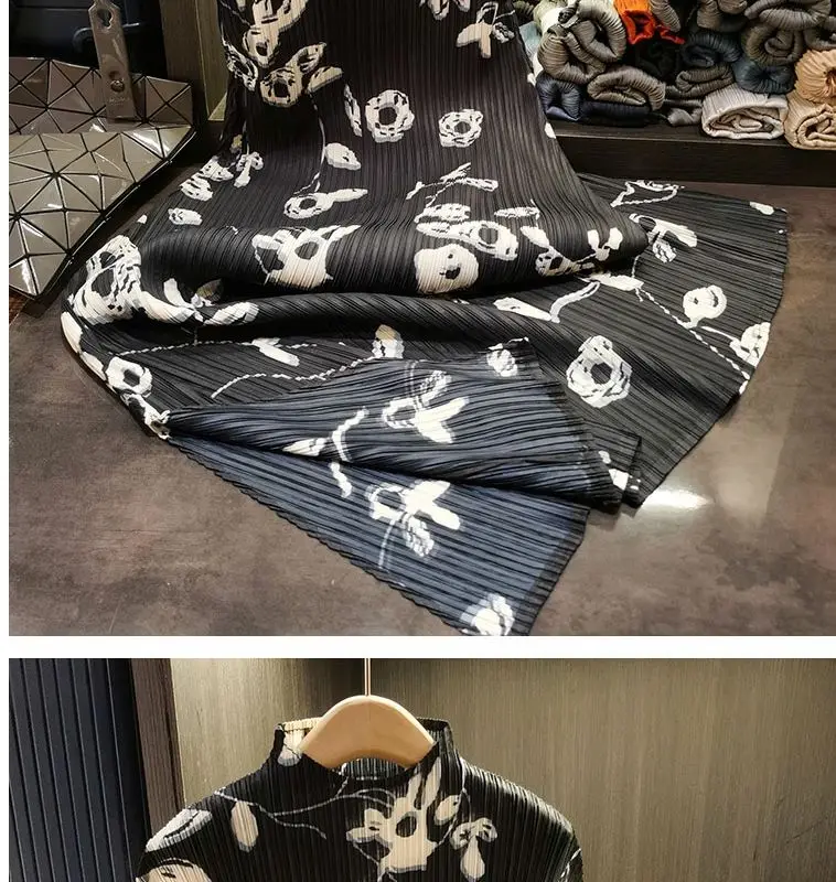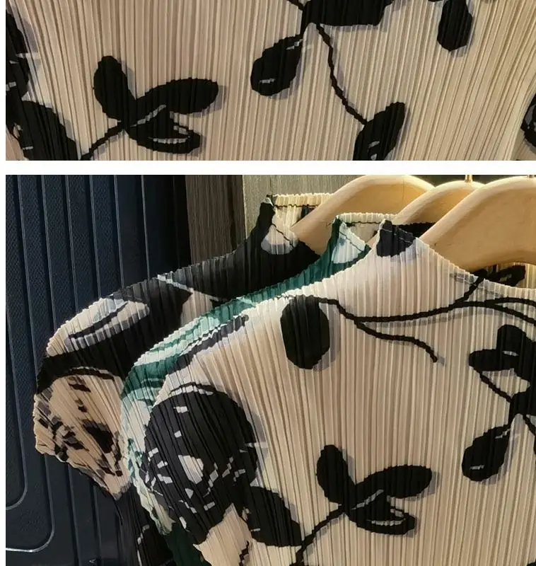 Folding dress women's summer new temperament fashion stand collar short sleeve printing dress hem split loose long skirt.