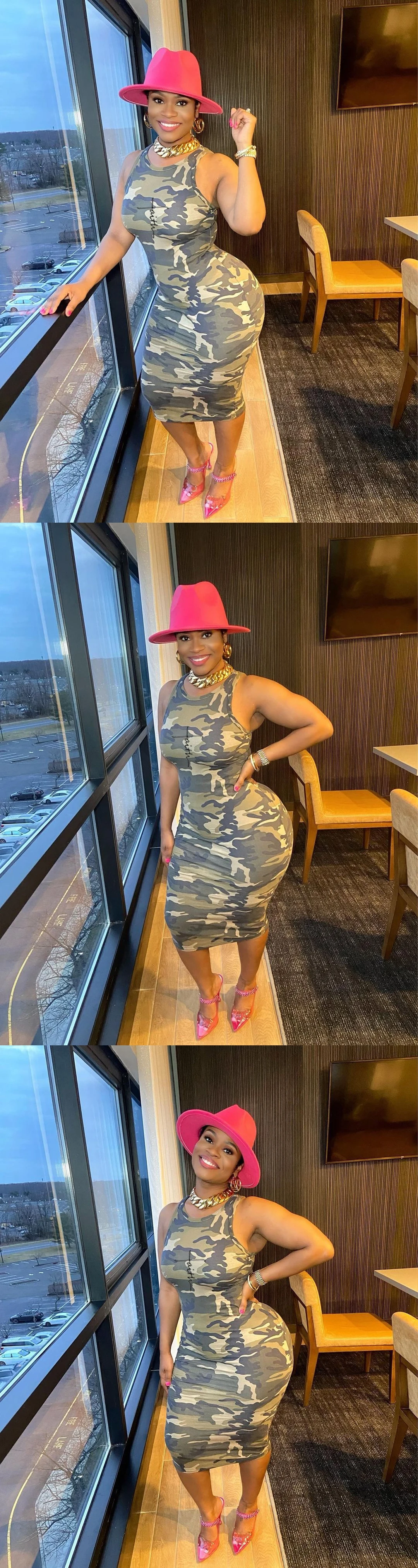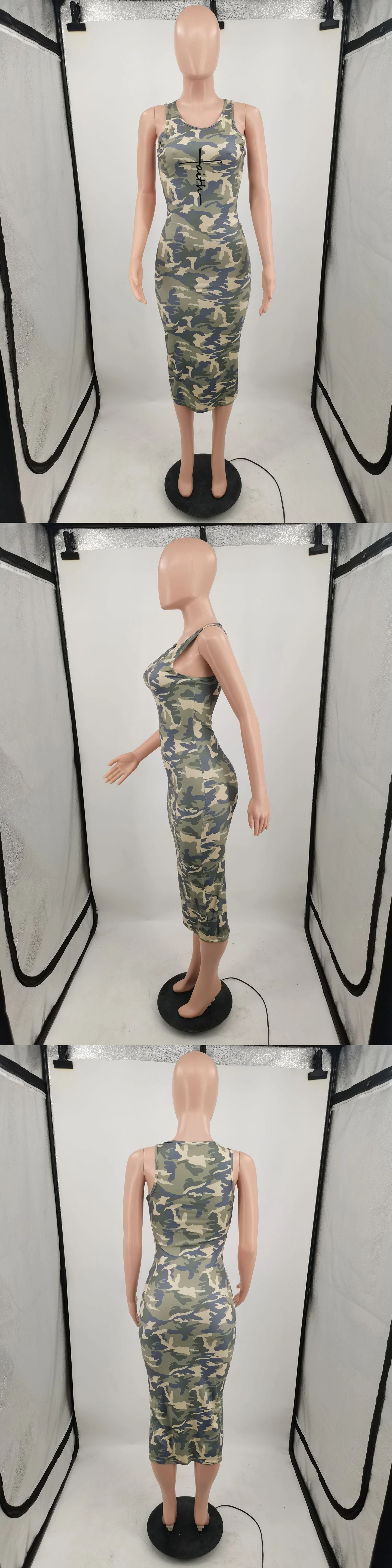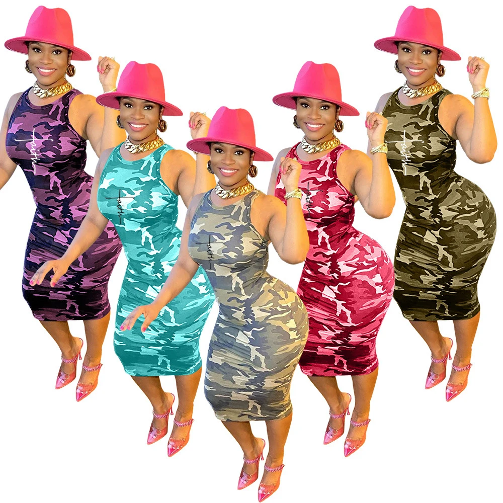 Foma 2023 Sleeveless round neck camouflage print casual midi women summer fashion bodycon dress