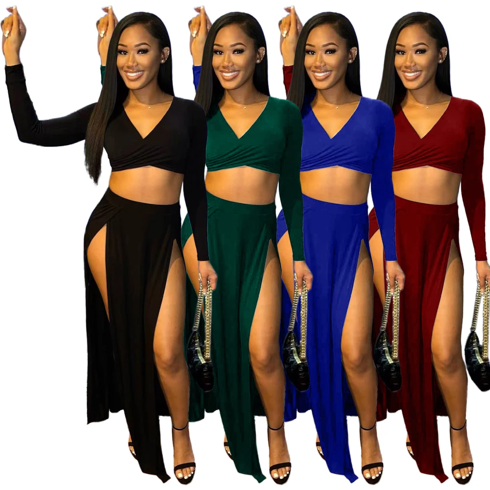 Foma 2023 solid color two piece set women clothing crop top skirt and top set for women skirt set
