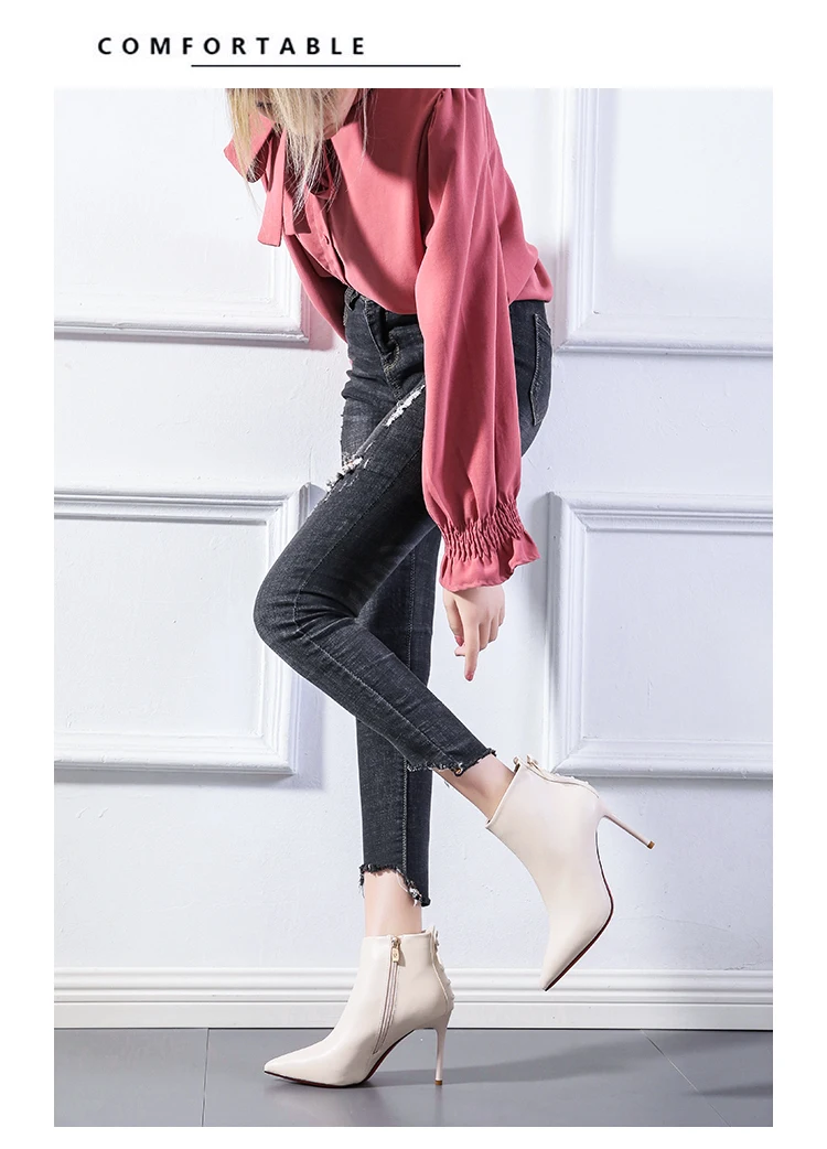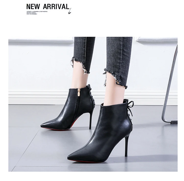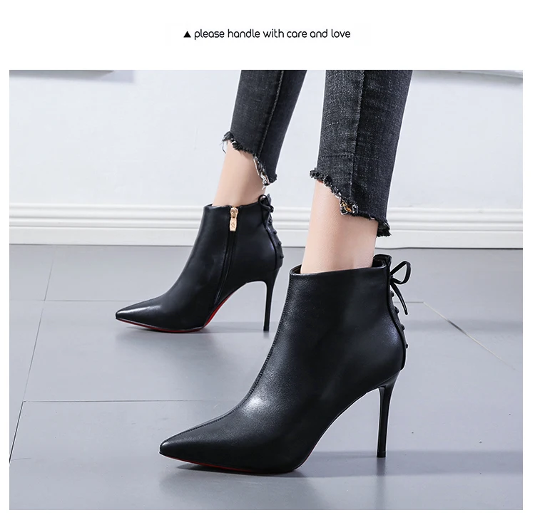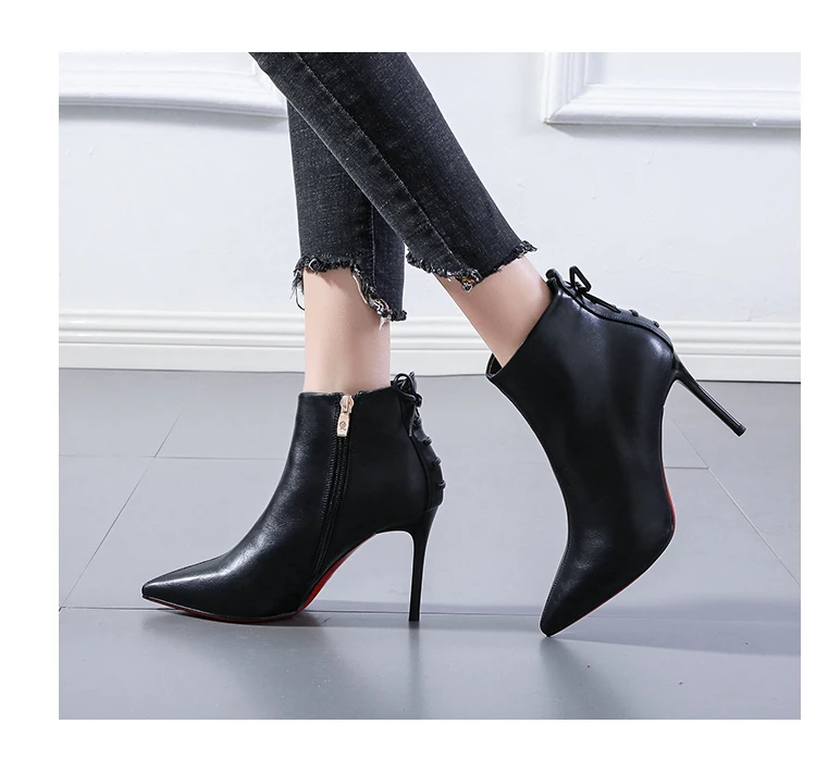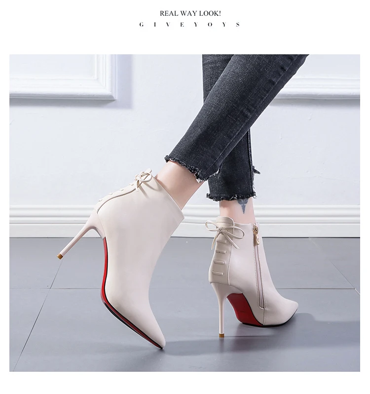 French girls bow short boots net red pointed off white Martin boots women's 21 winter new thin heels