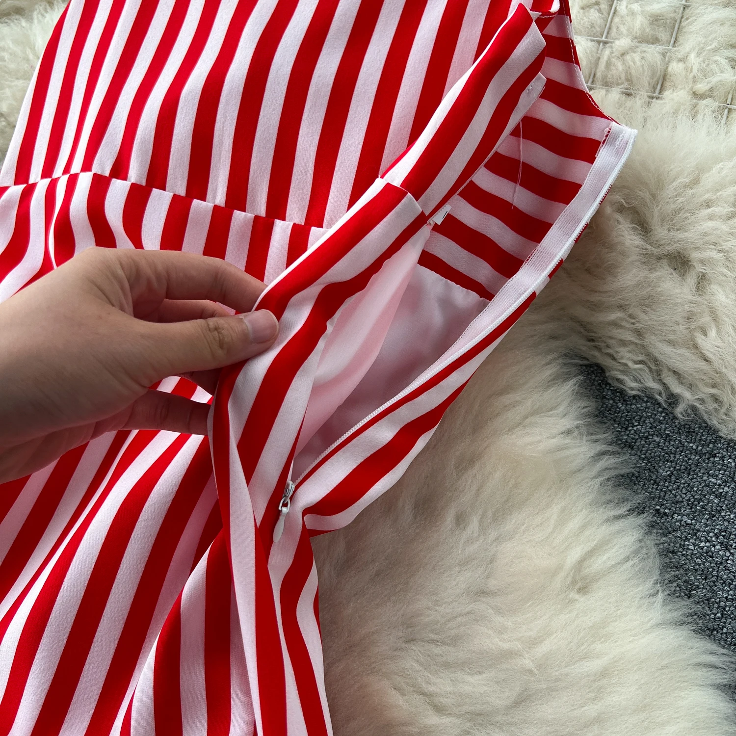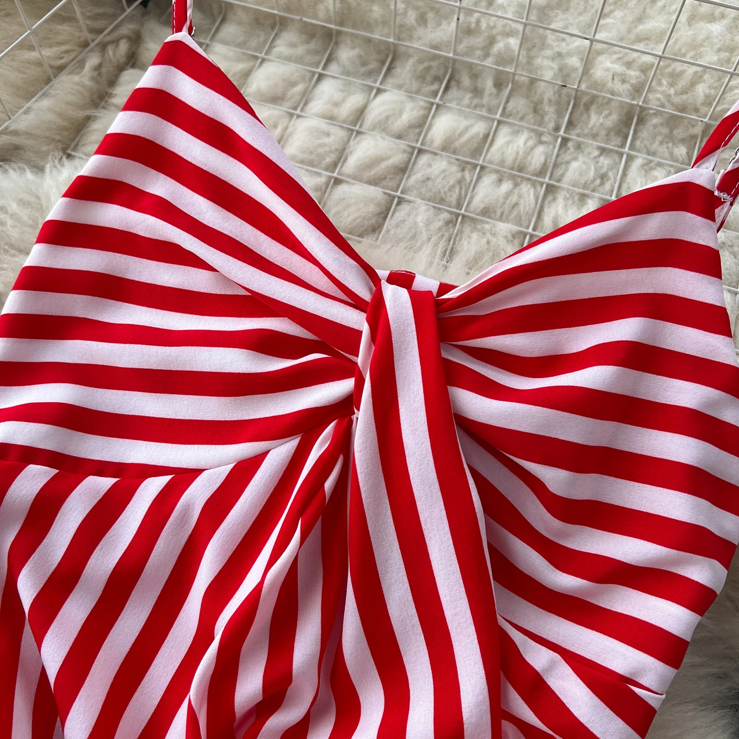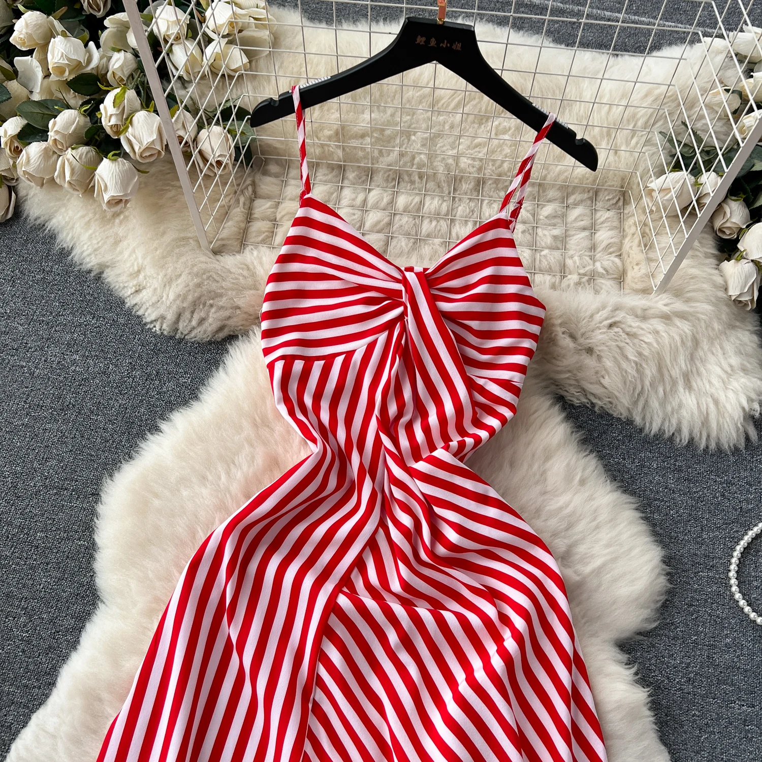 French Niche Design Sense Knot Waist Striped Halter Dress Feminine Slimming Super Fairy Holiday Beach Dress