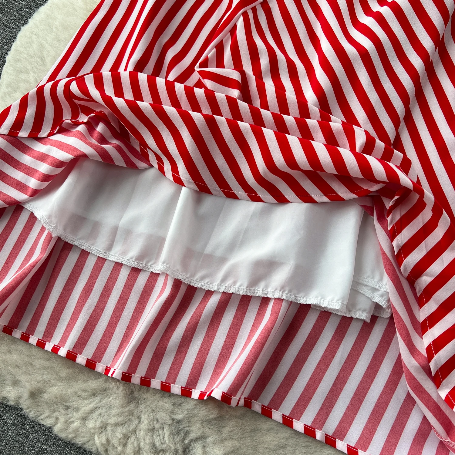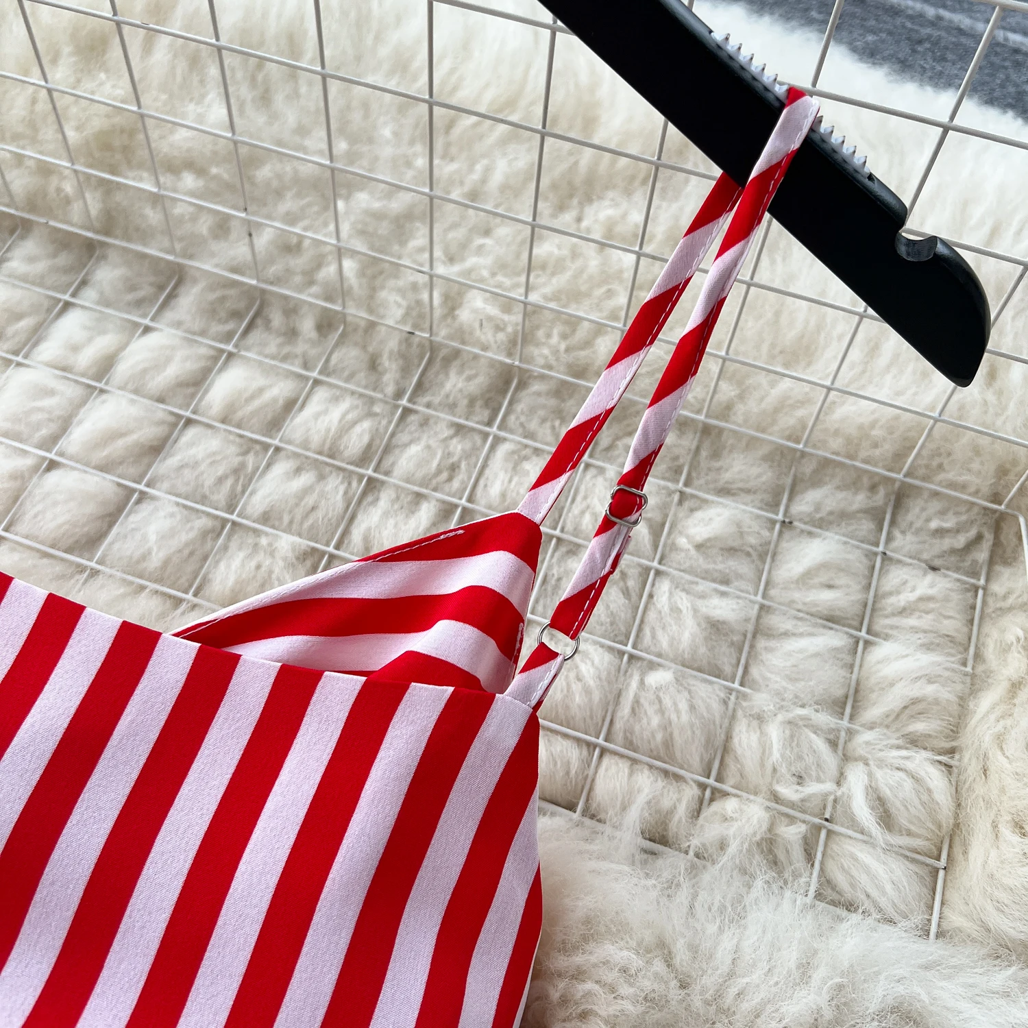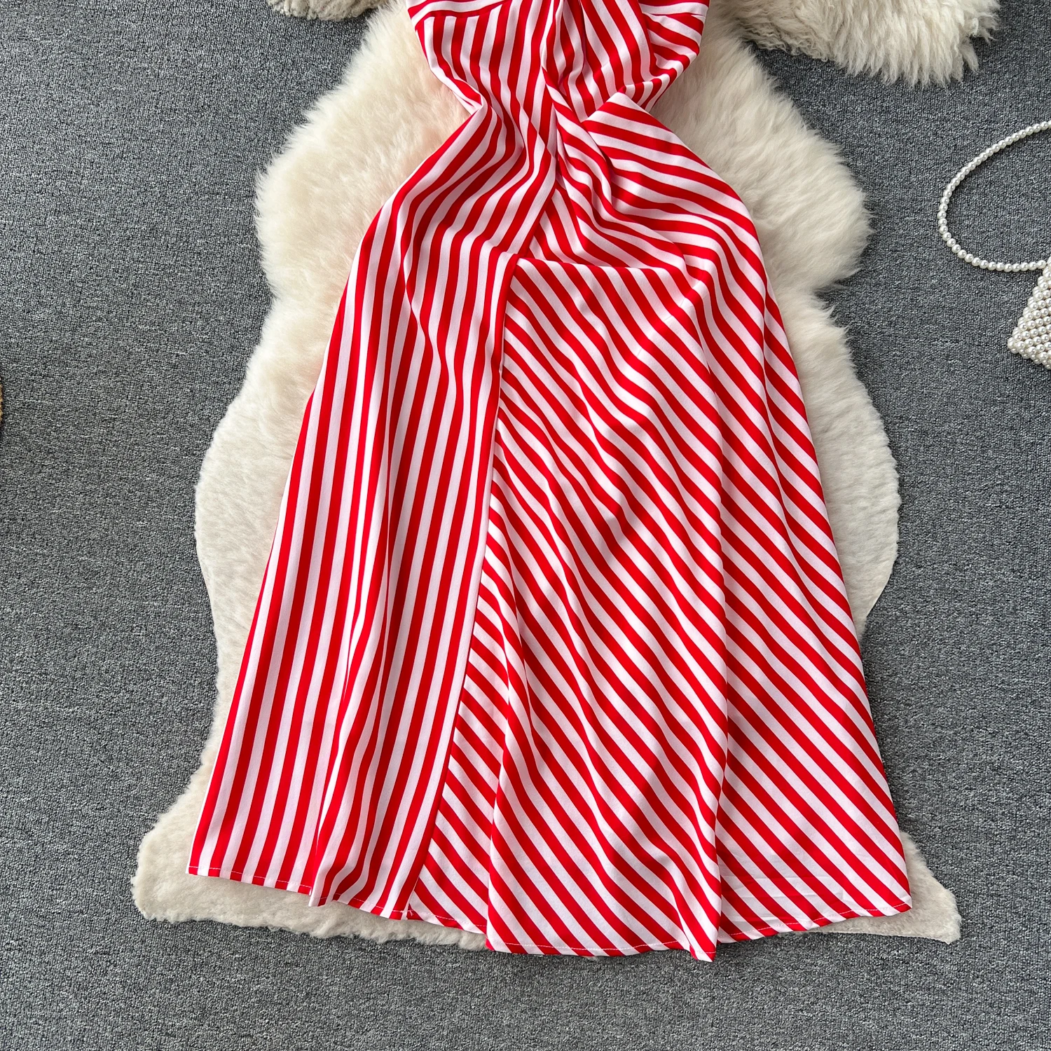 French Niche Design Sense Knot Waist Striped Halter Dress Feminine Slimming Super Fairy Holiday Beach Dress