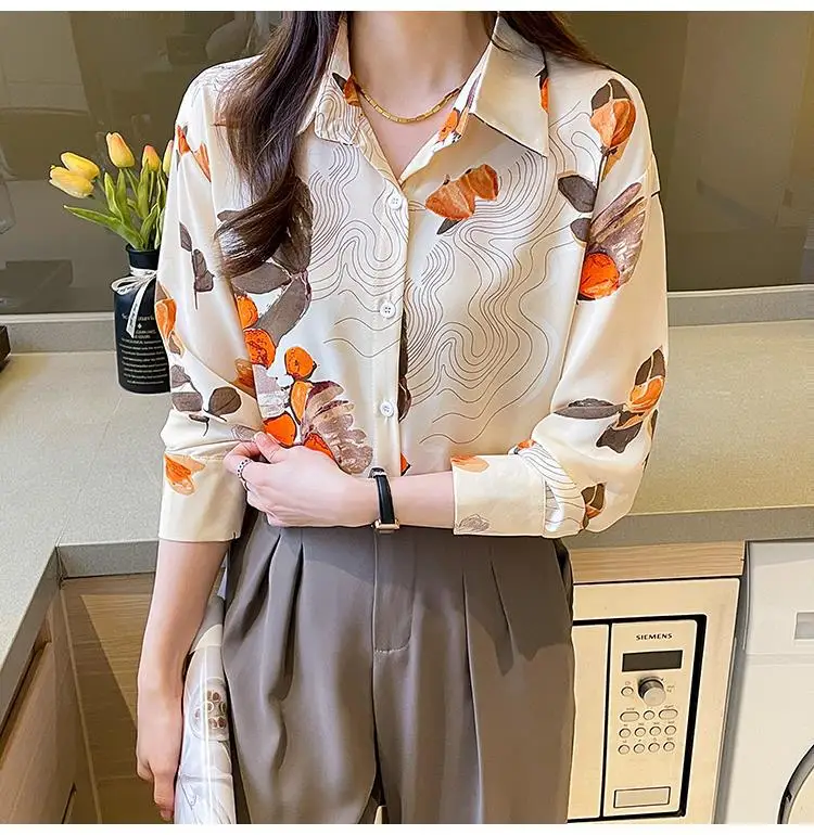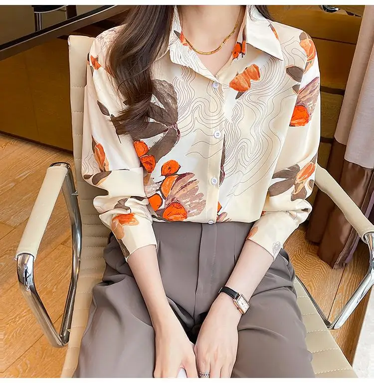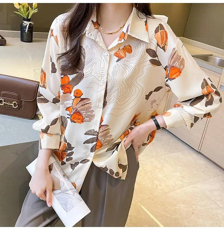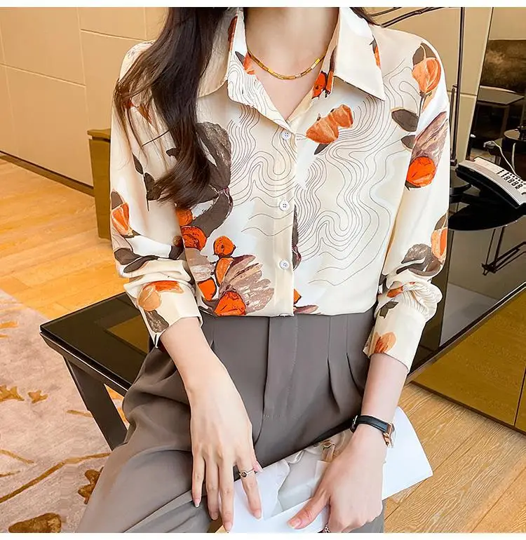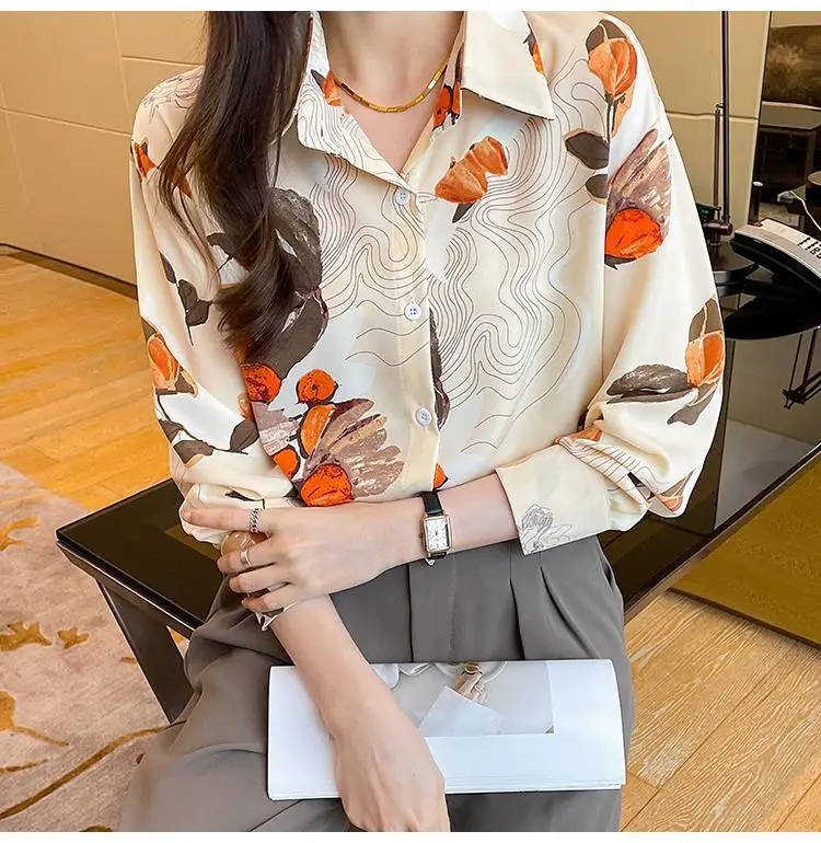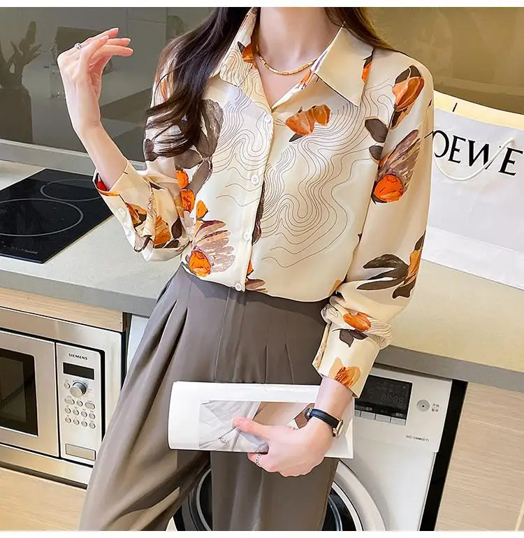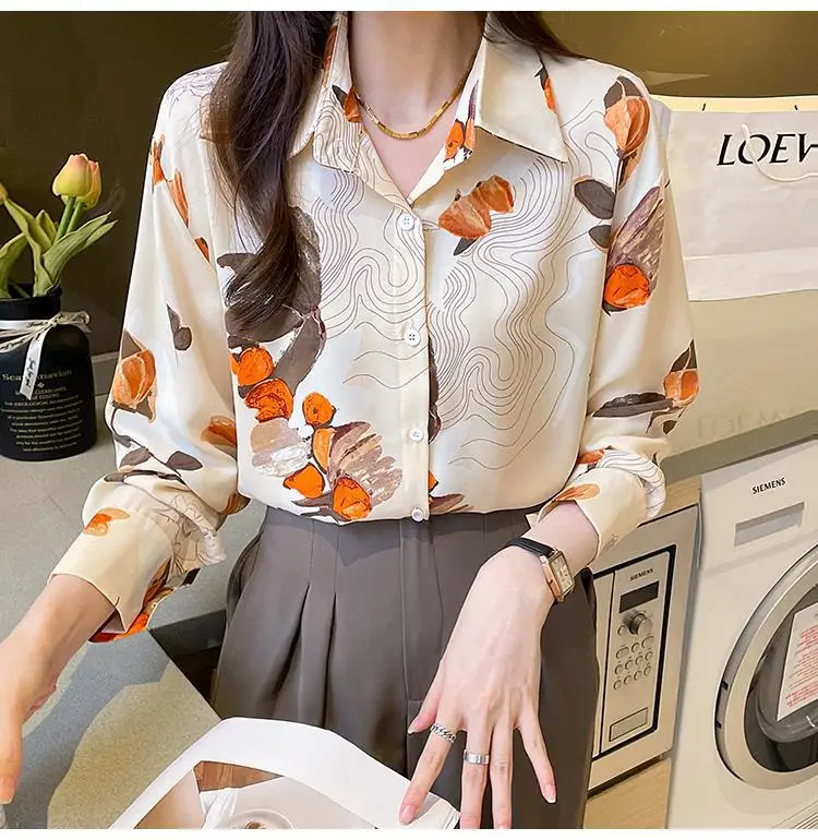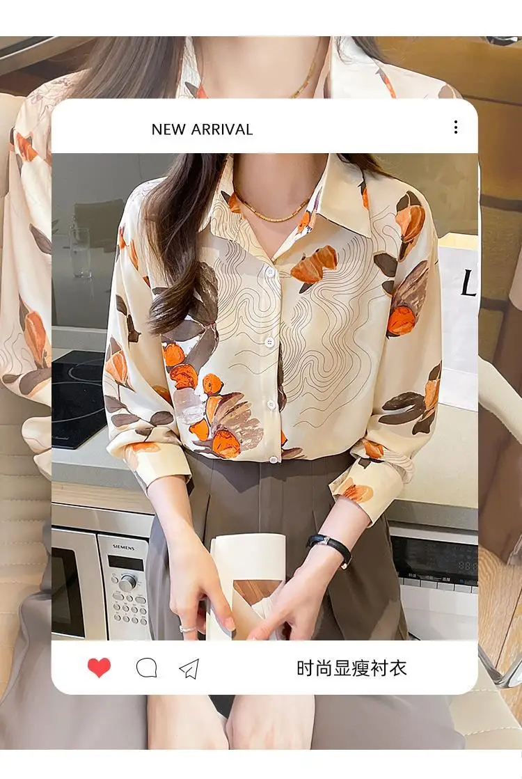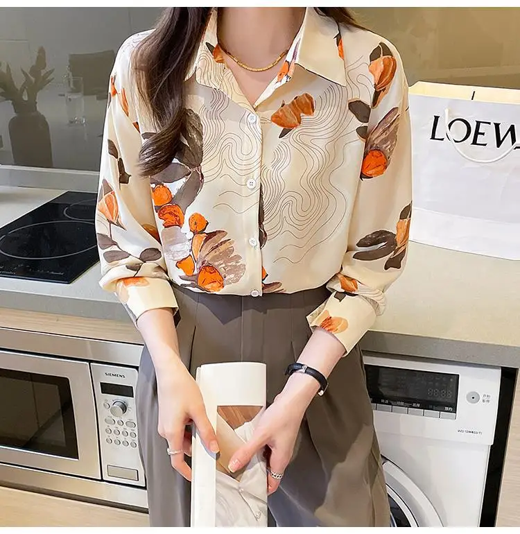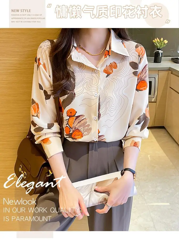 French Printed Long Sleeve Shirt Women'S 2024 Autumn New Style Temperament Design Shirt Top Chiffon New Loose
