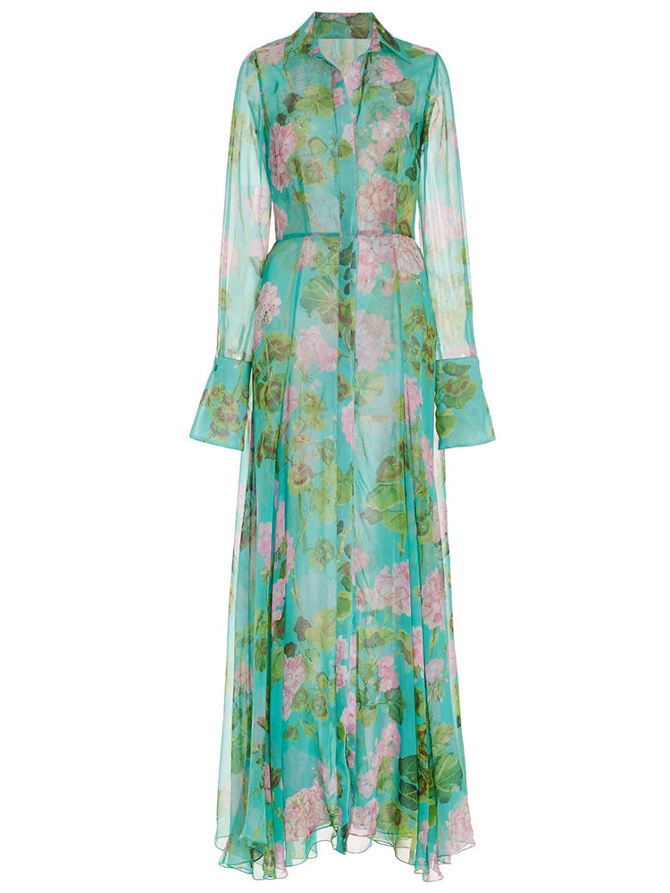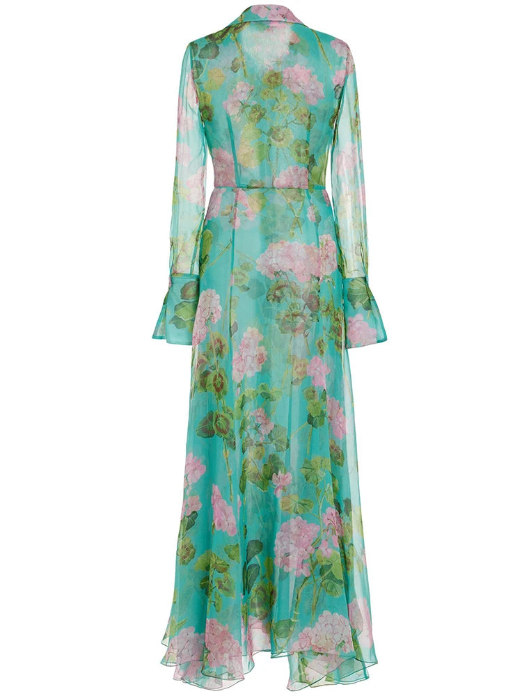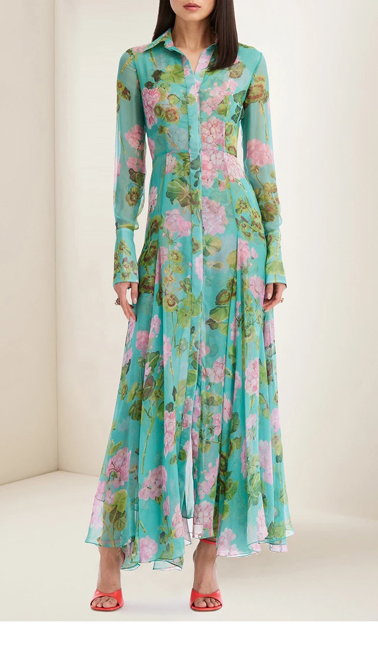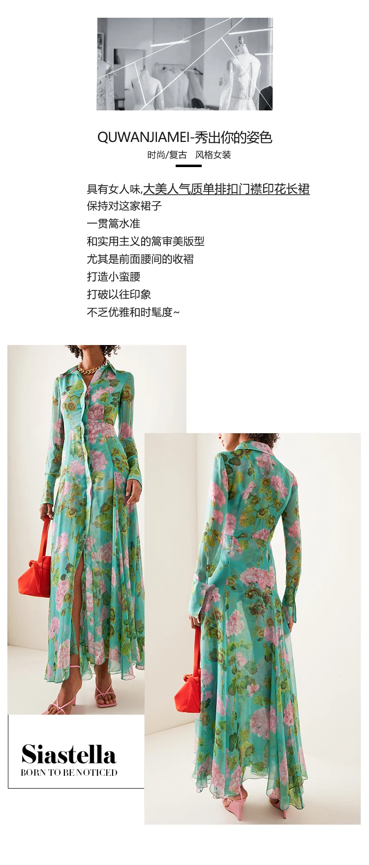 French Romantic Dress 2023 Spring New High-End Temperament Printed Single-Breasted Dress Vacation Style Feminine Long Dress