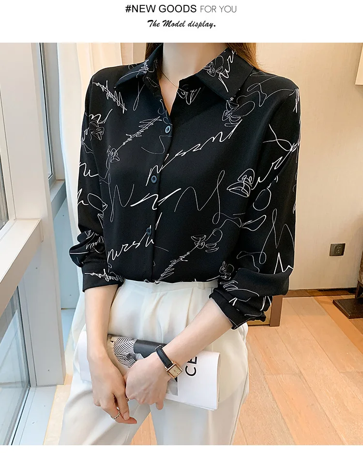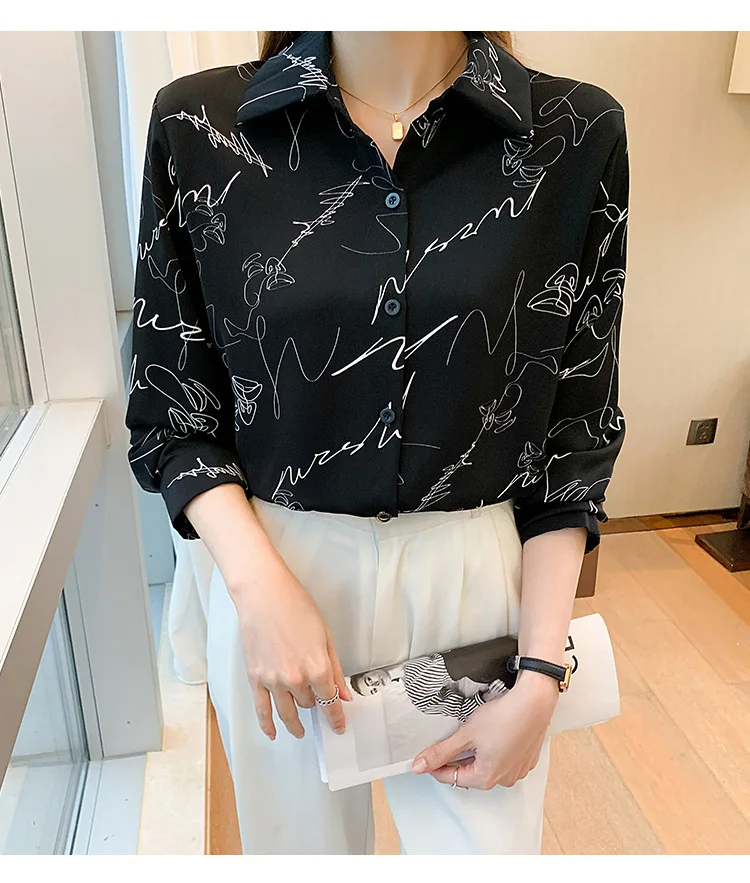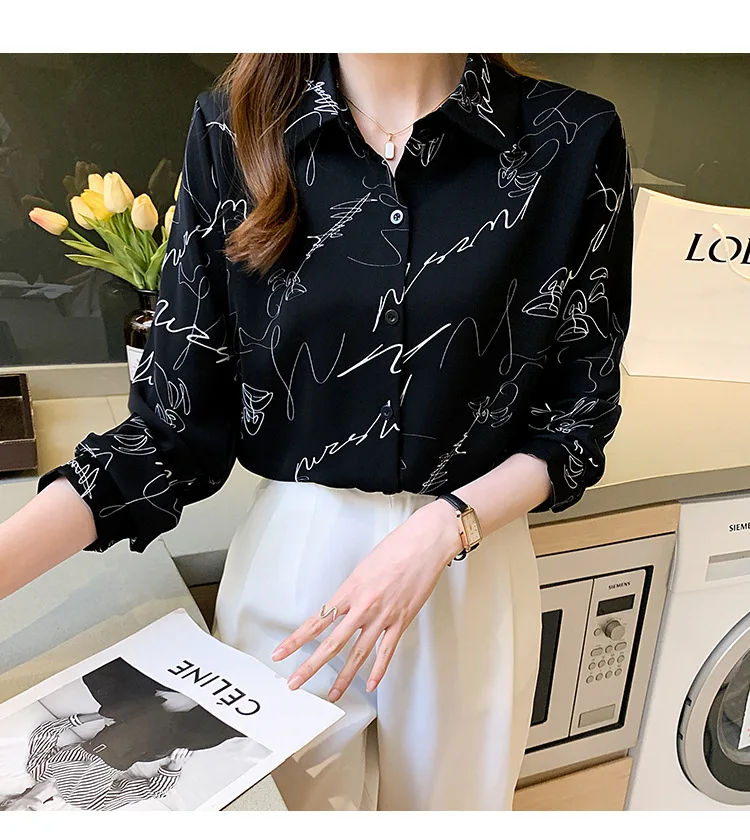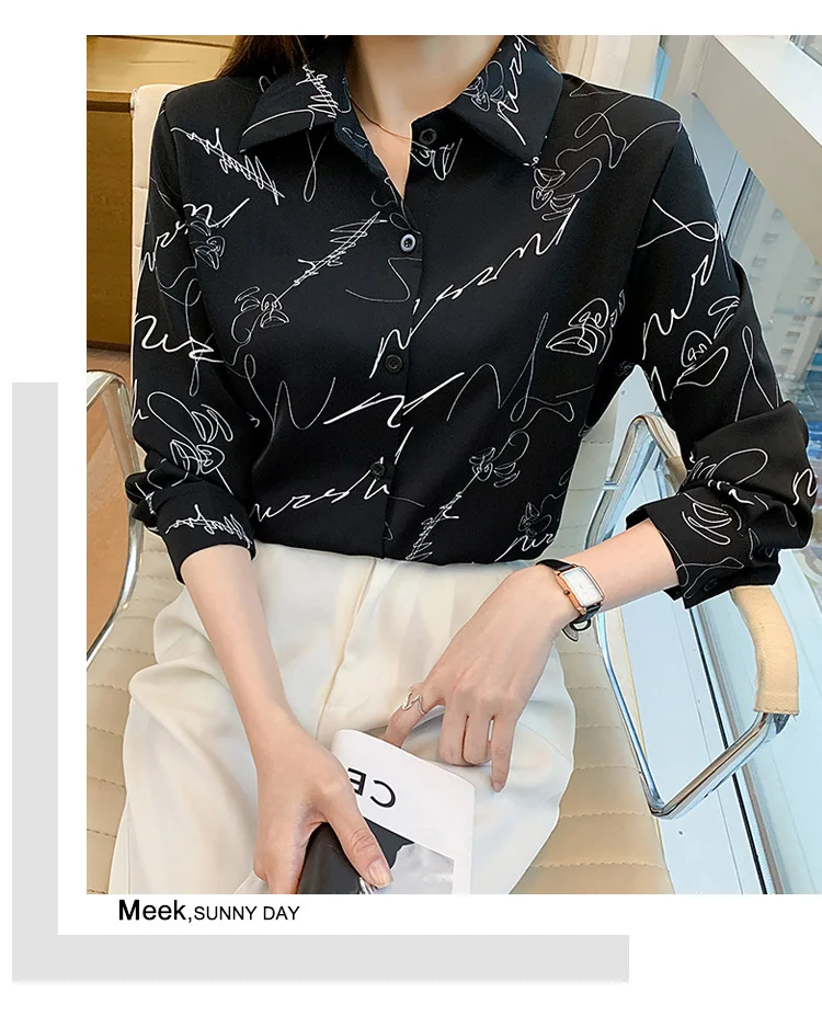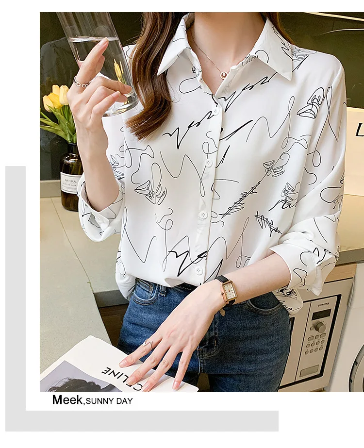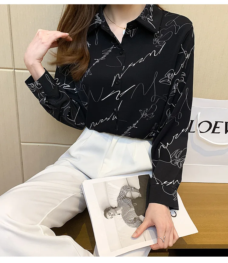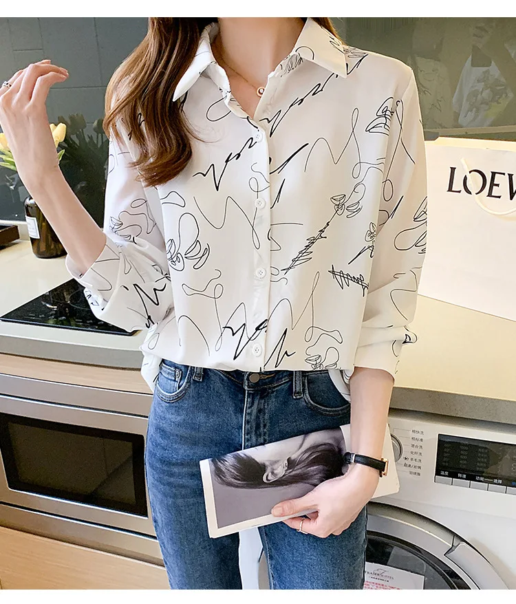 French Wash Graffiti Printed Shirt Top Women'S Shirts New White Loose Long Sleeve Shirt Autumn 2024 New
