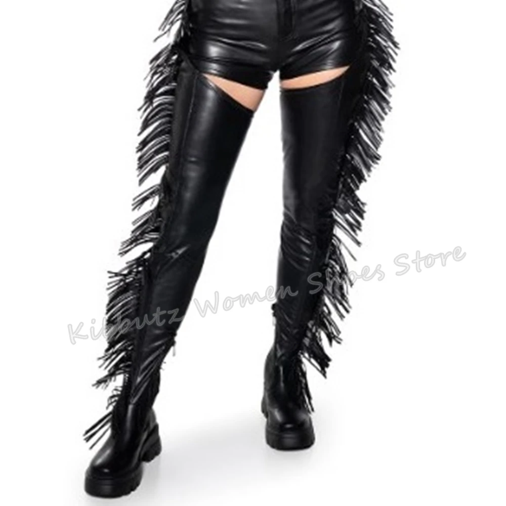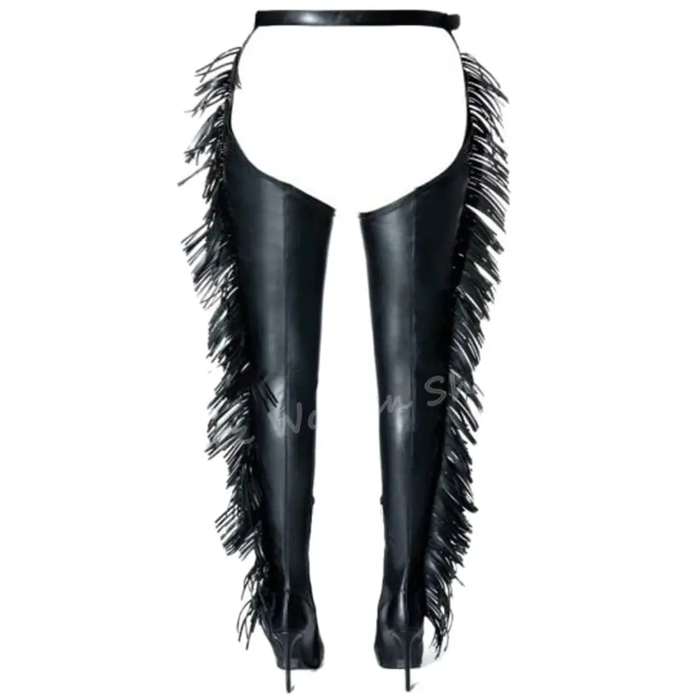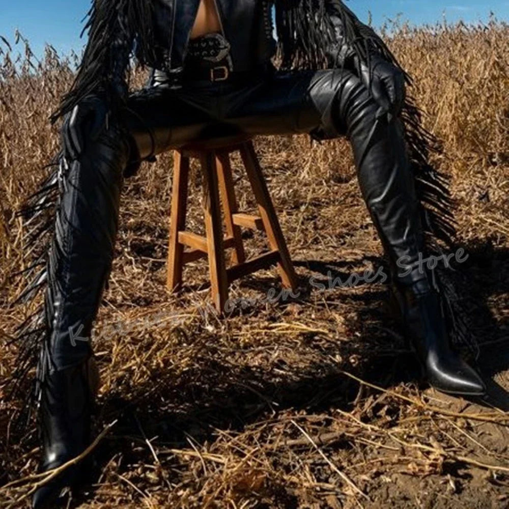 Fringe Belted Thigh High Boot Over The Knee Pointed Toe Thin Heel Side Zipper Solid Color Suede Fashion Novelty Concise Sexy New
