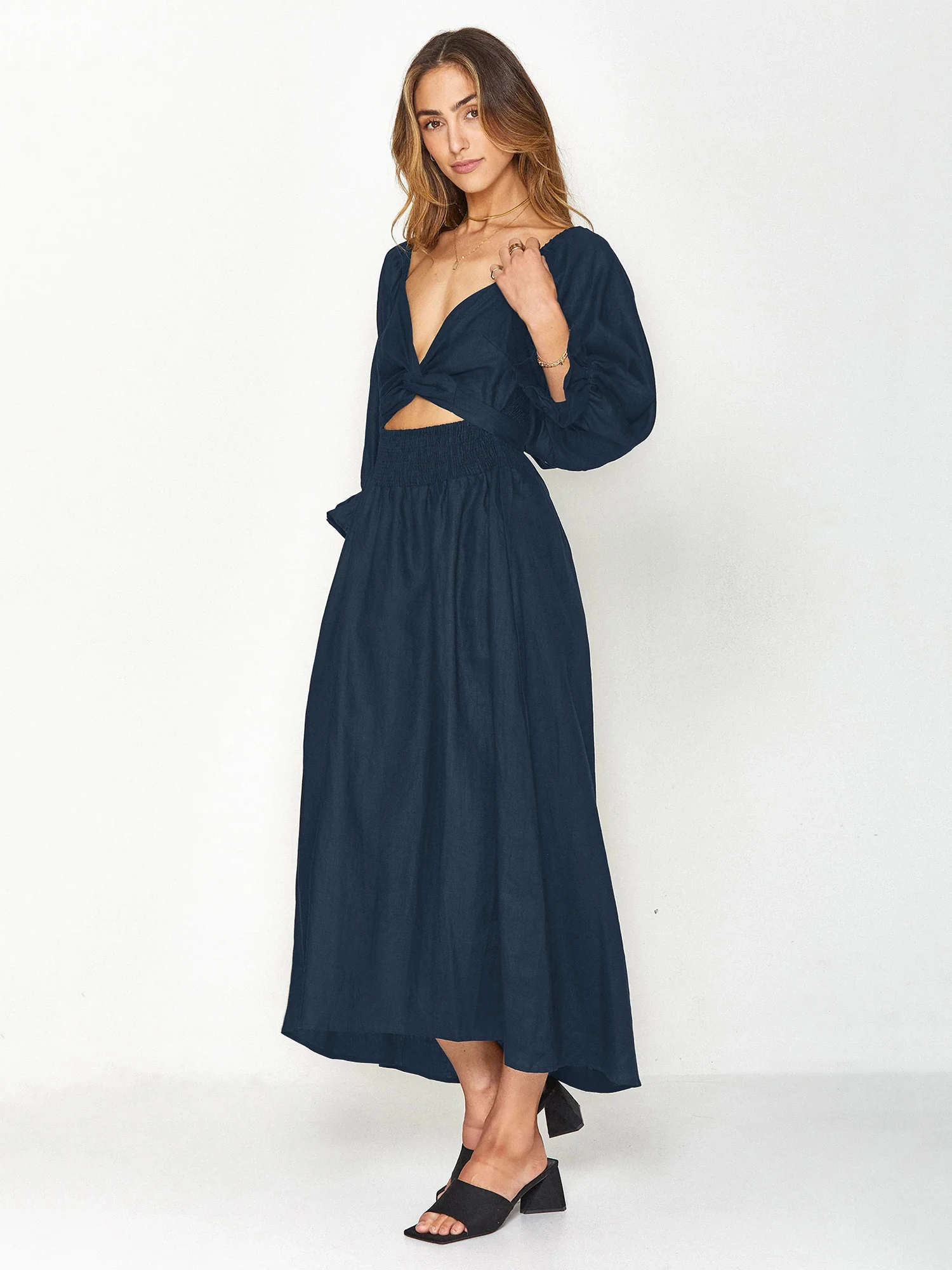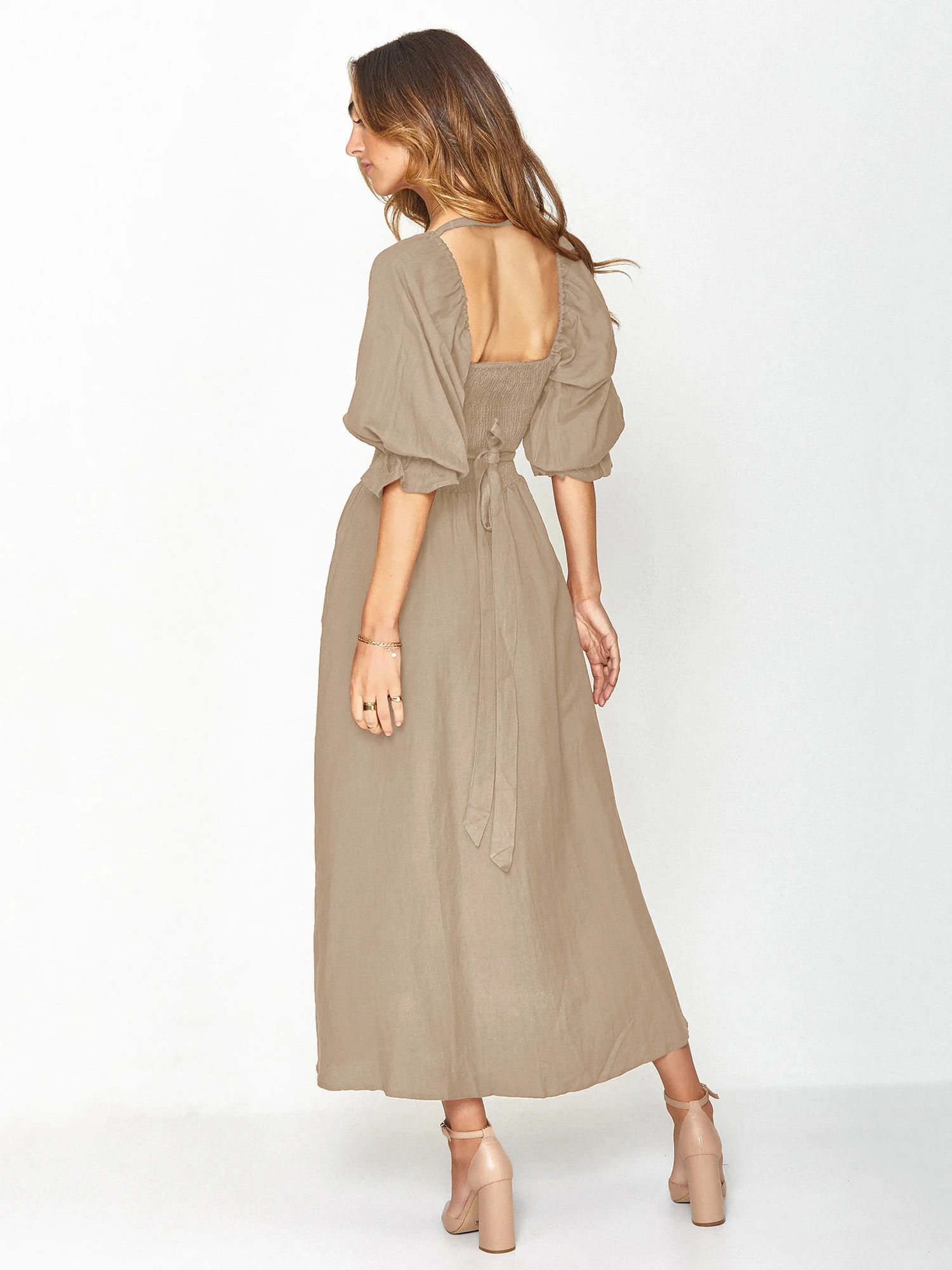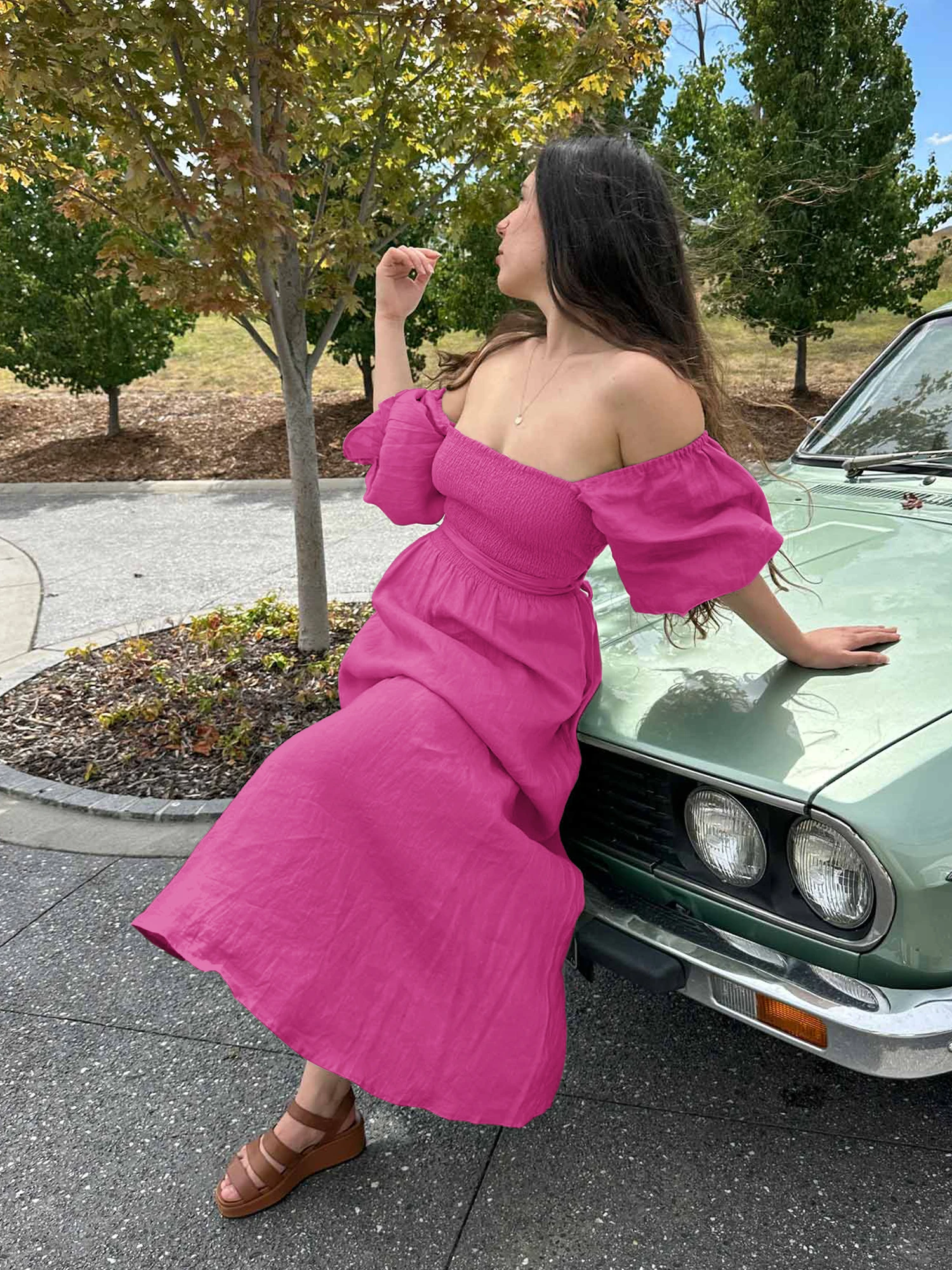 Front And Rear Reversible Off Shoulder For Pink Midi Woman Summer Casual Long Dresses