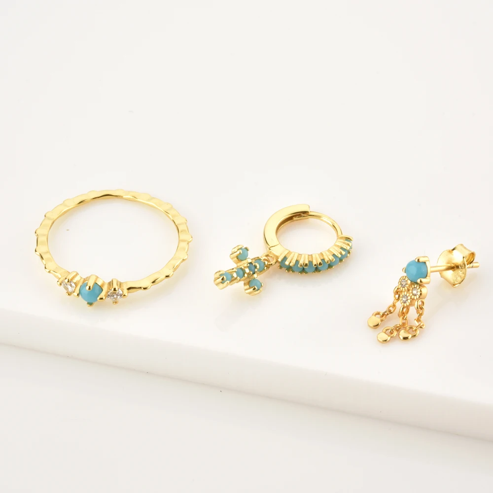 The Specification of FUAMAY Western Turquoise Jewelry Sets Natural Blue Turquoise Stone Cross Statement Necklace Earrings Rings