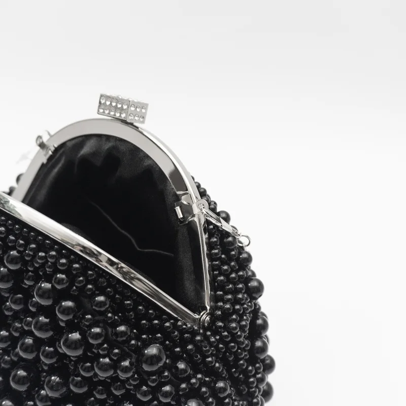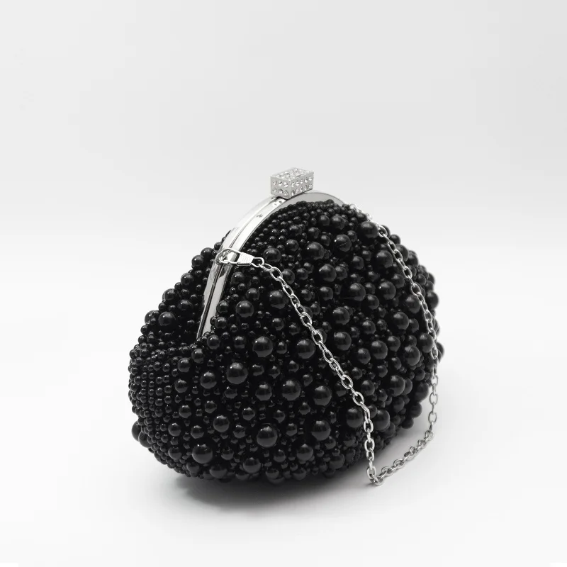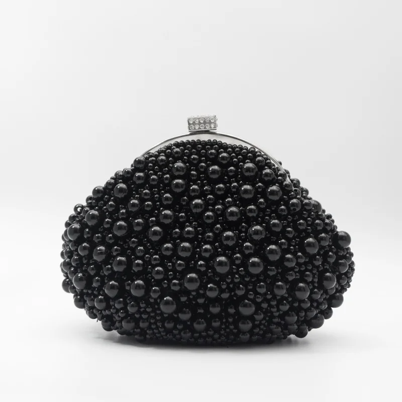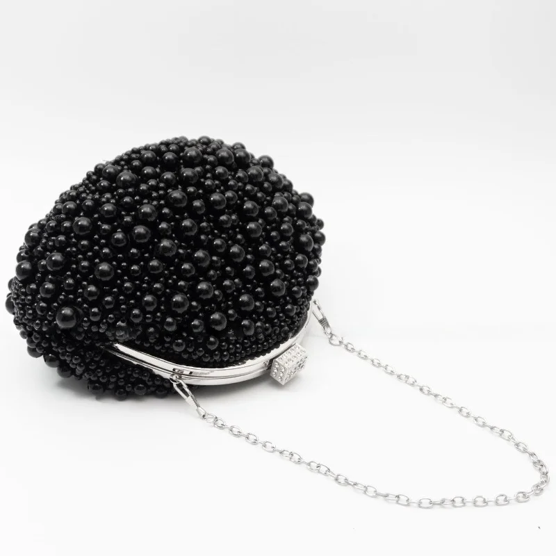 Full Black Pearls Evening Clutch Bags for Women Luxury Designer Mini Beading Handbags Chain Shoulder Bag Tote Mini Female Purses