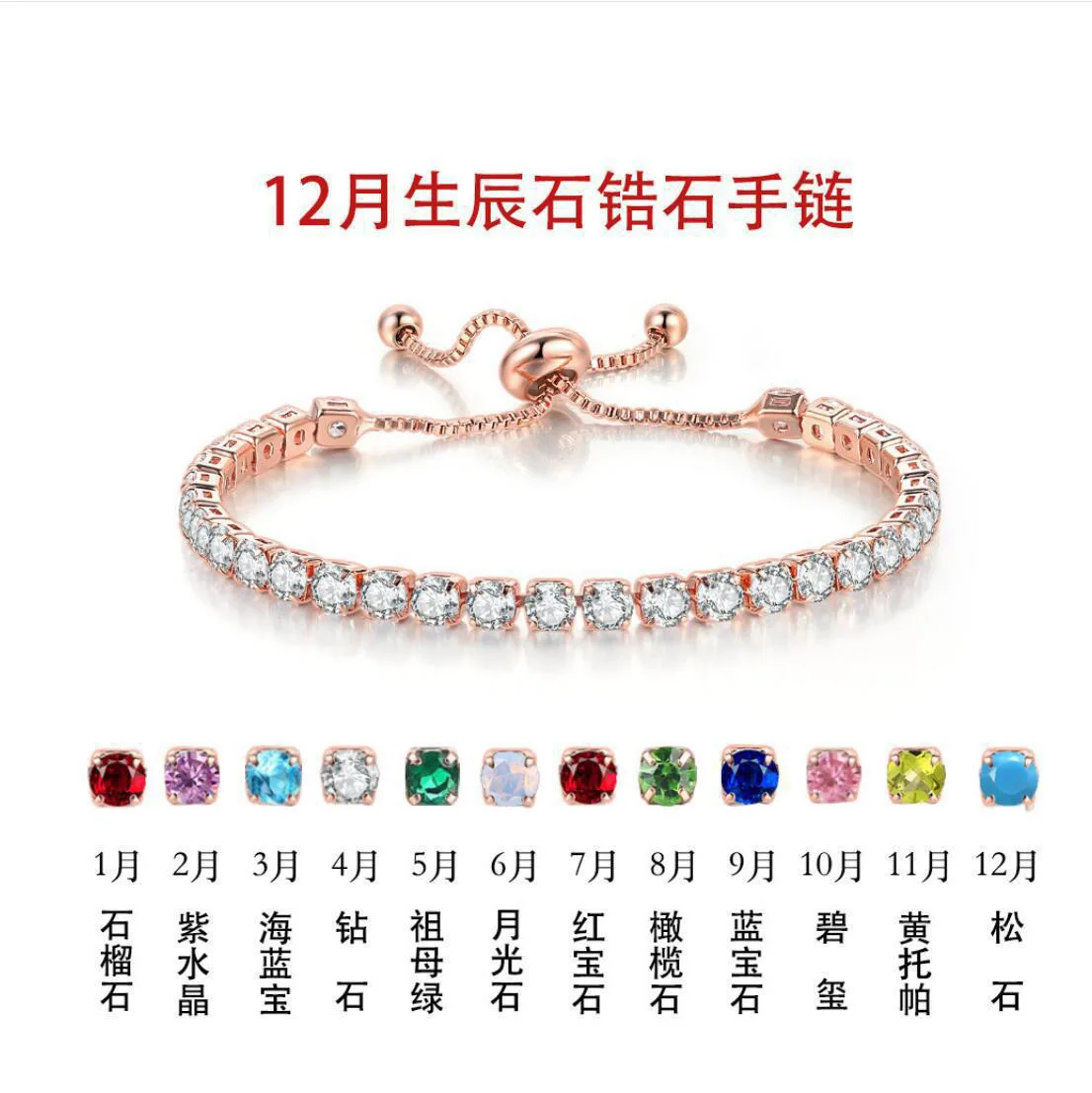 Full Diamond Adjustable Bracelet Popular 4mm Round Zircon Single Row Crystal Bracelet Wholesale for Women