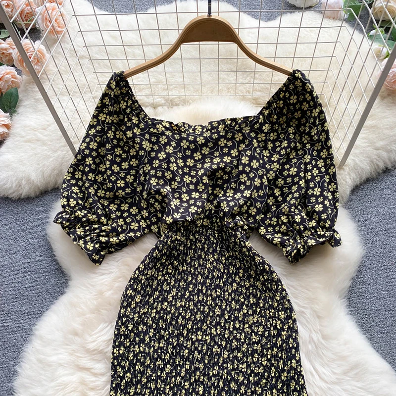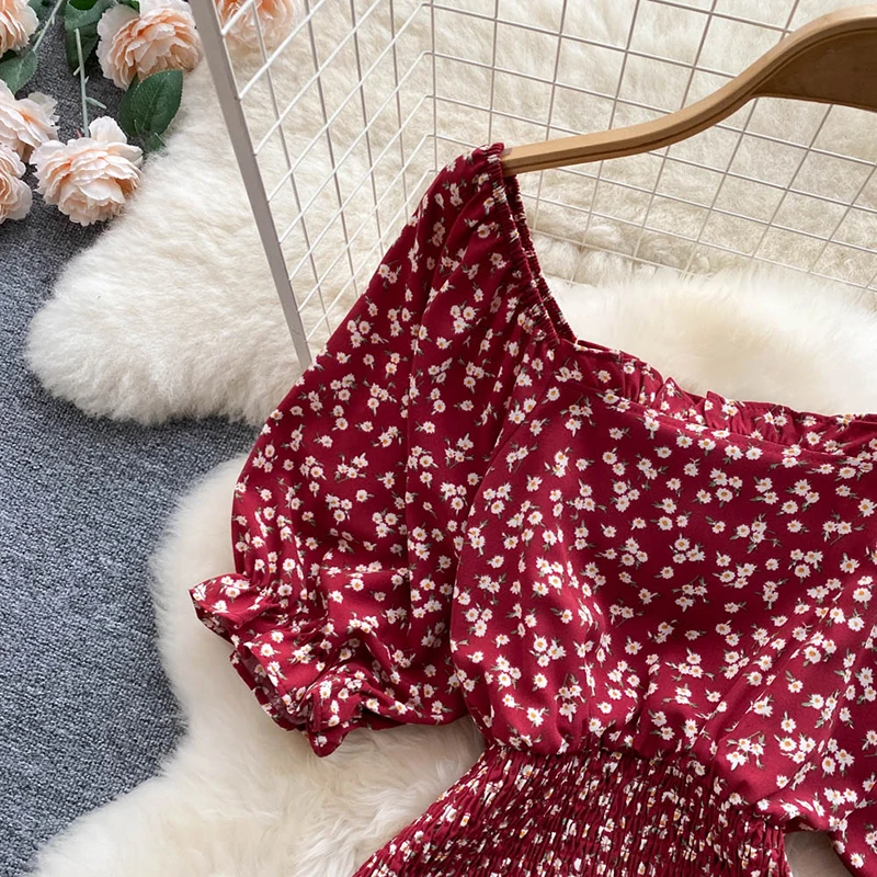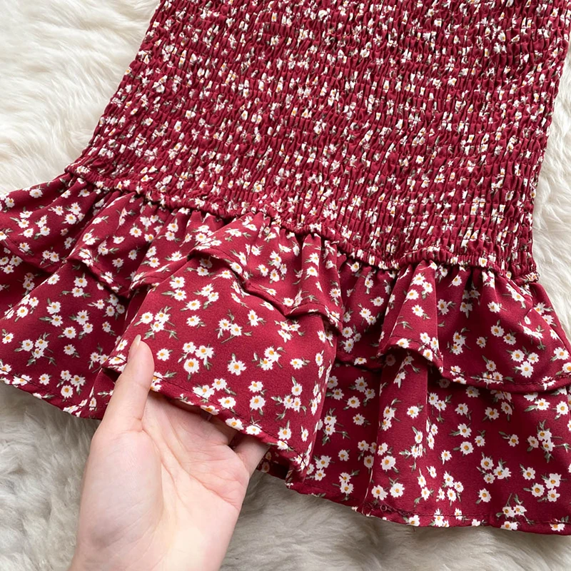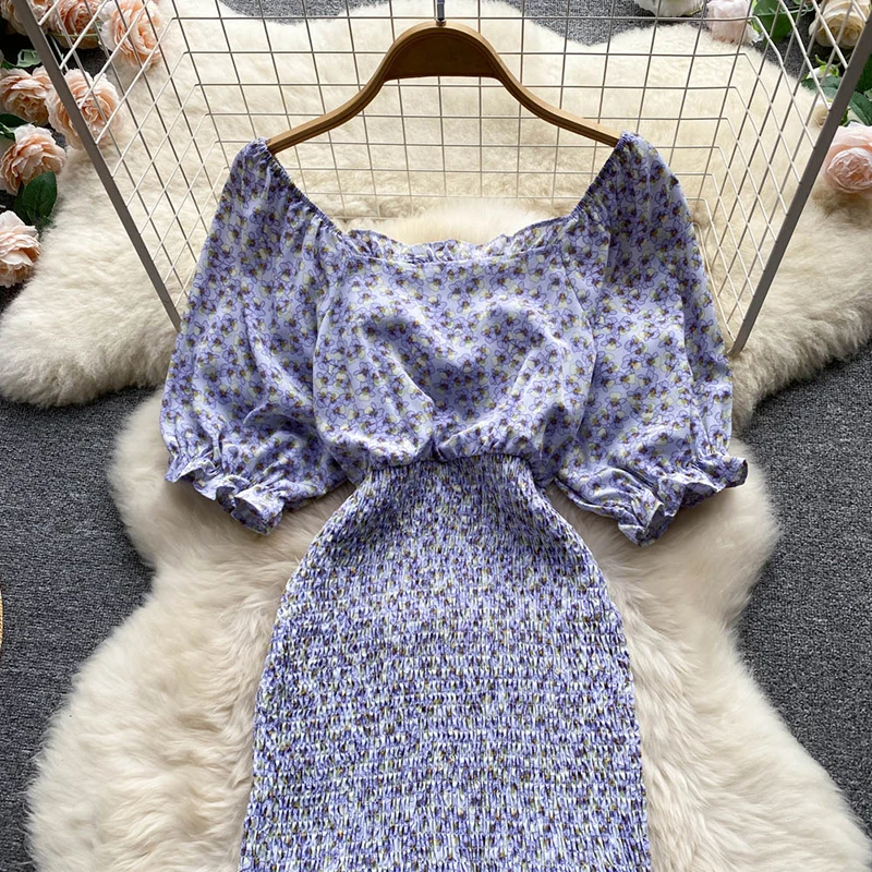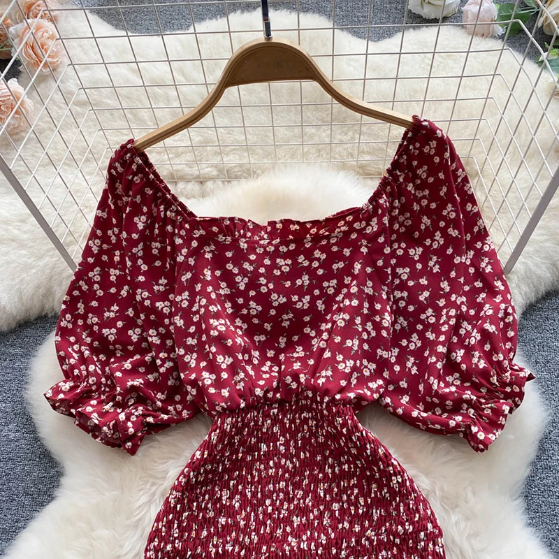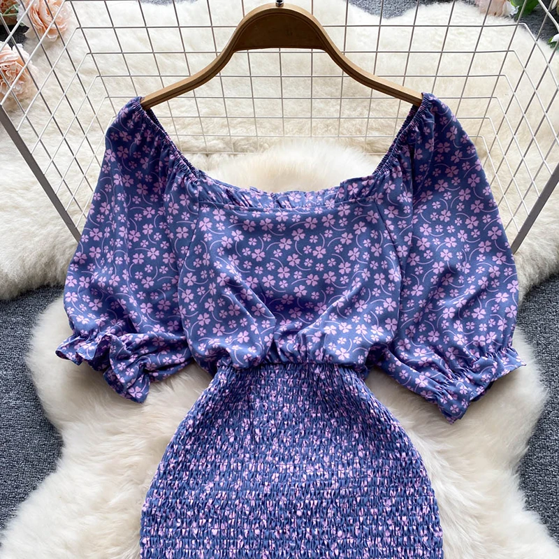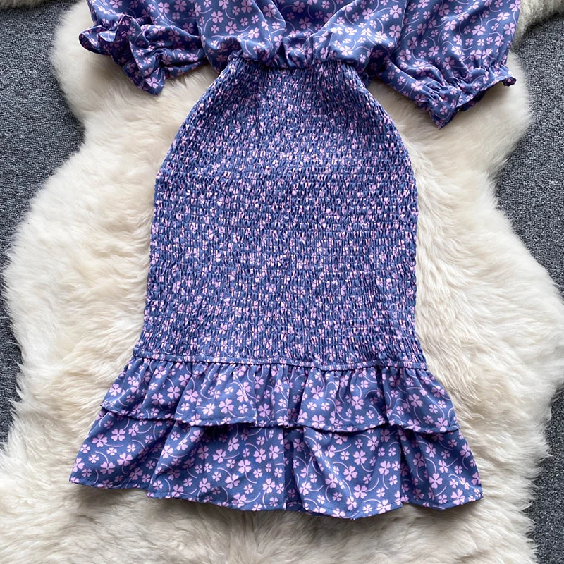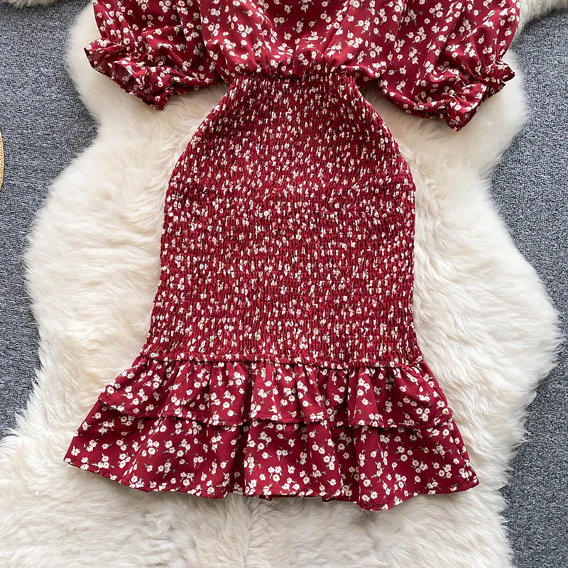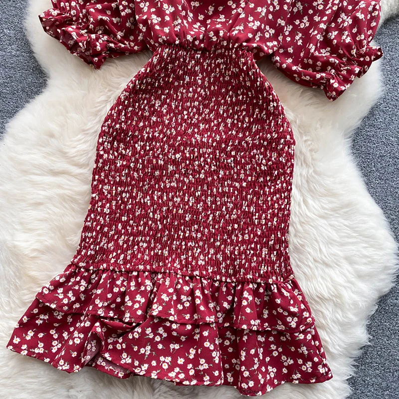 Gentle Wind Square Collar Mermaid Dress Women Elegant Sexy Pack Hip Summer Chiffon Mini Dresses Ladies Vintage French Casual
