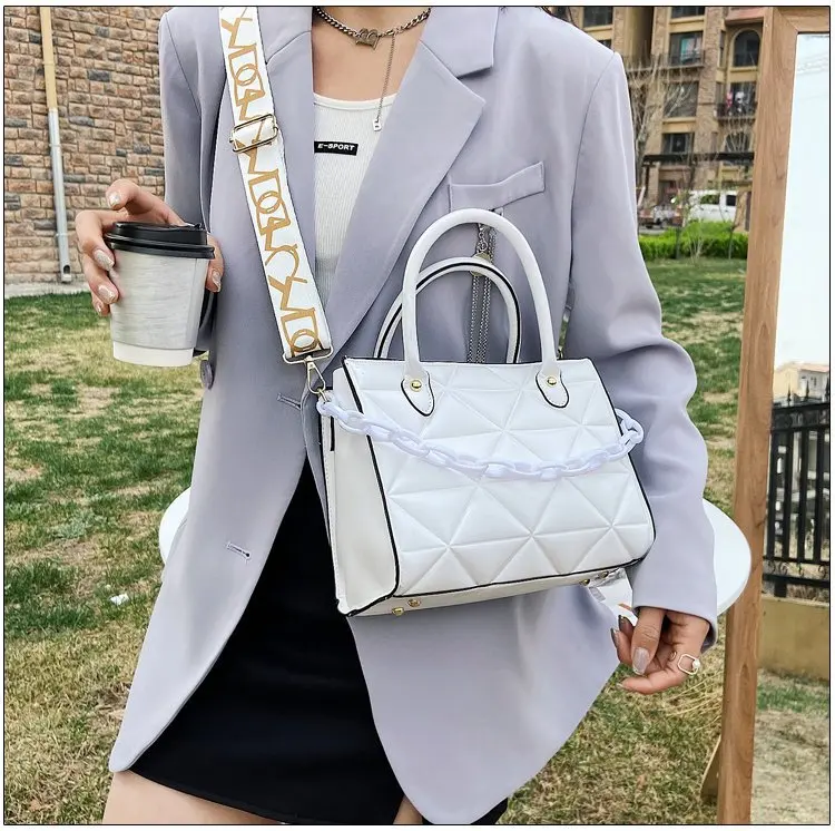 | Modle | Geometric Embossed Handbag Fashion Trendy Luxury Wide Shoulder Strap Women's Single Shoulder Diagonal Brand Bag |