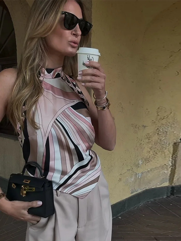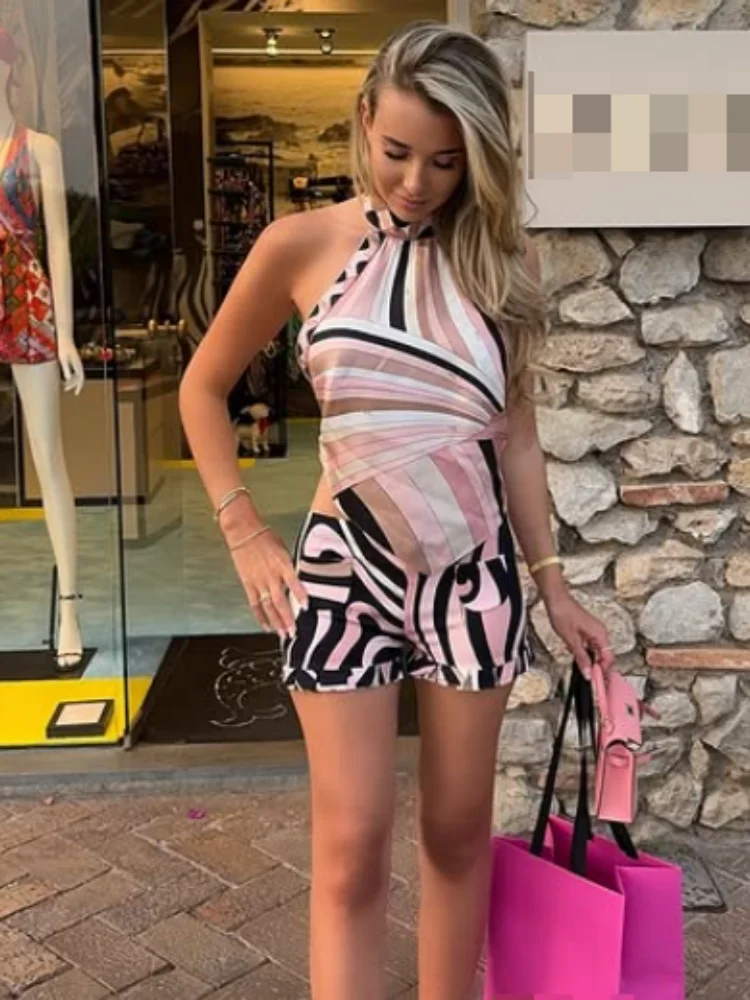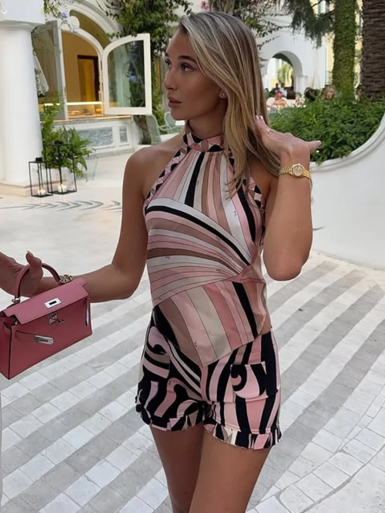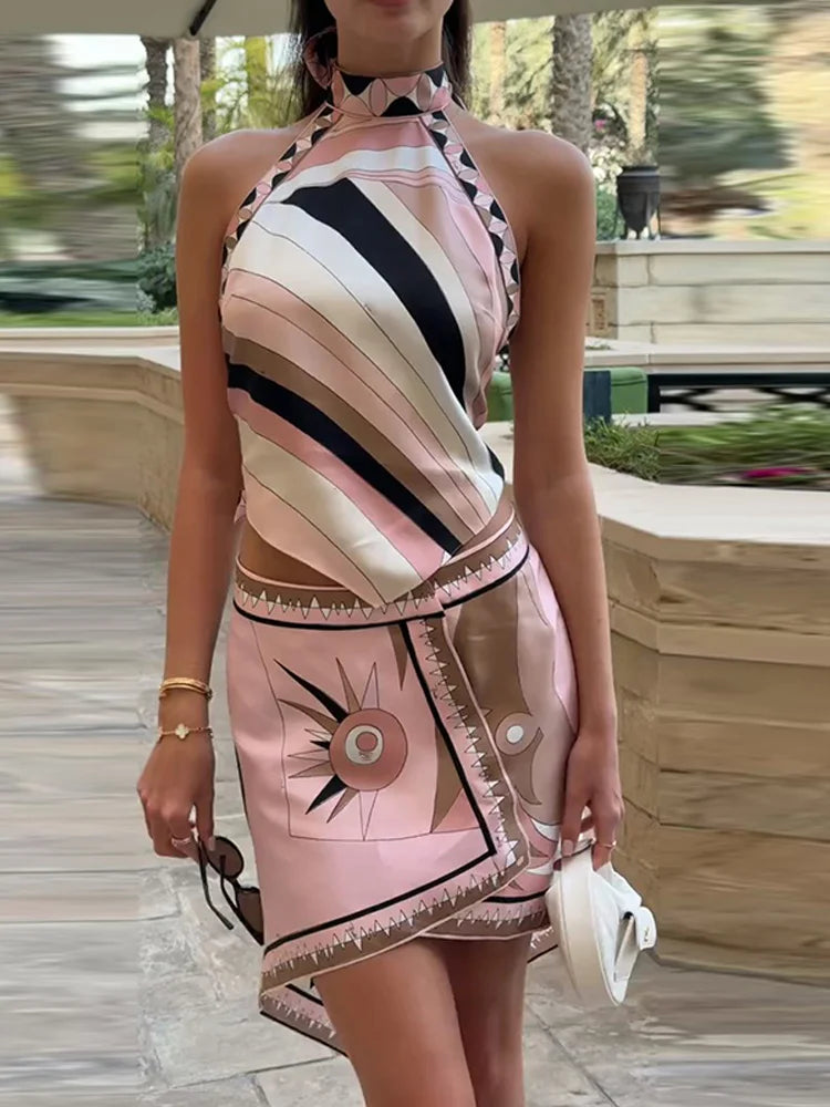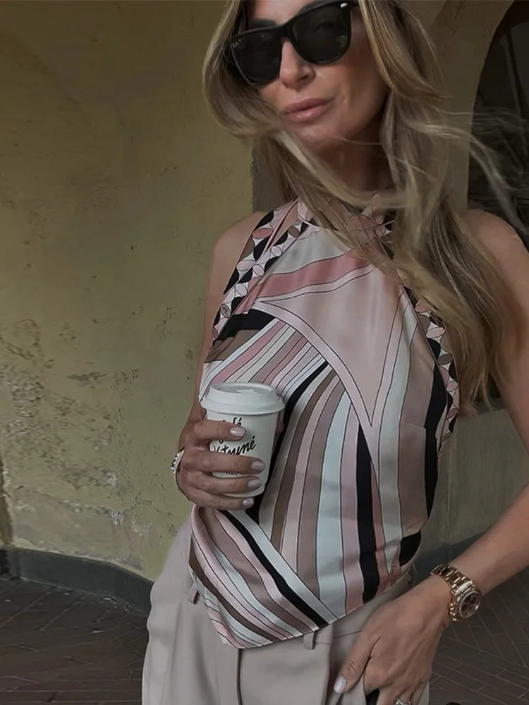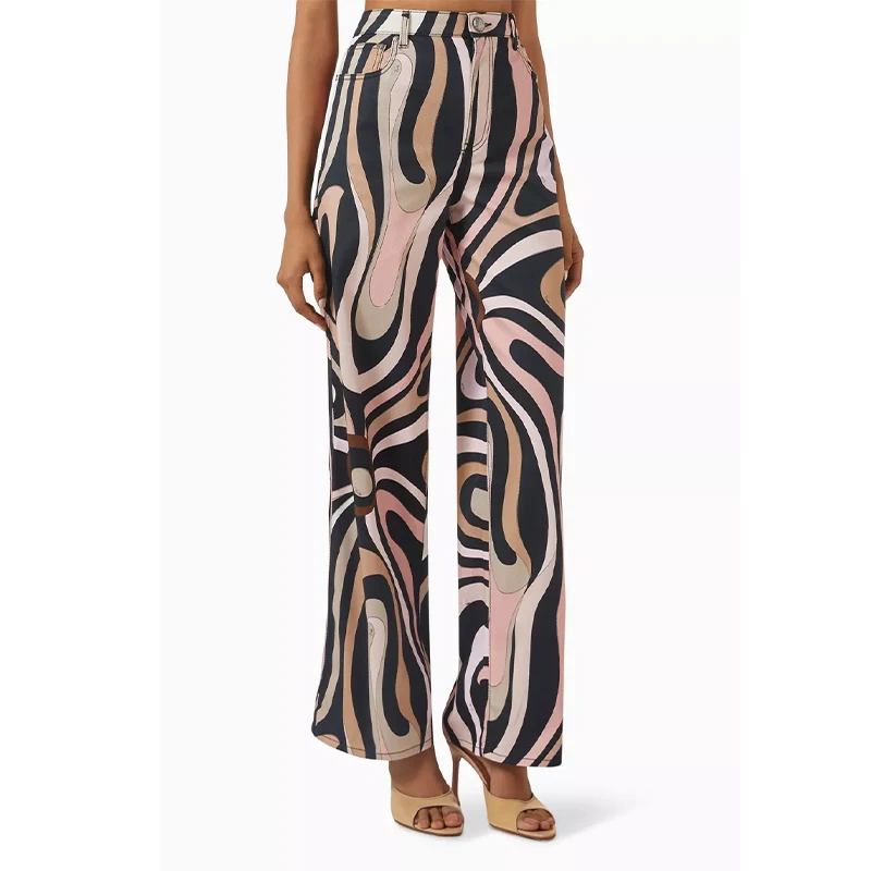 Geometric Print Top pant suits Women two pieces set round neck long sleeve Blouse loose pant Vacation Beach vacation pant outfit