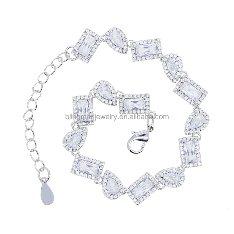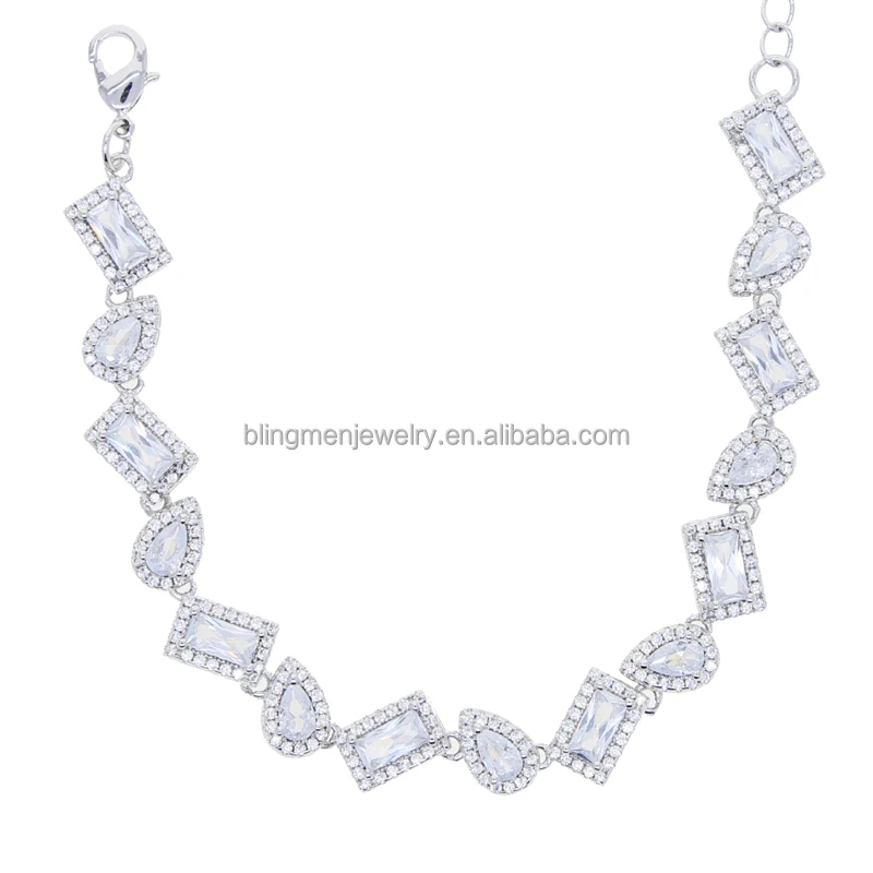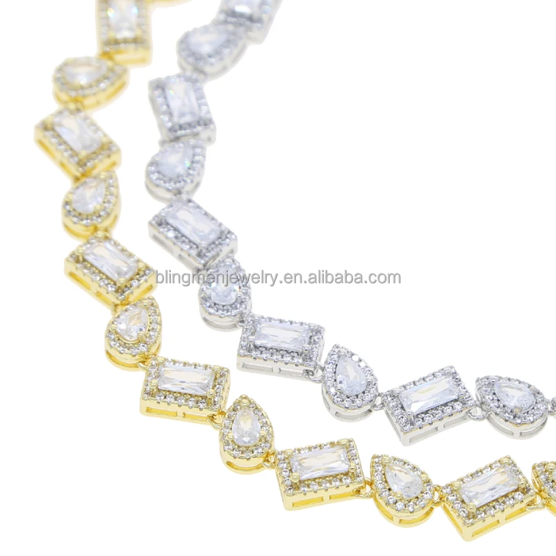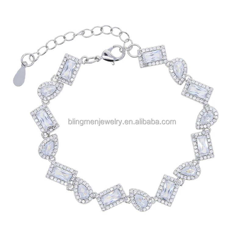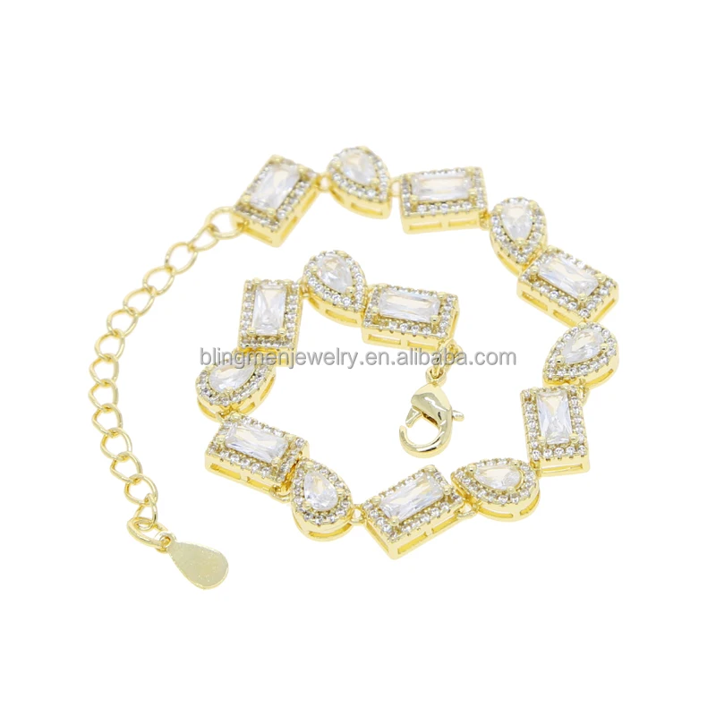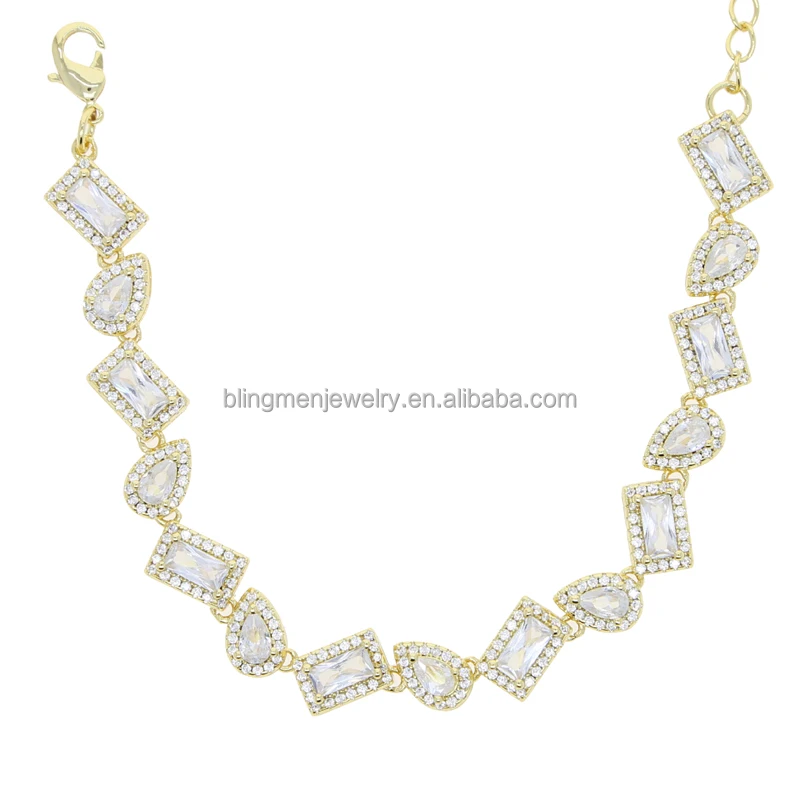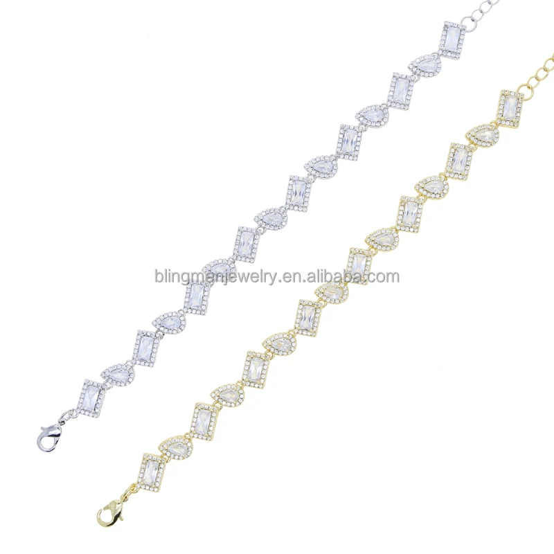 Geometric Tear Drop Rectangle Cubic Zirconia CZ Cluster Tennis Chain Iced Out Women Bracelet