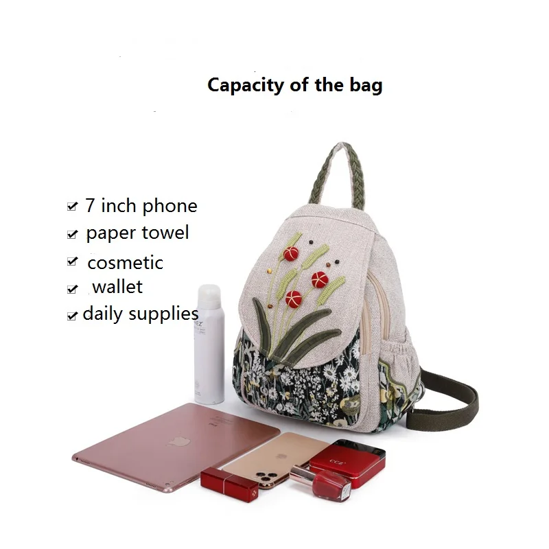 Girl Embroidery Flora Backpack Casual Backpack Travel ladies bag