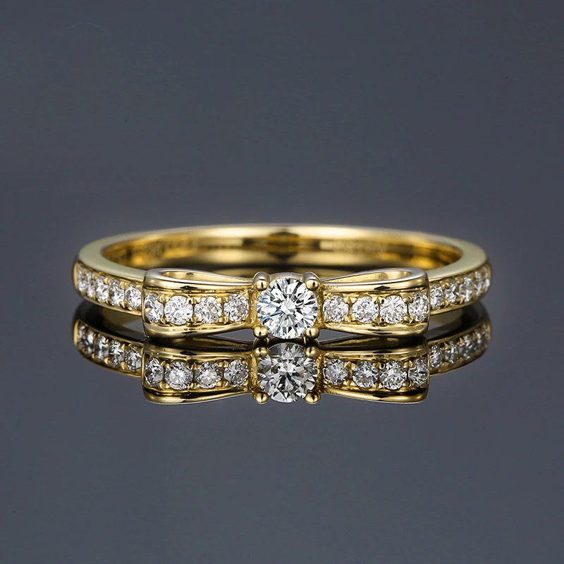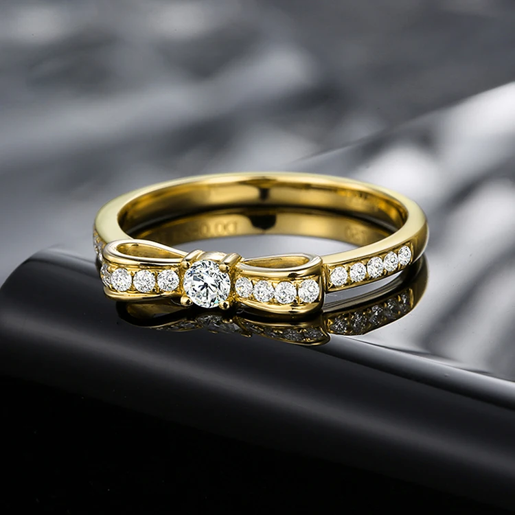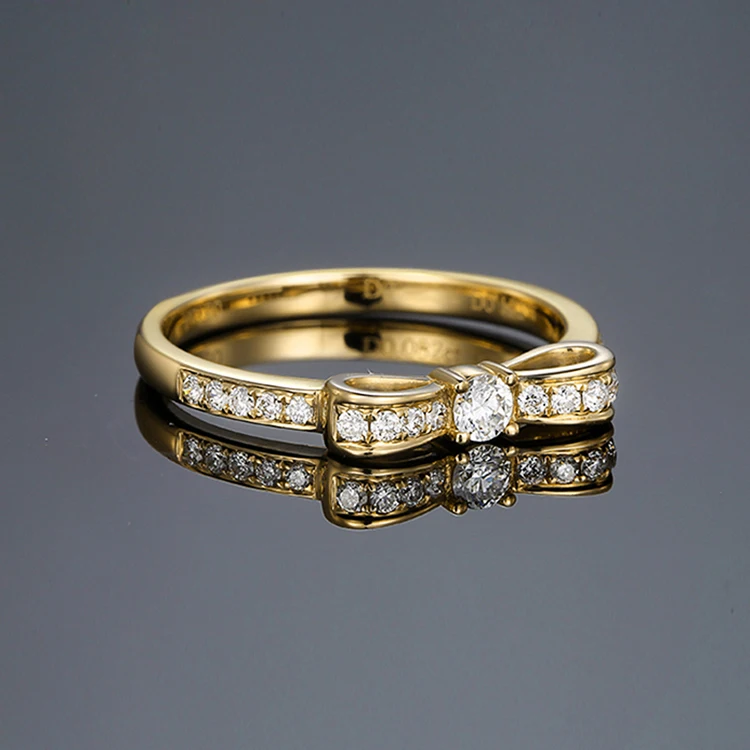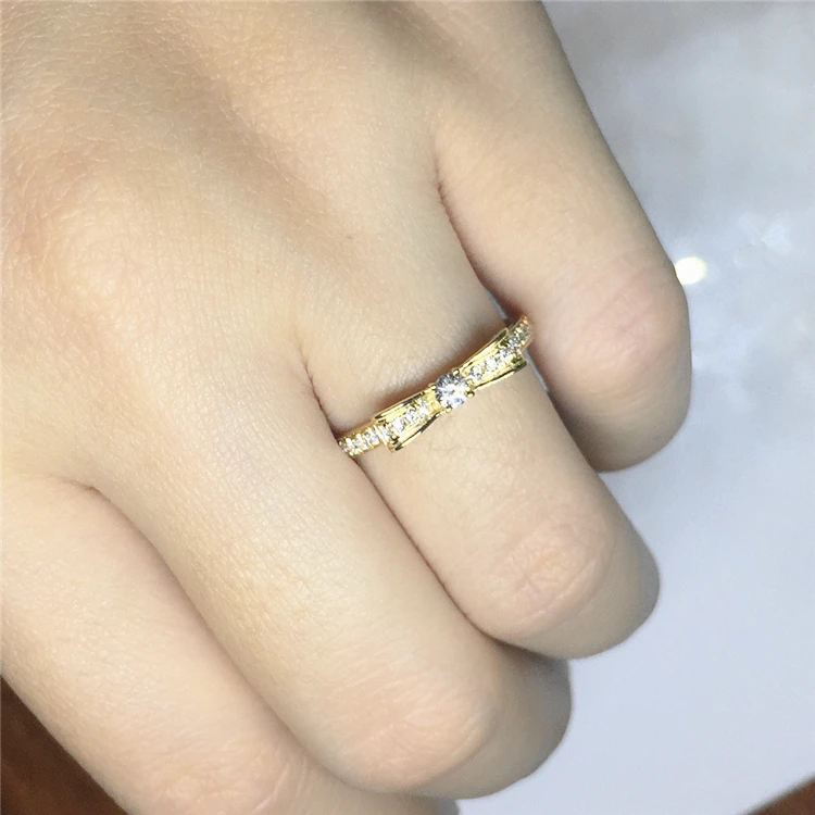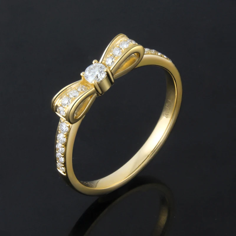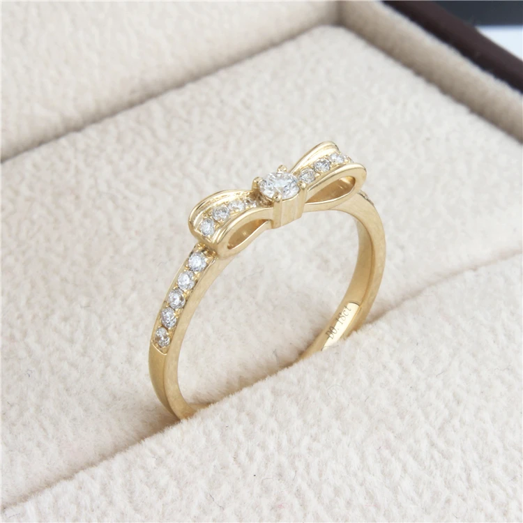 girls jewelry bowknot natural diamond genuine 18ct solid 18k gold jewelry wholesale trendy rings
