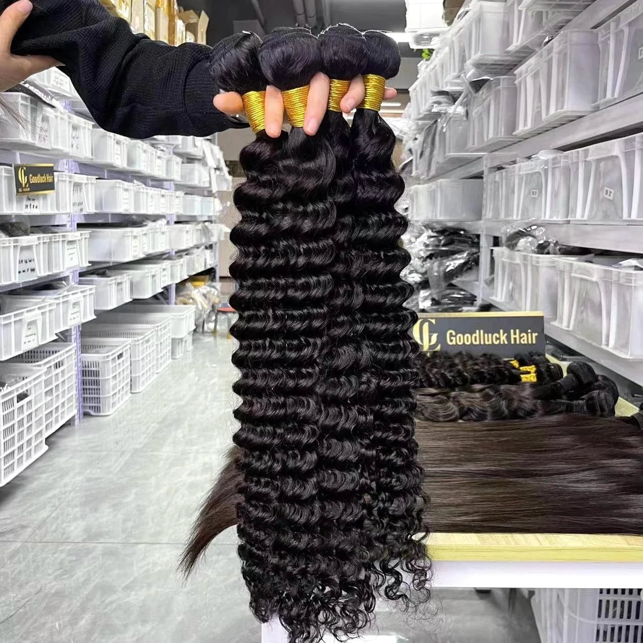 GL 40 Inch Wholesale Cheap Raw Indian Peruvian Human Hair Deep Wave Virgin Hair Bundle From India Vendor 12a Raw Human Hair Bulk