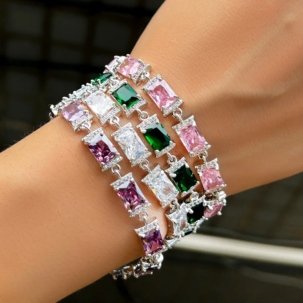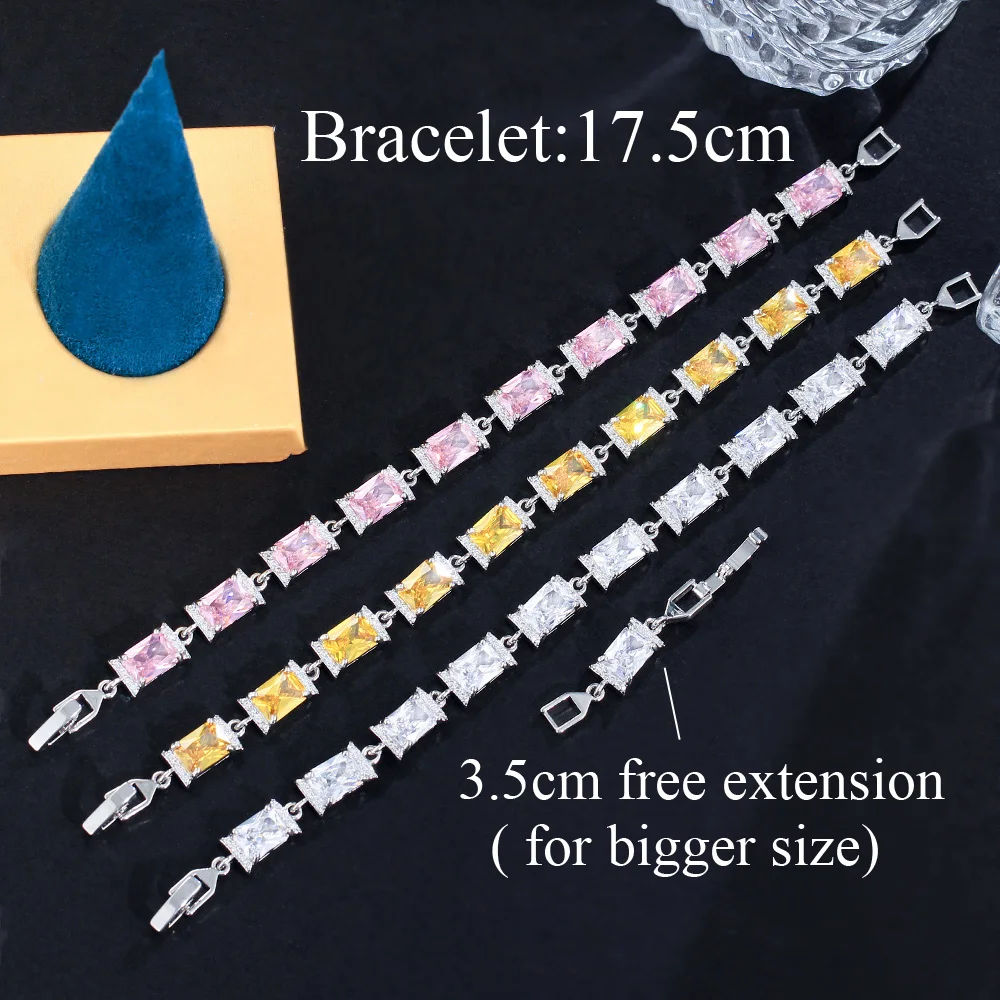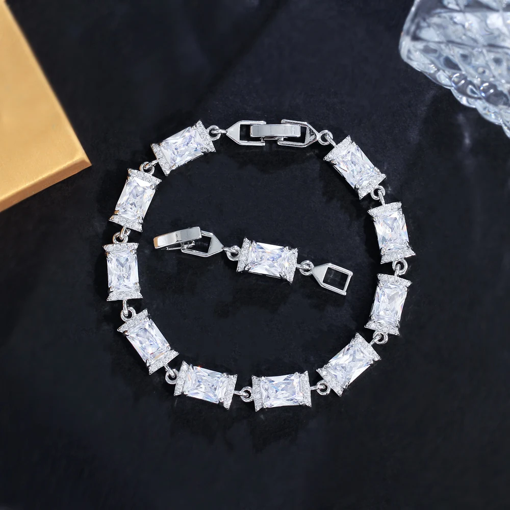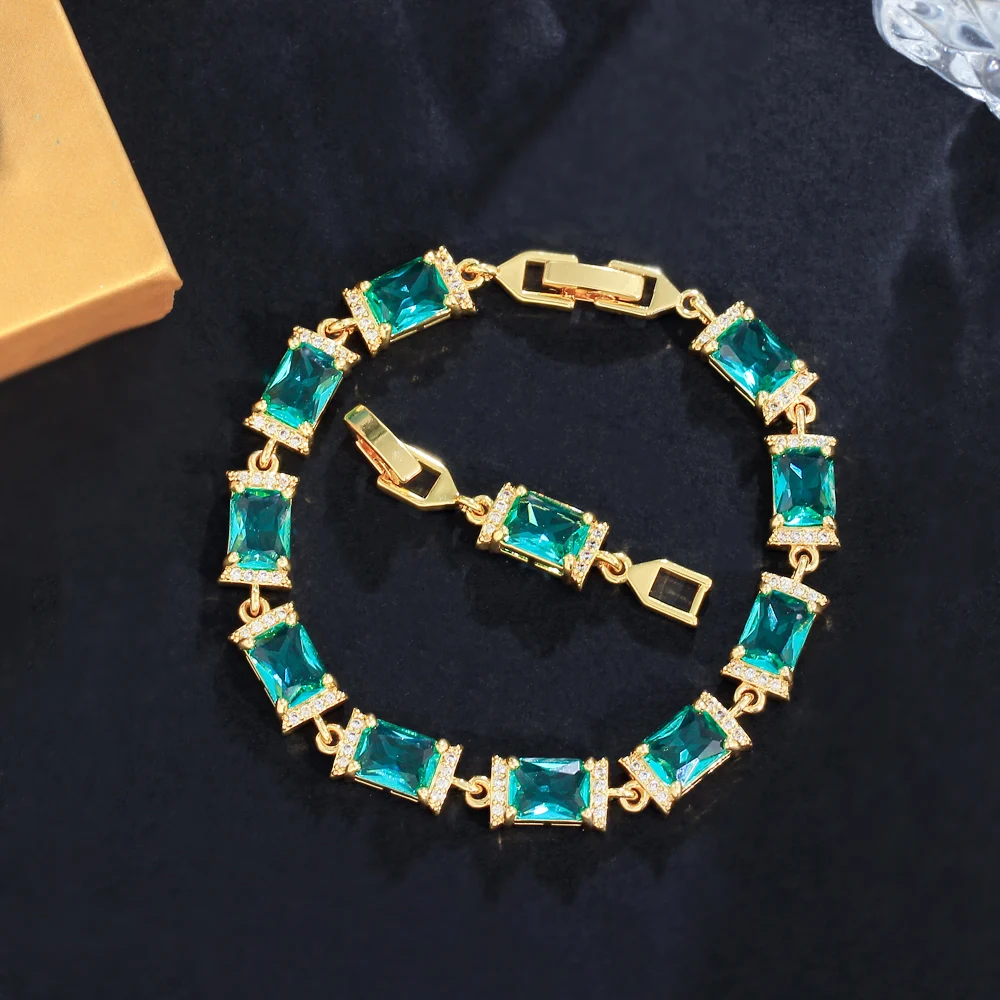 Glamorous Jewelry 18k Gold Plated Women Rectangle Cubic Zirconia Stone Party Female Chain Link Bracelets with Extension