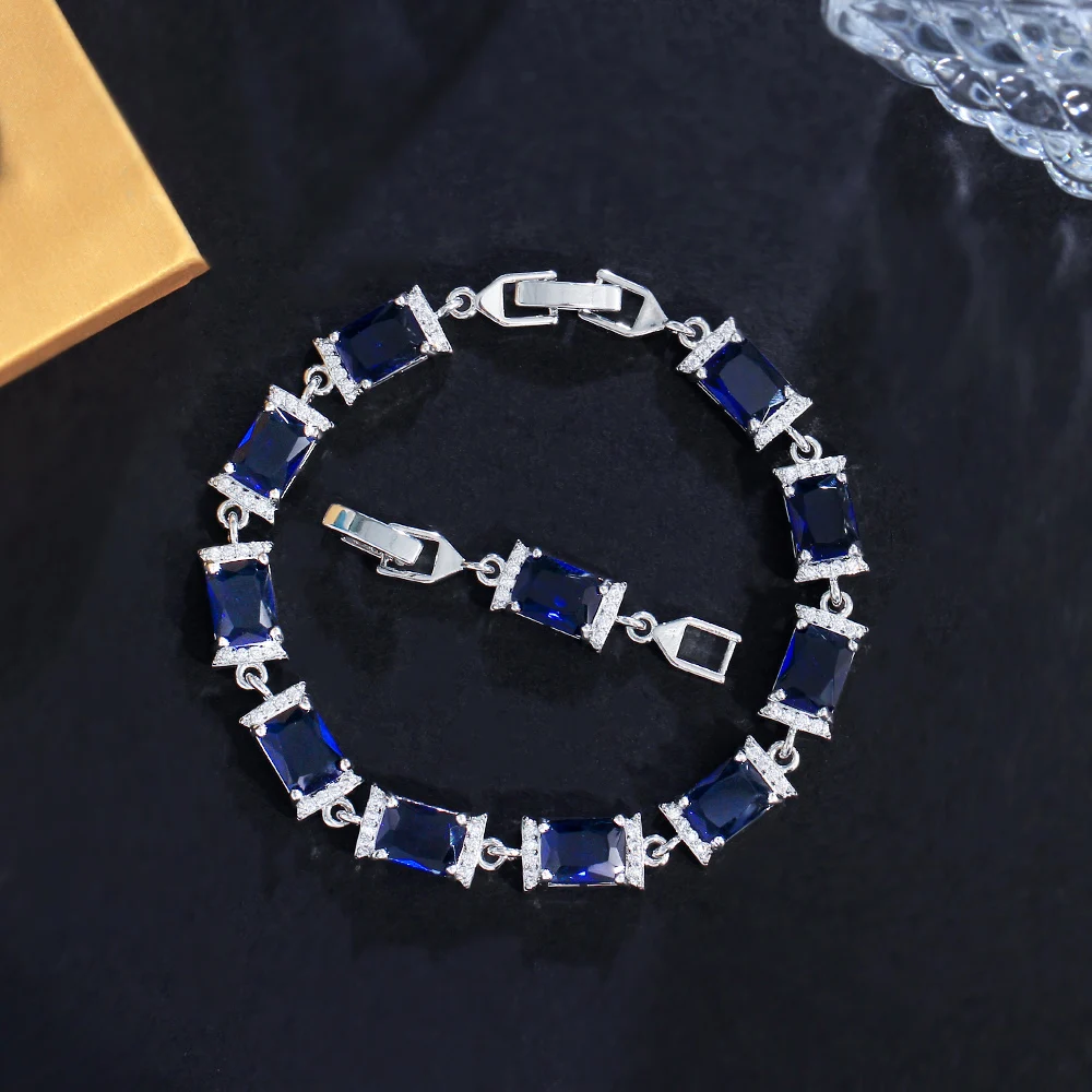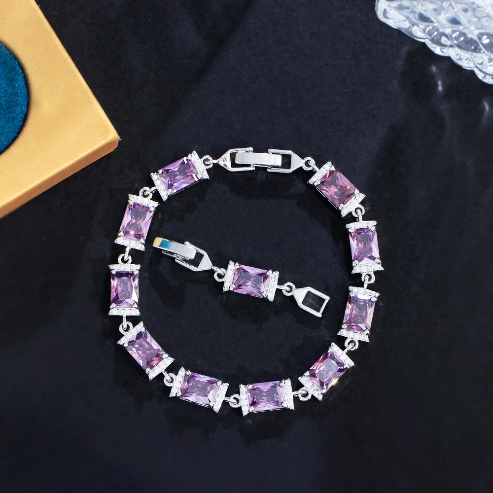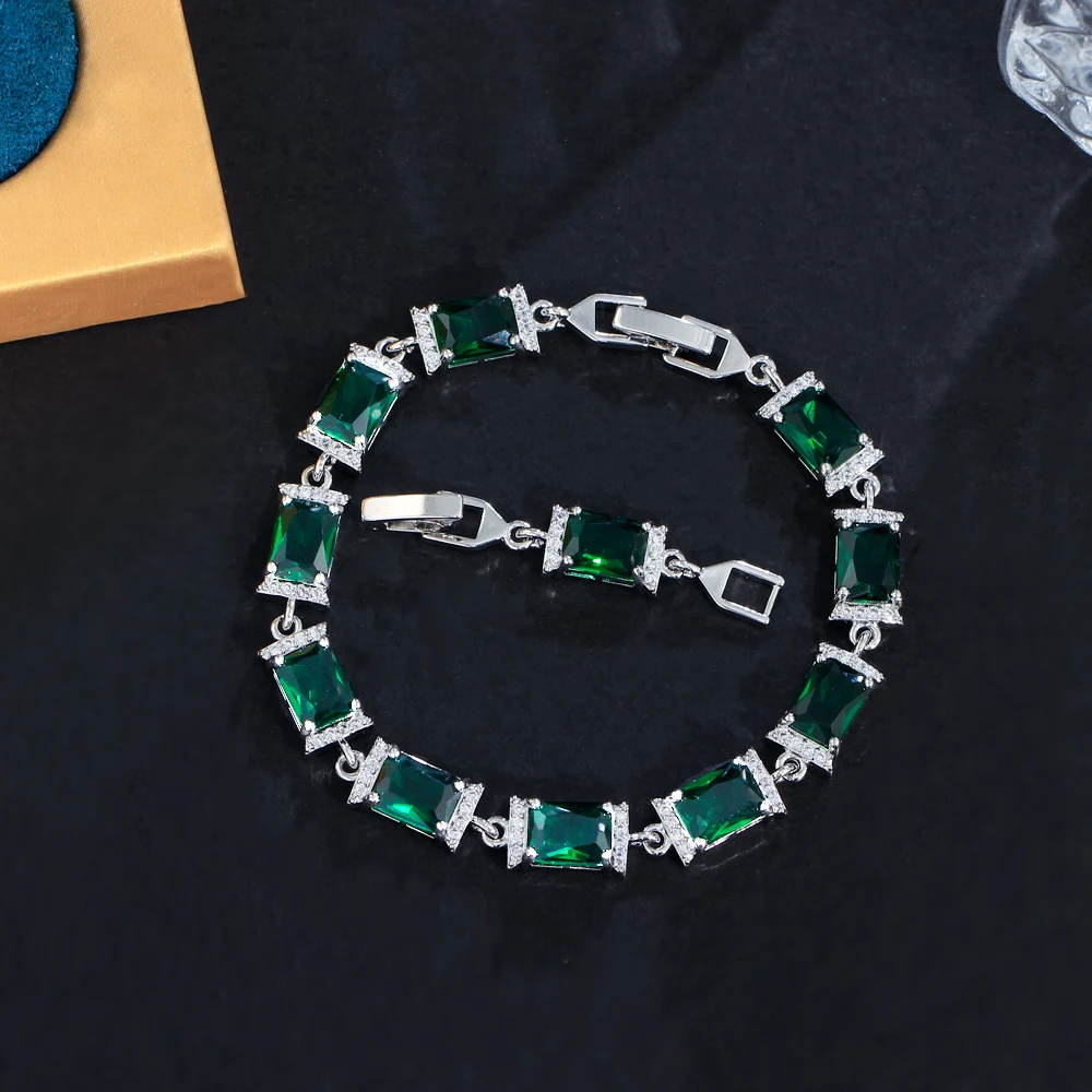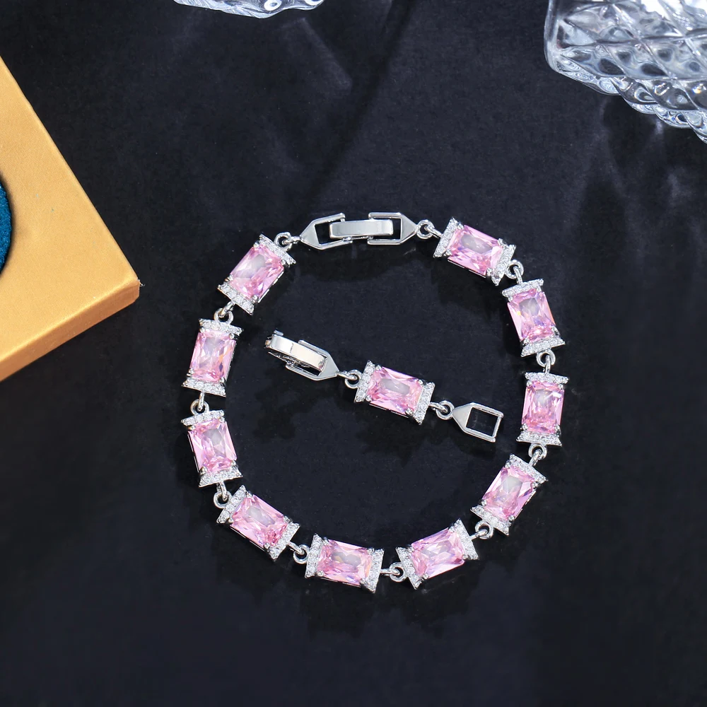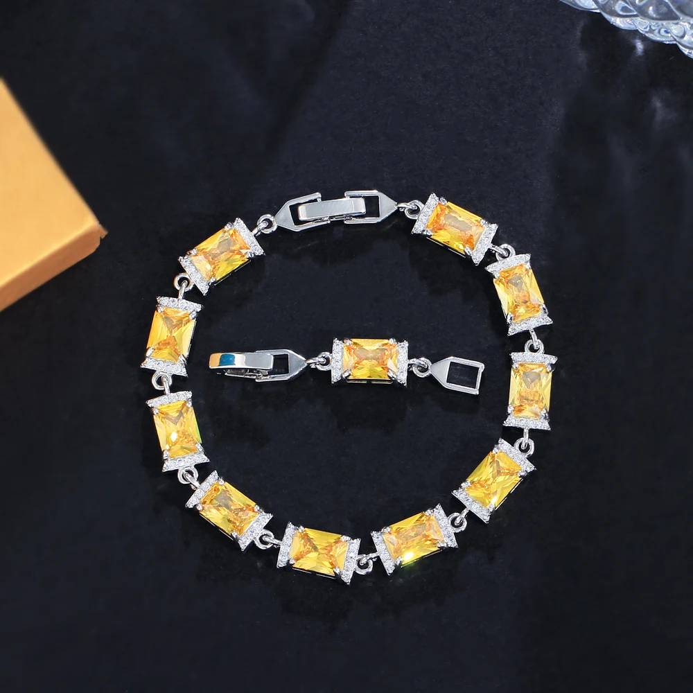 Glamorous Jewelry 18k Gold Plated Women Rectangle Cubic Zirconia Stone Party Female Chain Link Bracelets with Extension