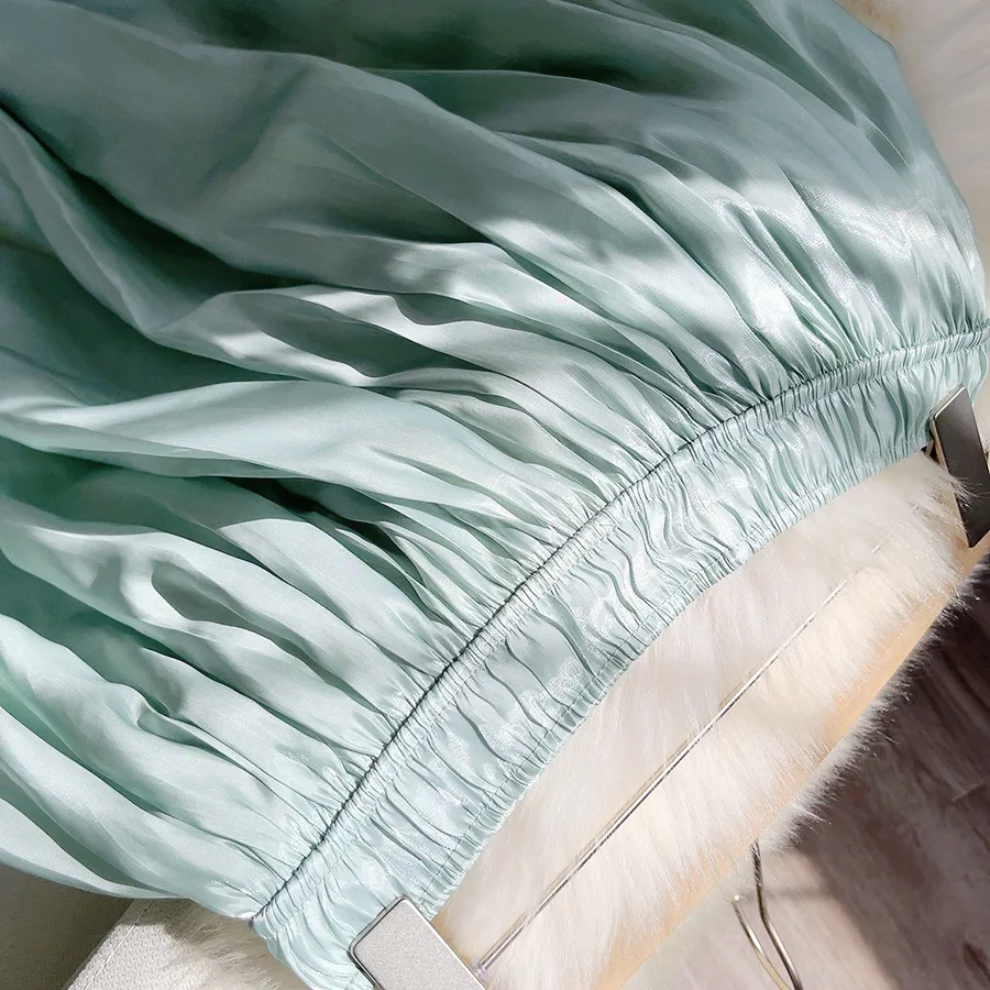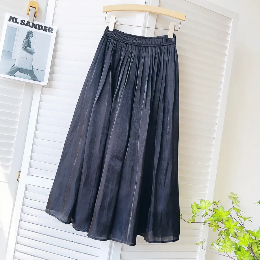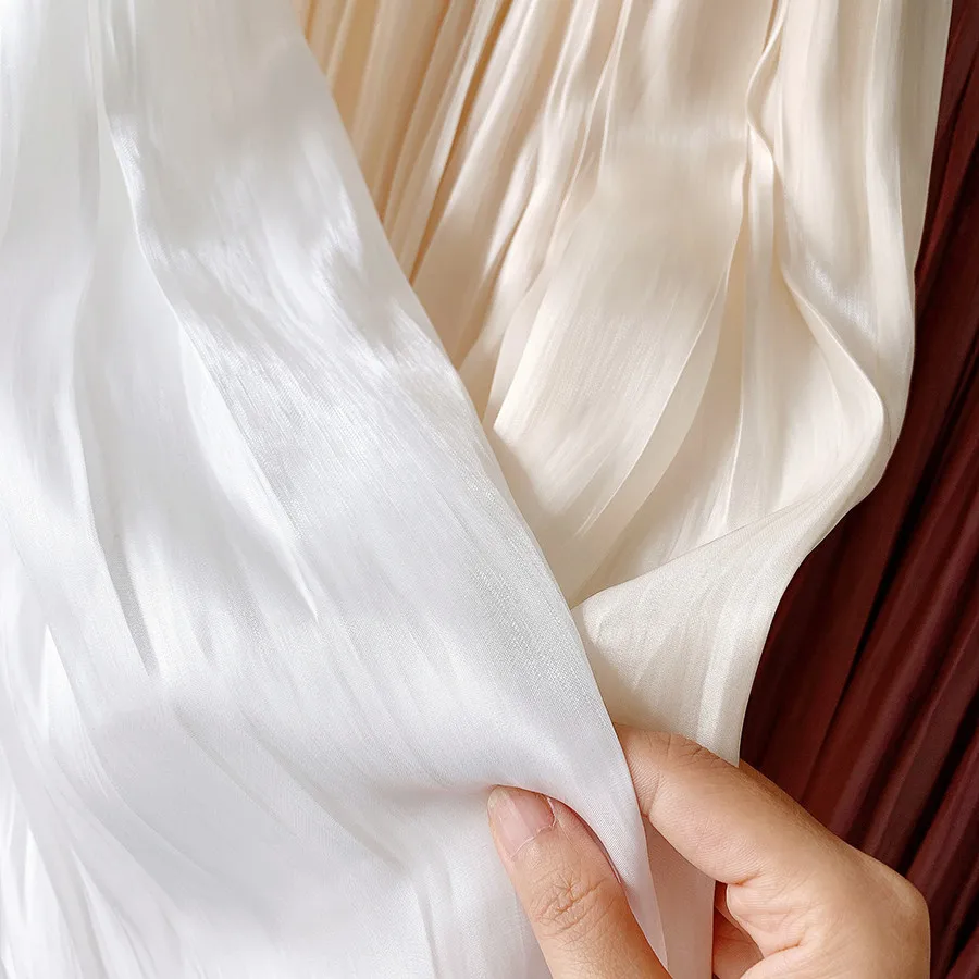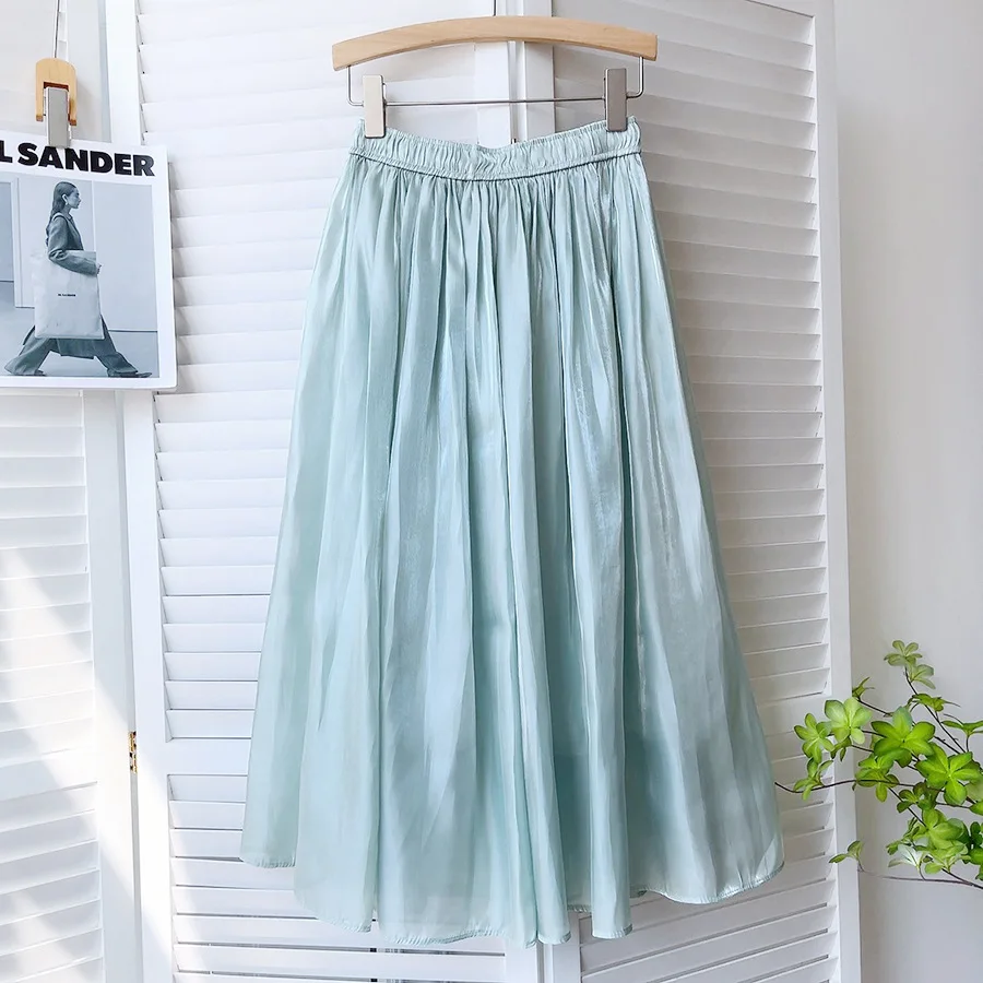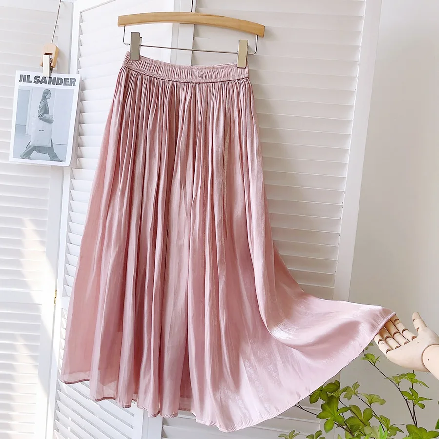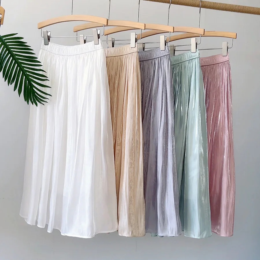 Gloss Pleated Skirt Women Clothes Spring Autumn A-line Midi Long Skirts Ladies Luxury French Romantic White Prom Fashion Skirts
