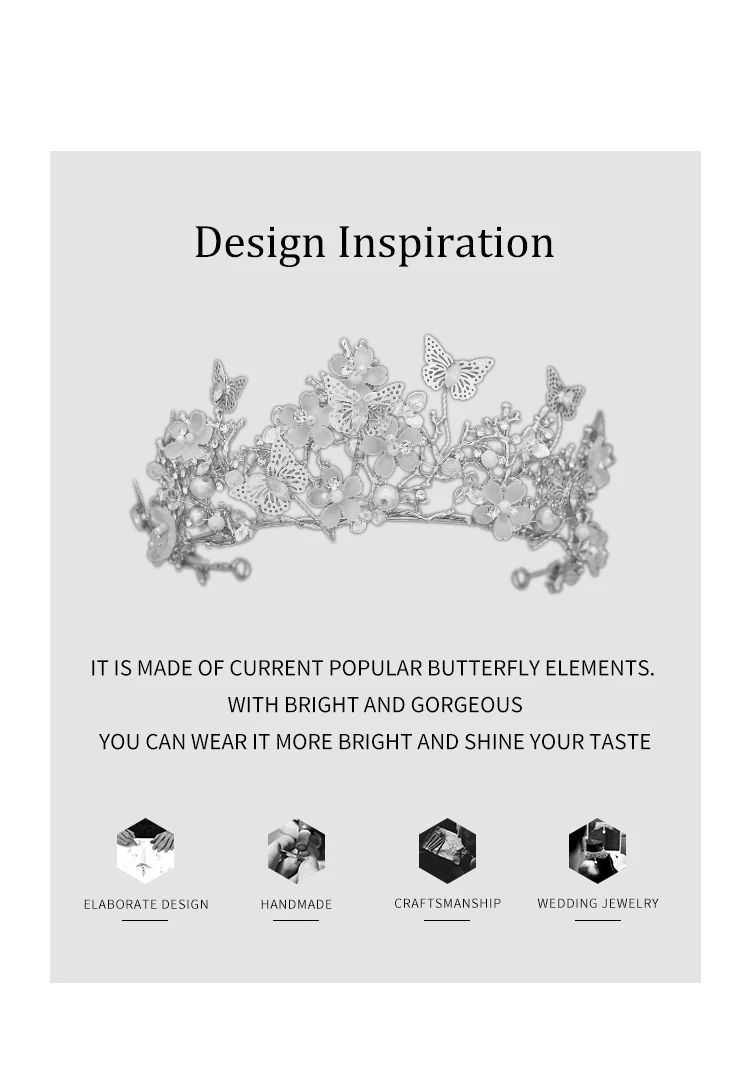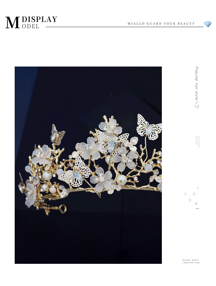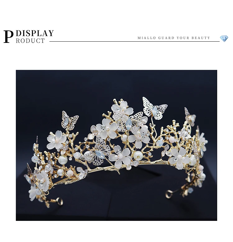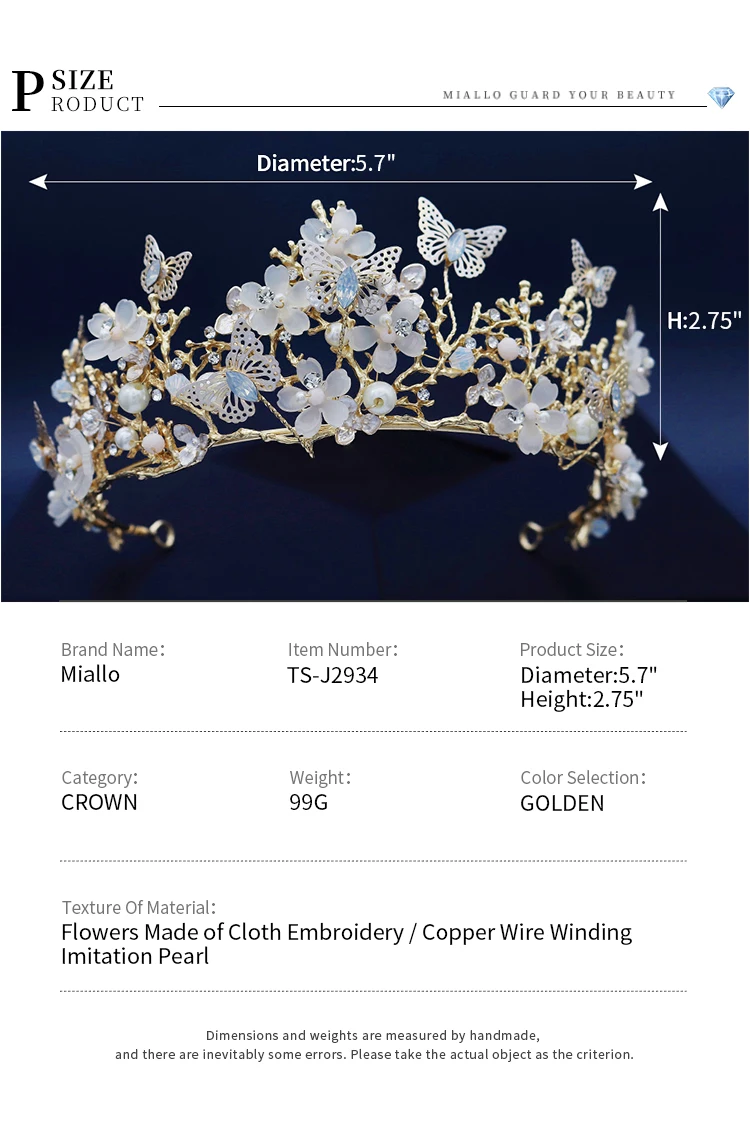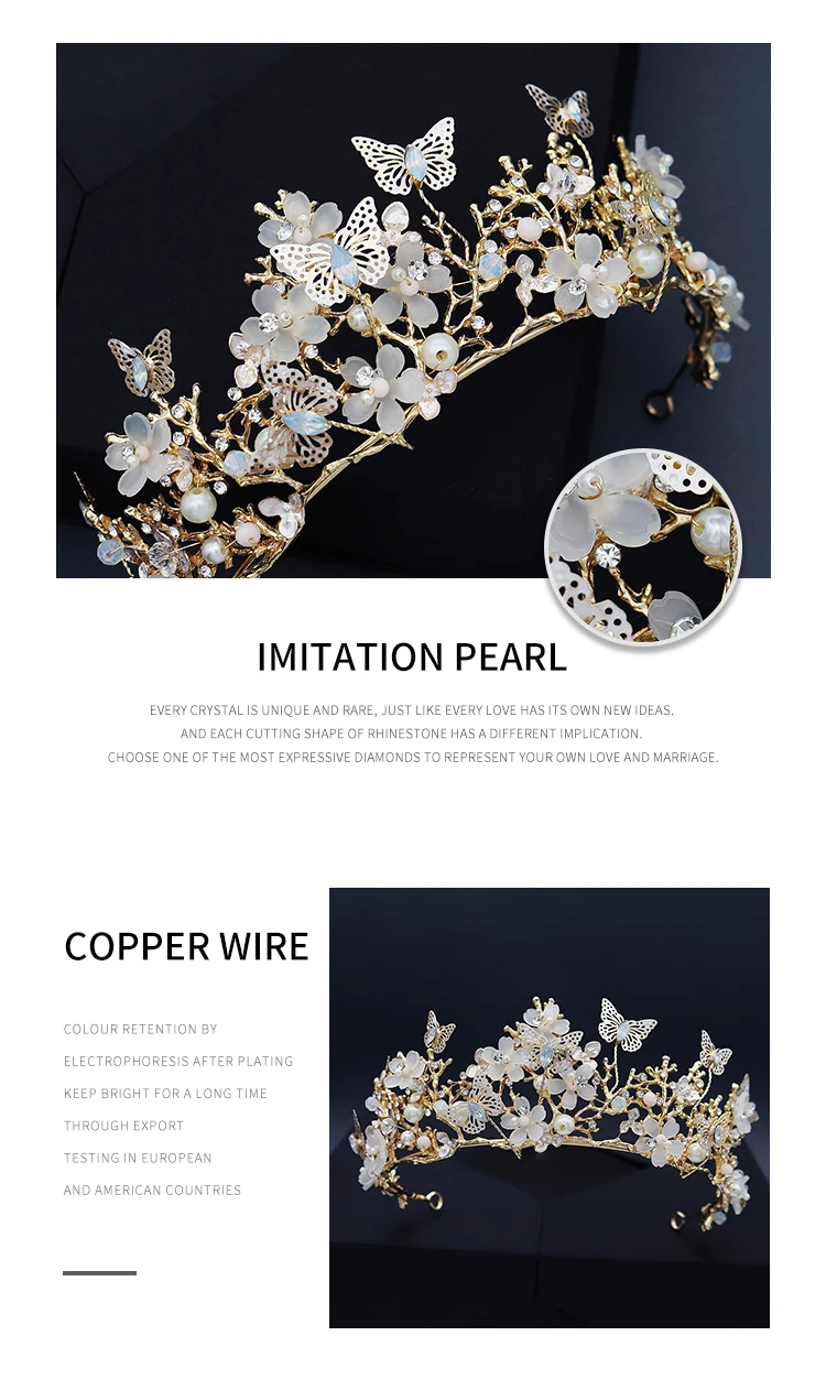 Gold Butterfly Shell Ivory Flower Tiaras and Crowns Cosplay Princess Diadem Classic Handmade Wedding Hair Jewelry Accessories
