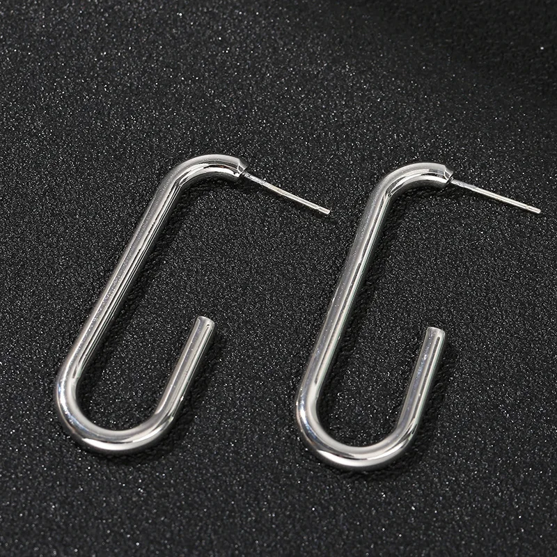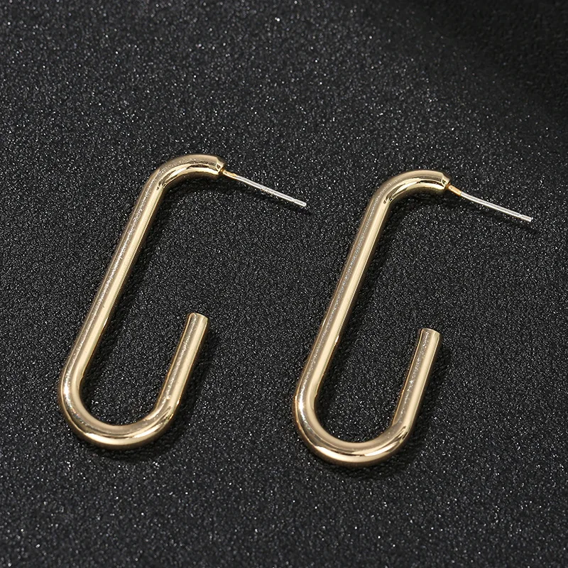 Gold Color Metal Geometric Long C Hoop Earring Female Minimalist Glossy Huggies Ear Stud Statement Earrings