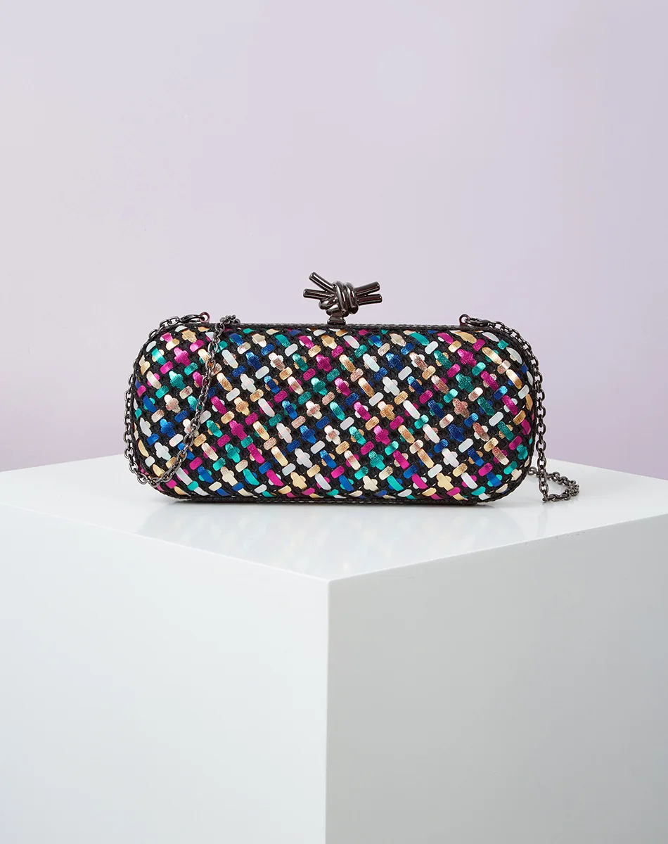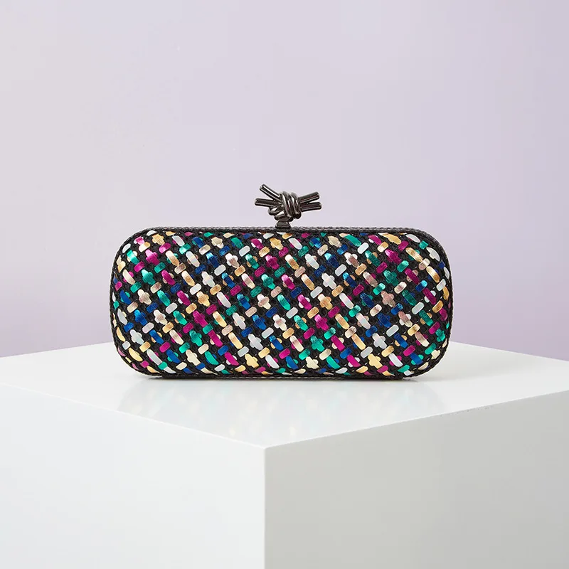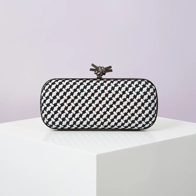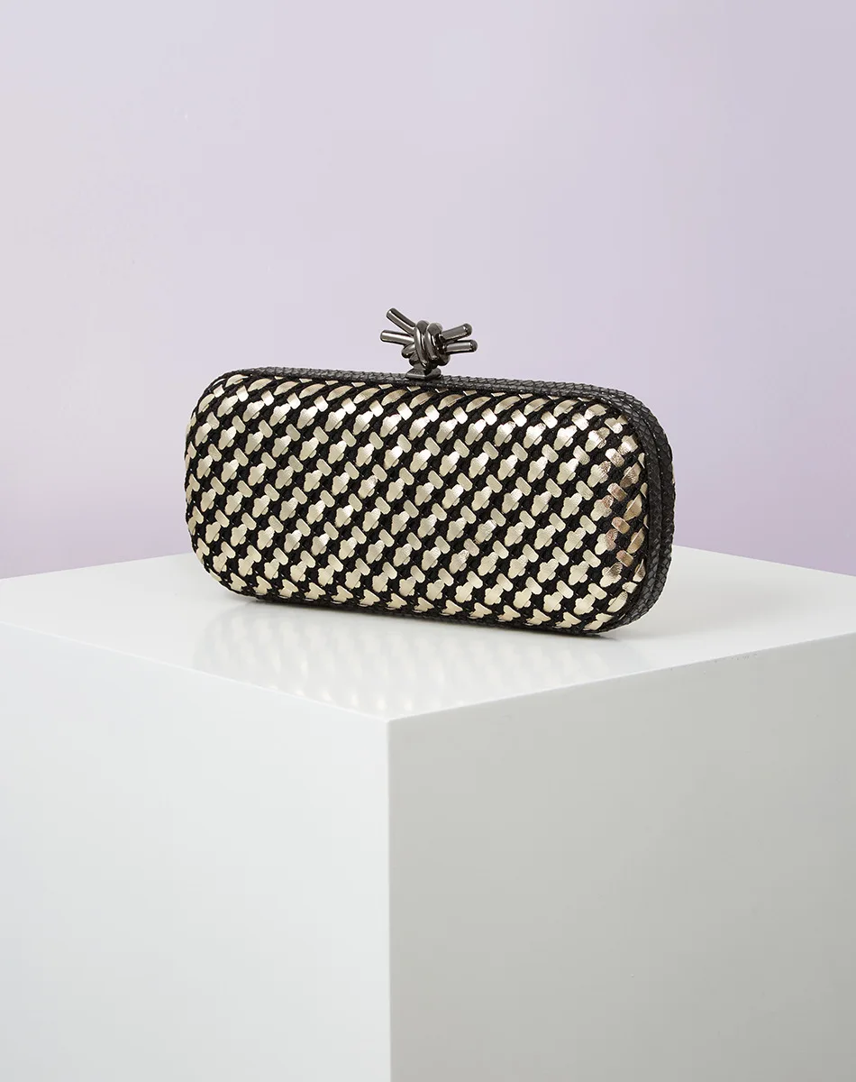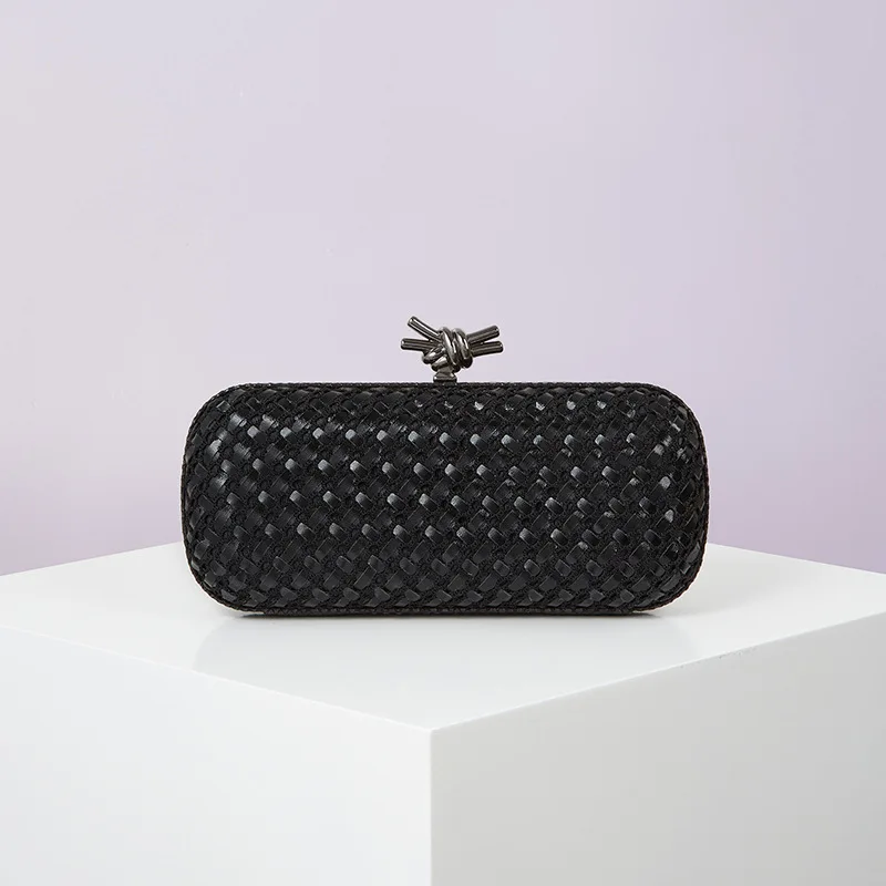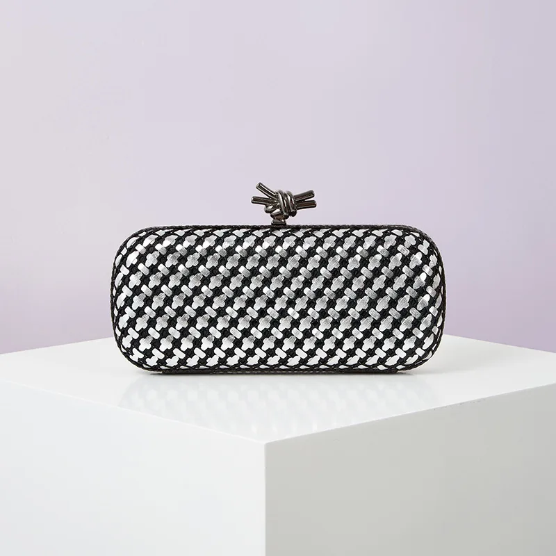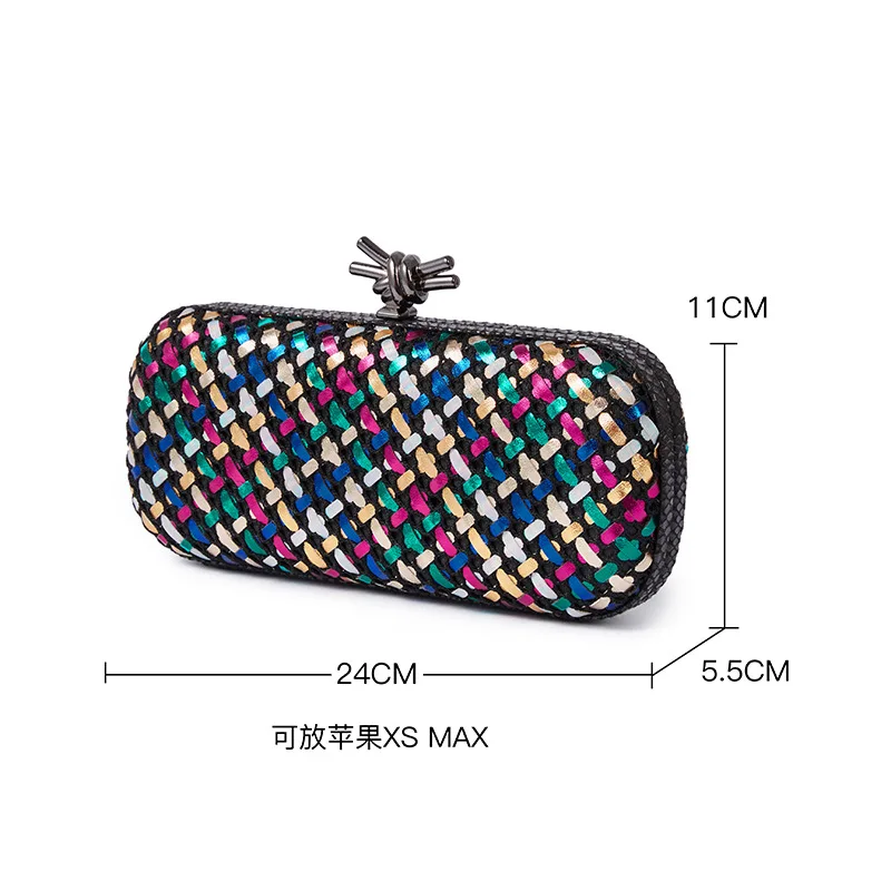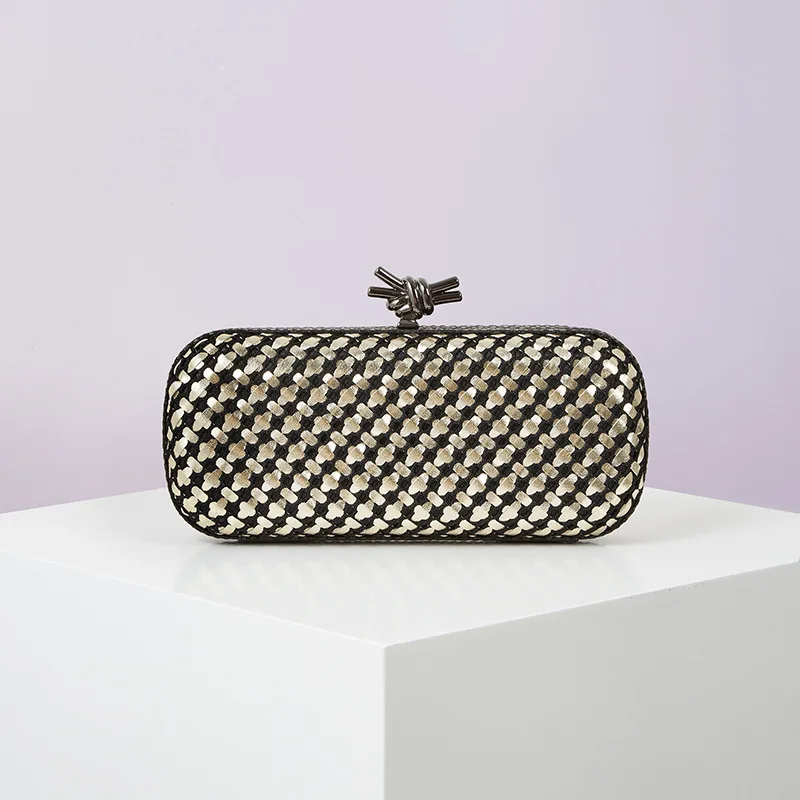 Gold Evening Clutch Bag for Women Leather and Bright Line Woven Purse Elegant Ladies Metal Knot Party Handbag Bolsas Femininas