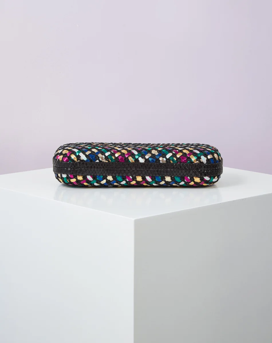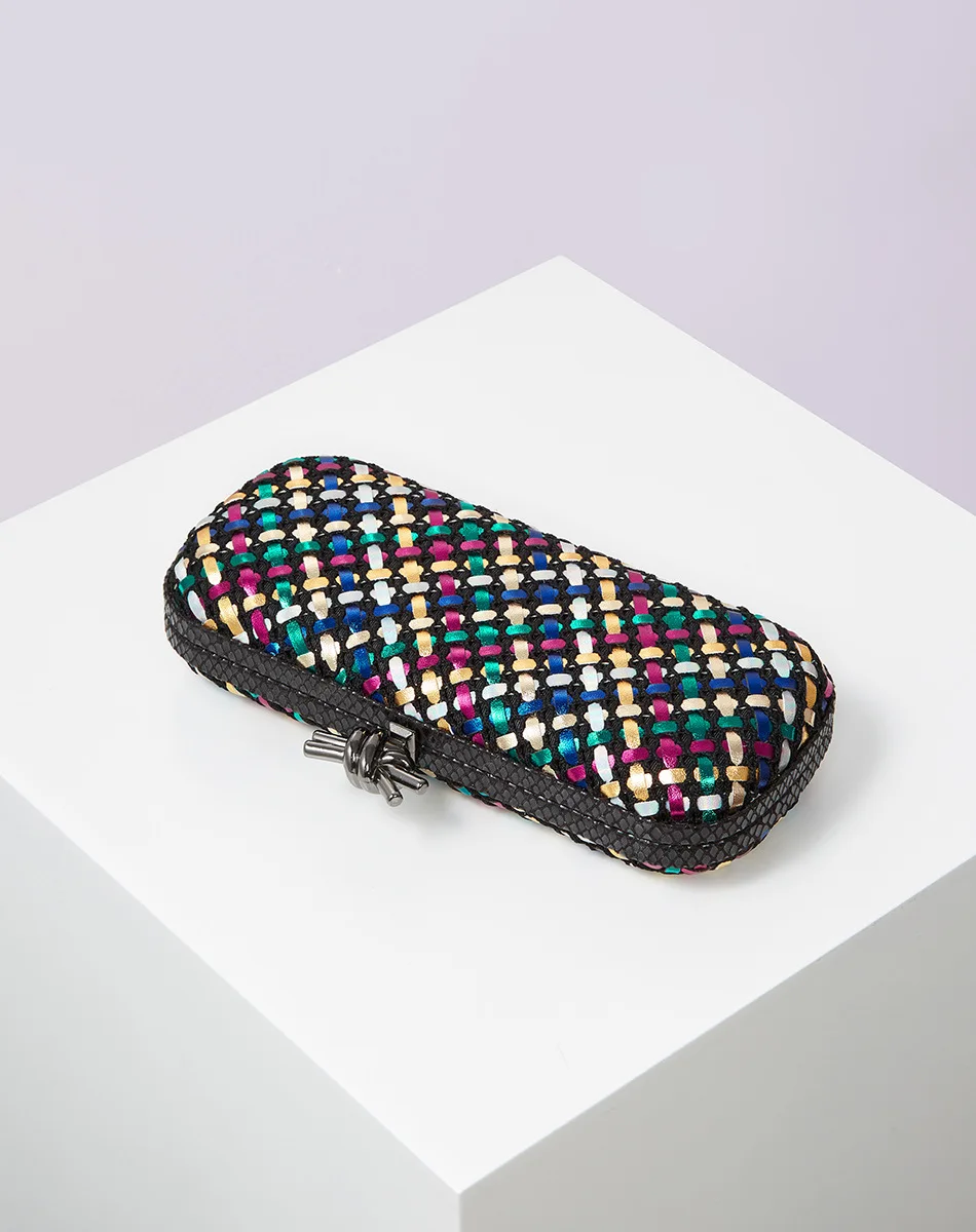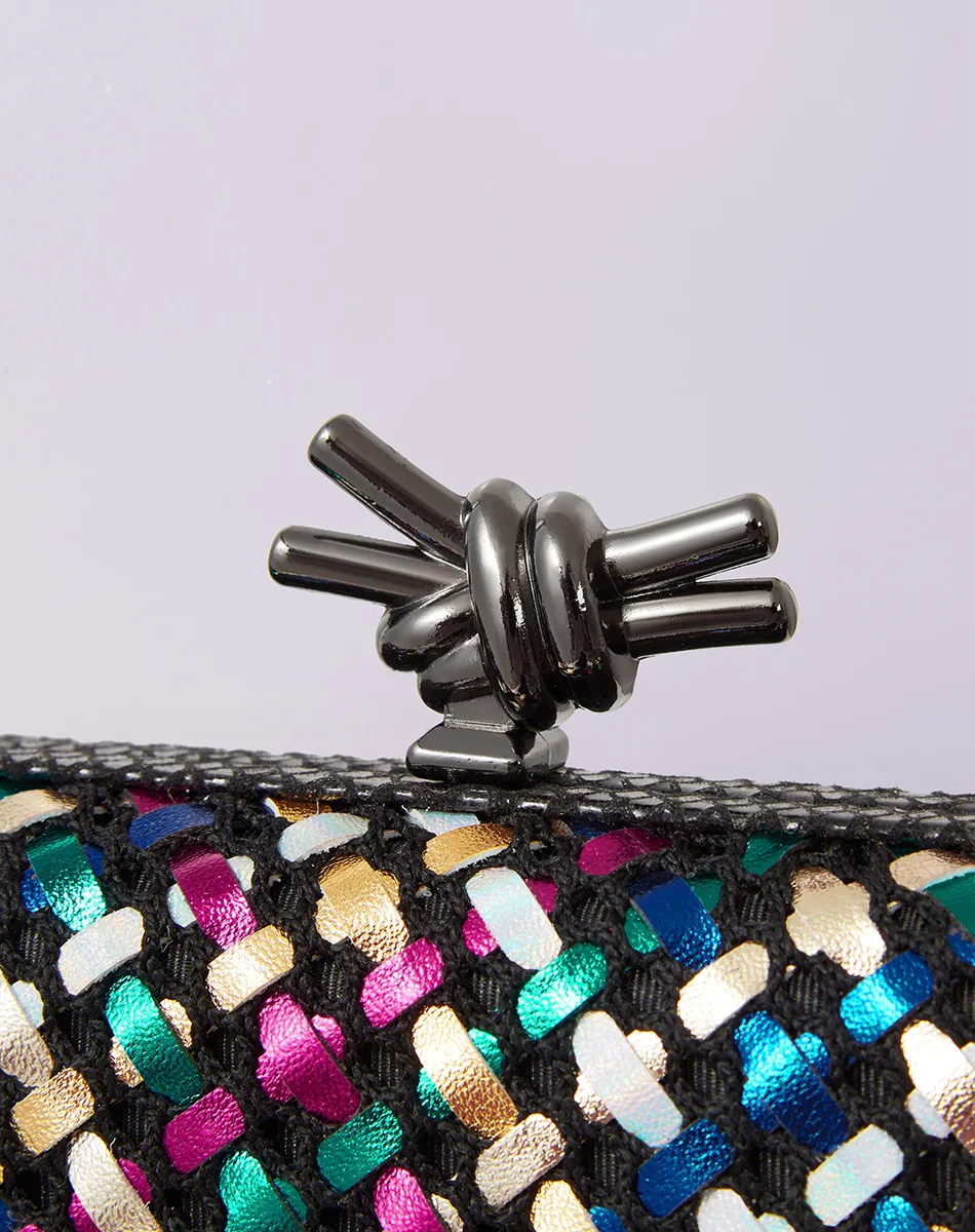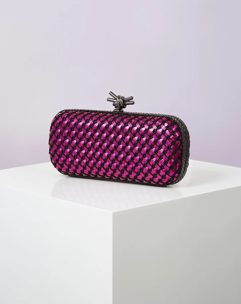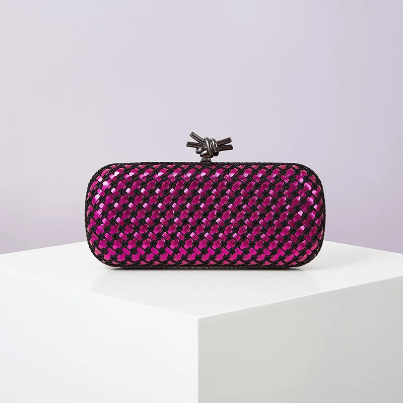 Gold Evening Clutch Bag for Women Leather and Bright Line Woven Purse Elegant Ladies Metal Knot Party Handbag Bolsas Femininas
