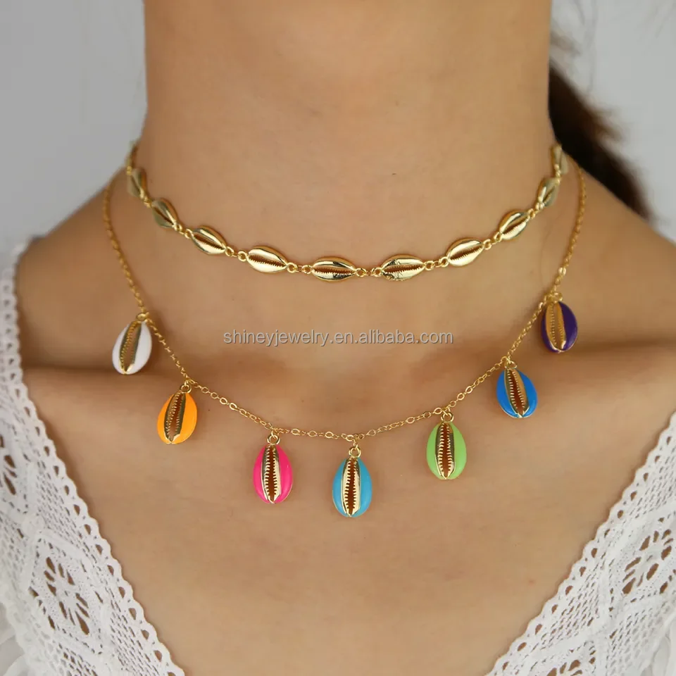 Gold Plated Fashion Women Jewelry 5A CZ Colorful Enamel 2023 Summer Beach Hot Sea Shell Necklace