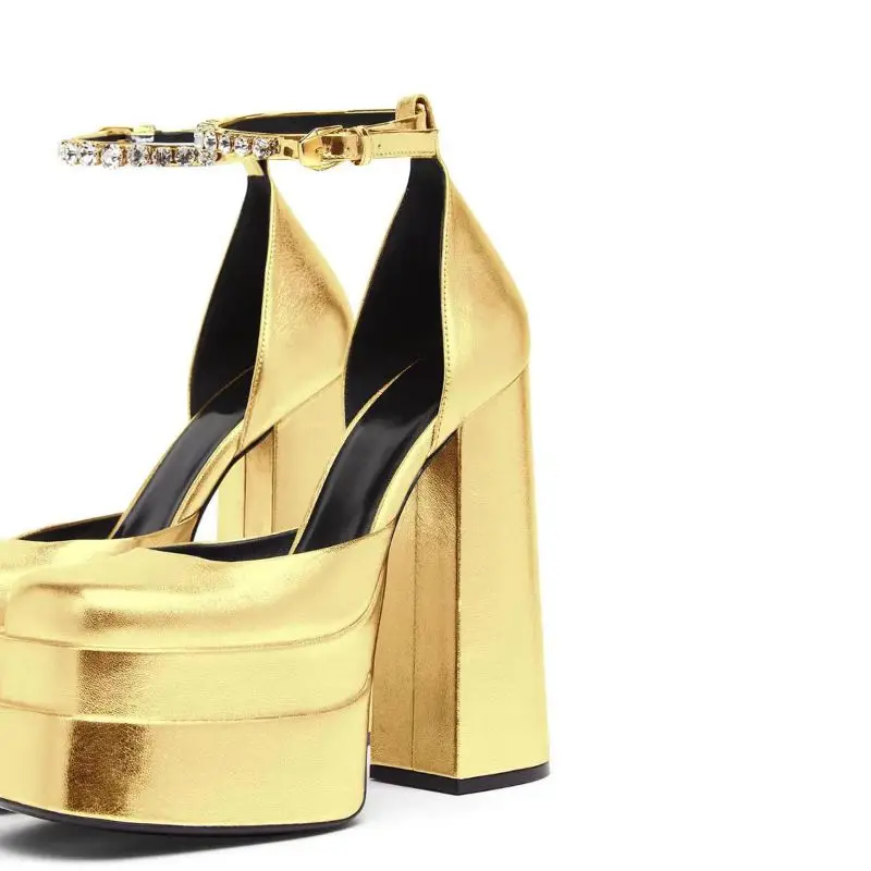 Gold/Siilver Rhinestone Party Night Club Fashion Chunky Escarpins HIgh Winter Shoes Platform Heels